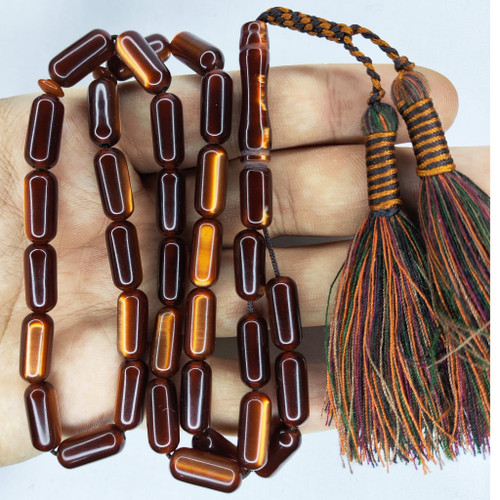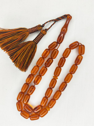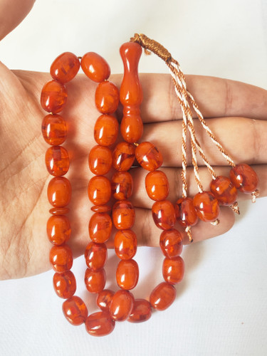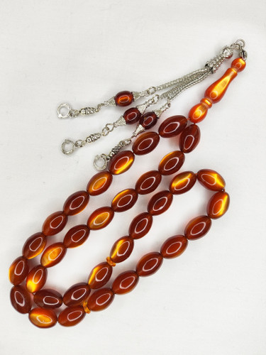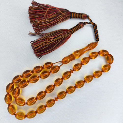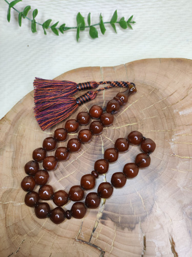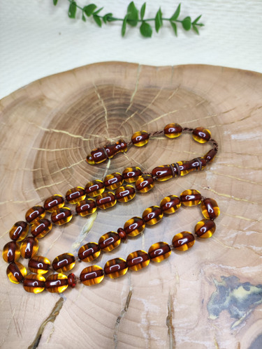 تسبیح کهربا 33عددی تراش کپسولی خوشدست و زیبا همراه سرتسبیح شکیل