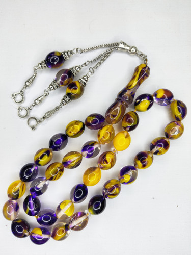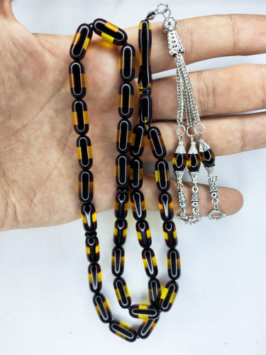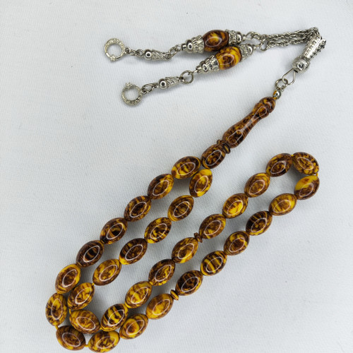 تسبیح کهربا رگه دار 33عددی یاغبال رنگ تراش قیچی بر