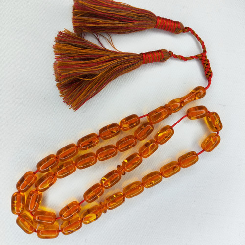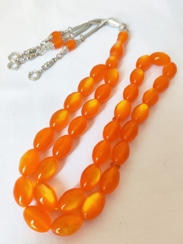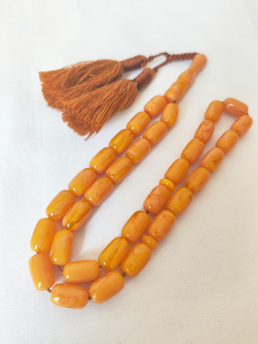 تسبیح کهربا 33عددی تراش هلی رنگ نارنجی