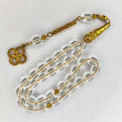 تسبیح شیشهای 33عددی رنگ شیشهای شفاف تراش هلی خوشدست