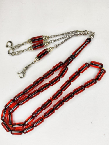 تسبیح کهربا رگه دار 33عددی قرمز خوشرنگ