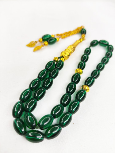 تسبیح کهربا رگه دار 33عددی سبز رنگ زیبا