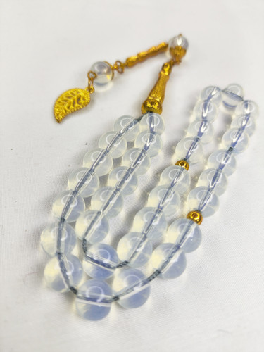 تسبیح شیشه ای 33 عددی قیمت مناسب رنگ سفید شیشه ای