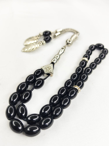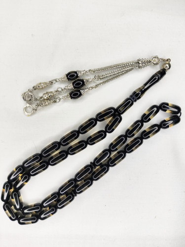 تسبیح کهربا 33عددی رنگ سیاه و سفید فاخر همراه سر تسبیح استیل شکیل