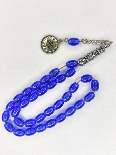 تسبیح کهربا 33عددی رنگ آبی پاتین دار تراش کپسولی خوشدست