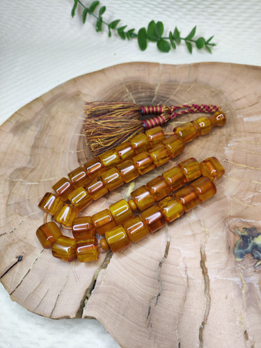 تسبیح کهربا 33عددی رنگ یاغبال تراش کپسولی خوشدست