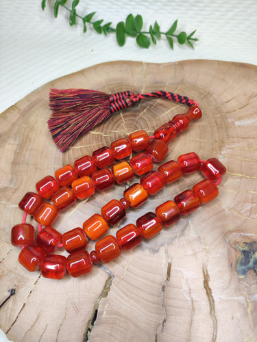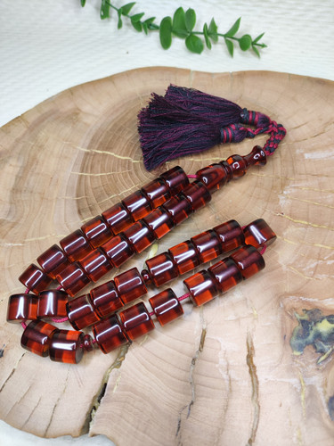 تسبیح کهربا 33عددی تراش کسمه قرمز رنگ خوشدست
