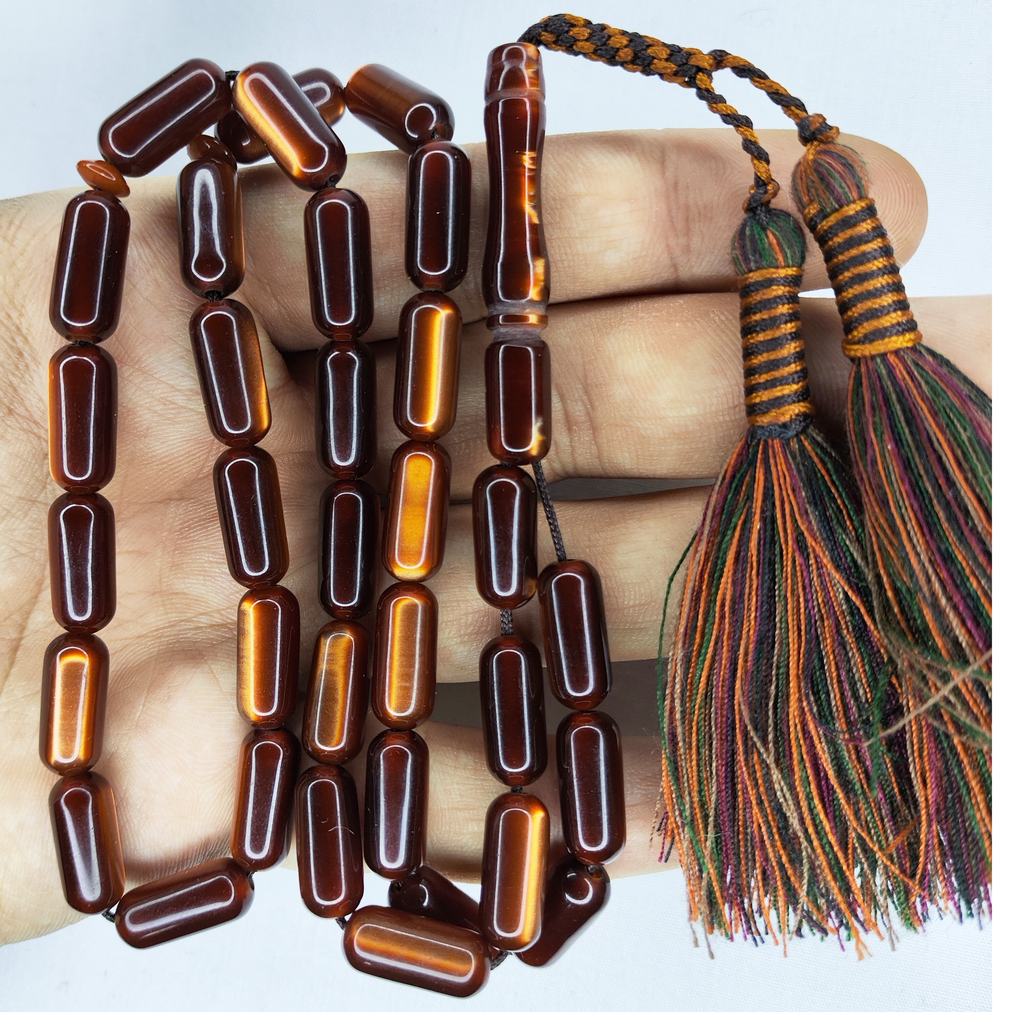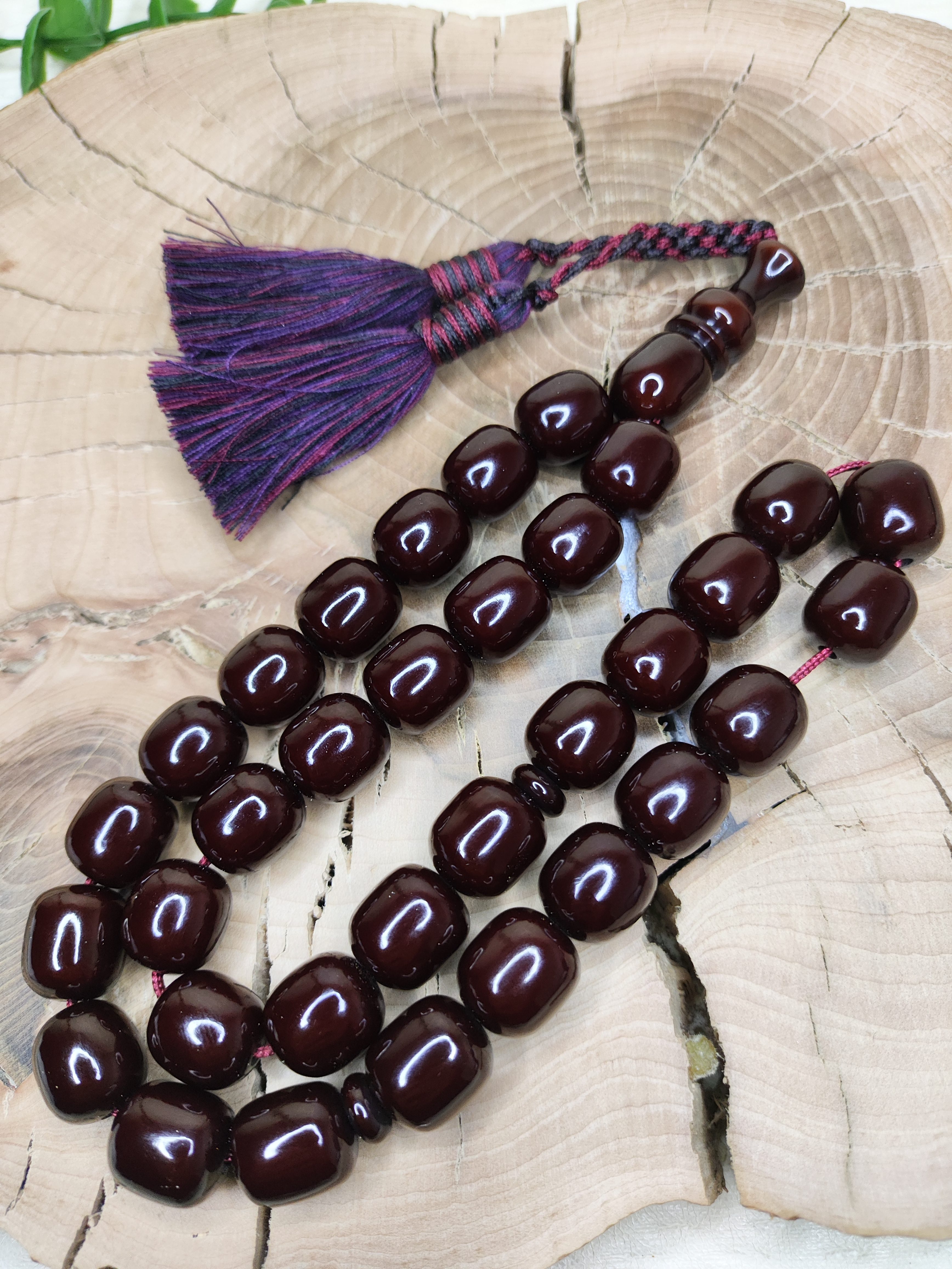 تسبیح کهربا 33عددی رنگ کله غازی کمیاب تراش کپسولی خوشدست