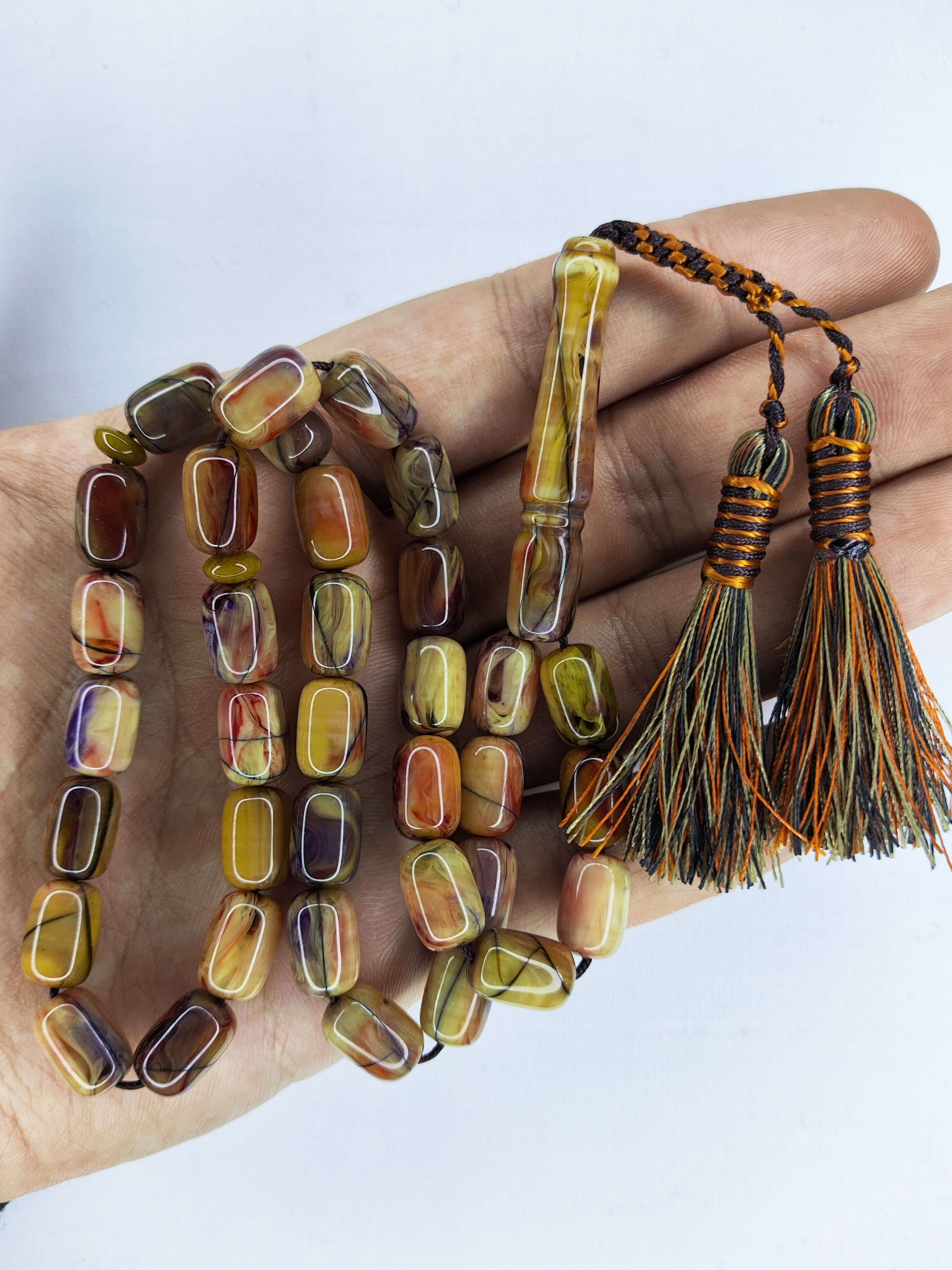 تسبیح کهربا مولتی کالر 33عددی قواره دار خوشدست و کلکسیونی