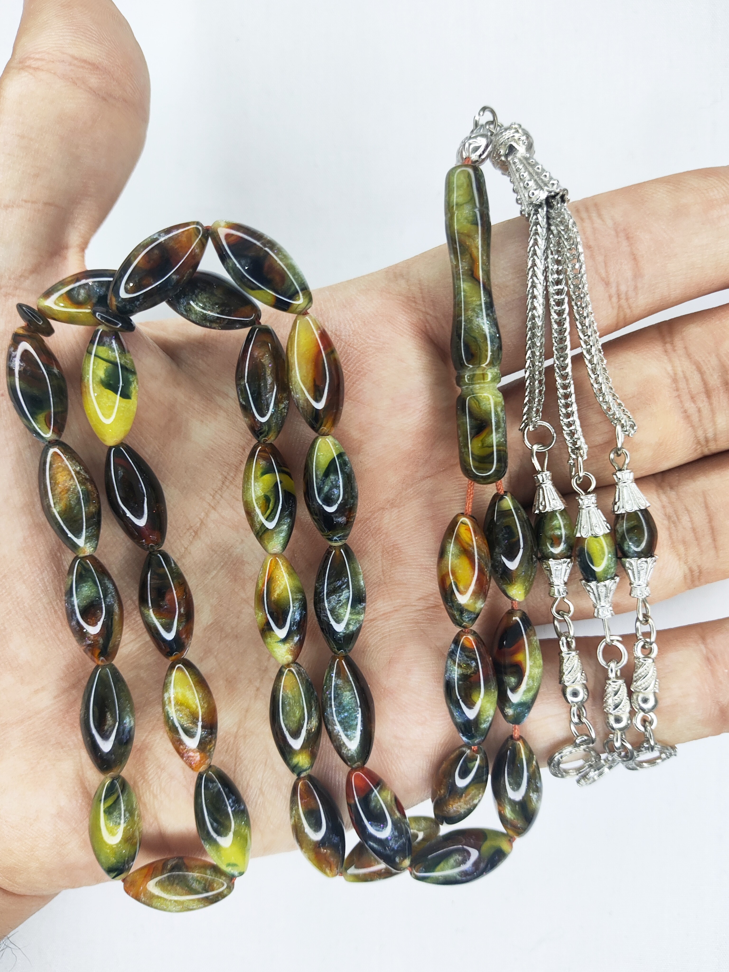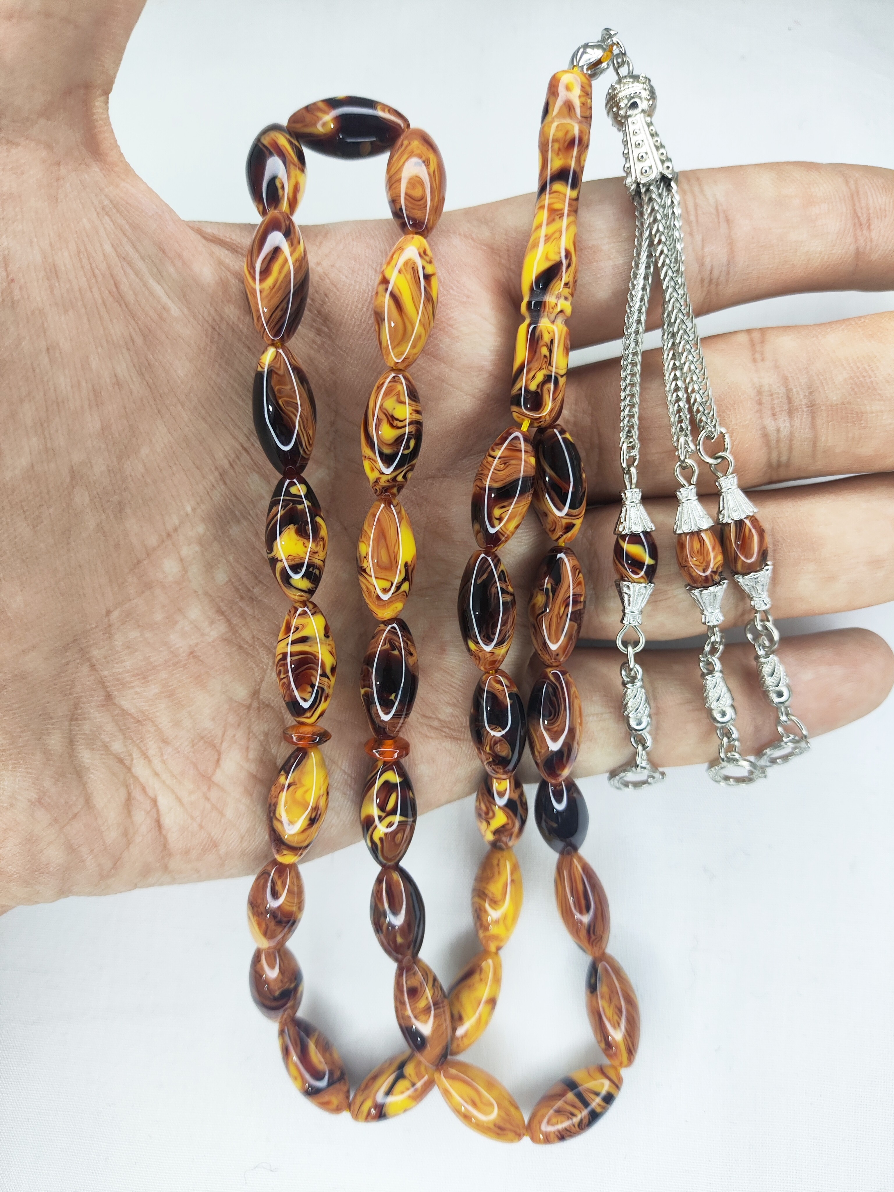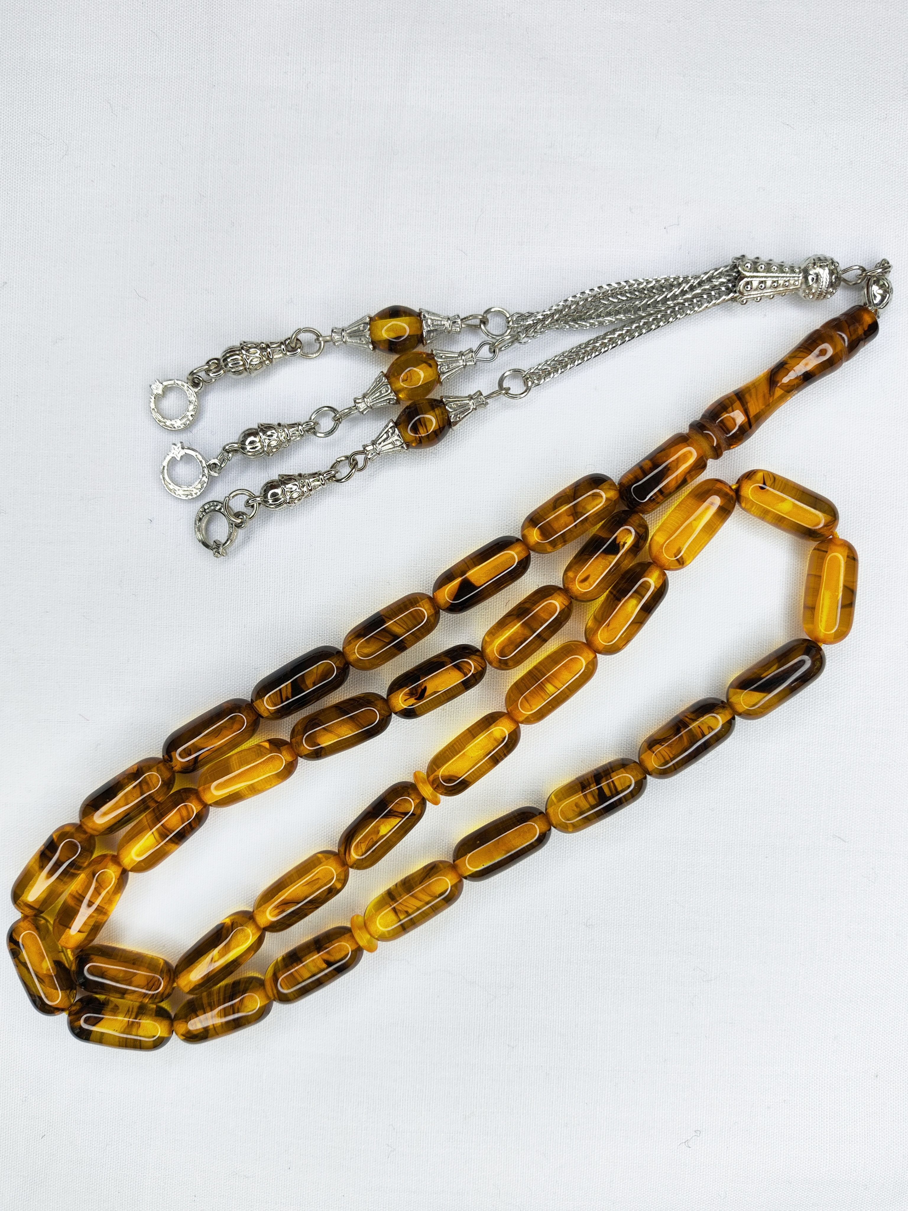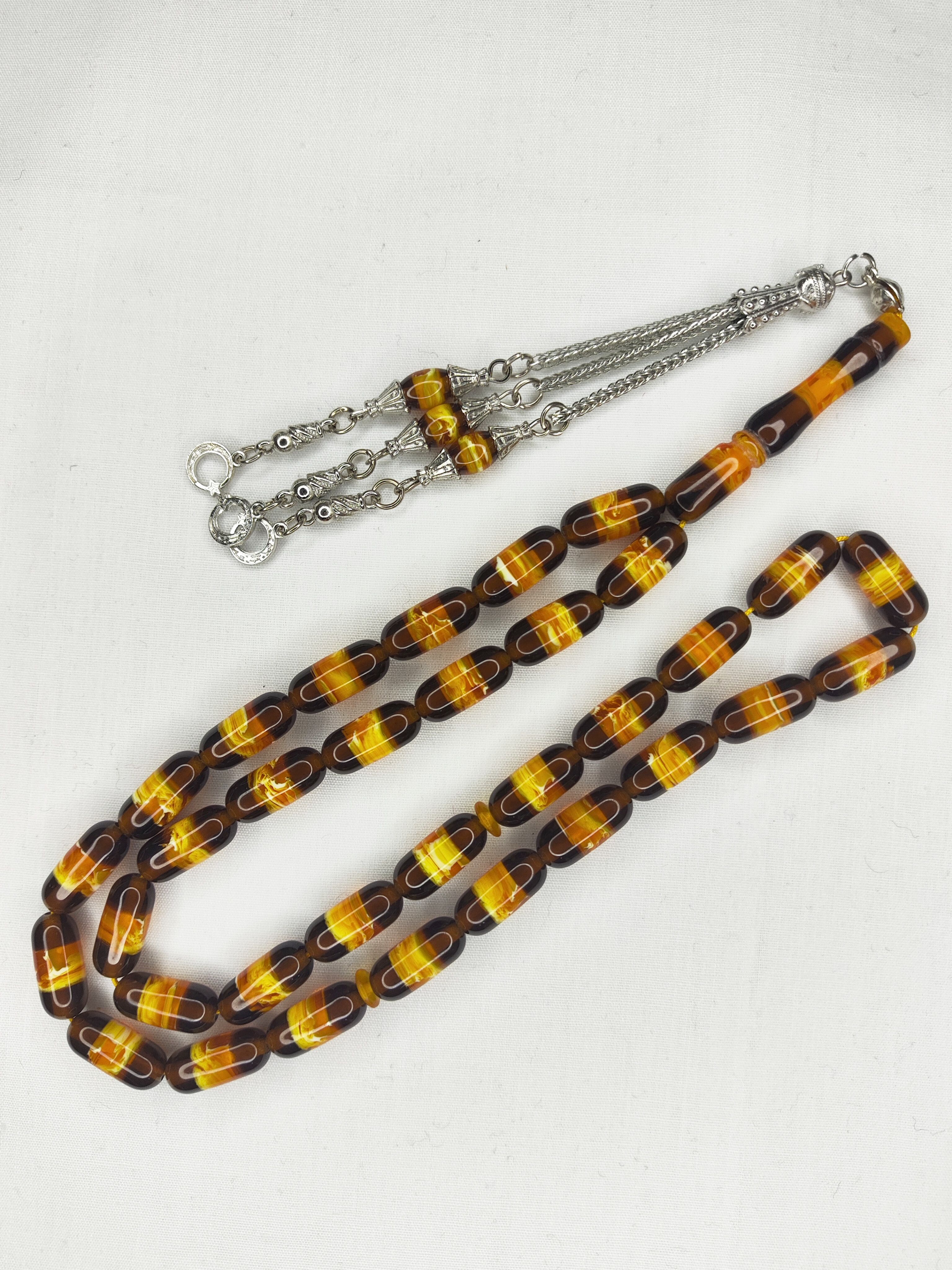 تسبیح کهربا رگه دار 33عددی یاغبال رنگ تراش قیچی بر