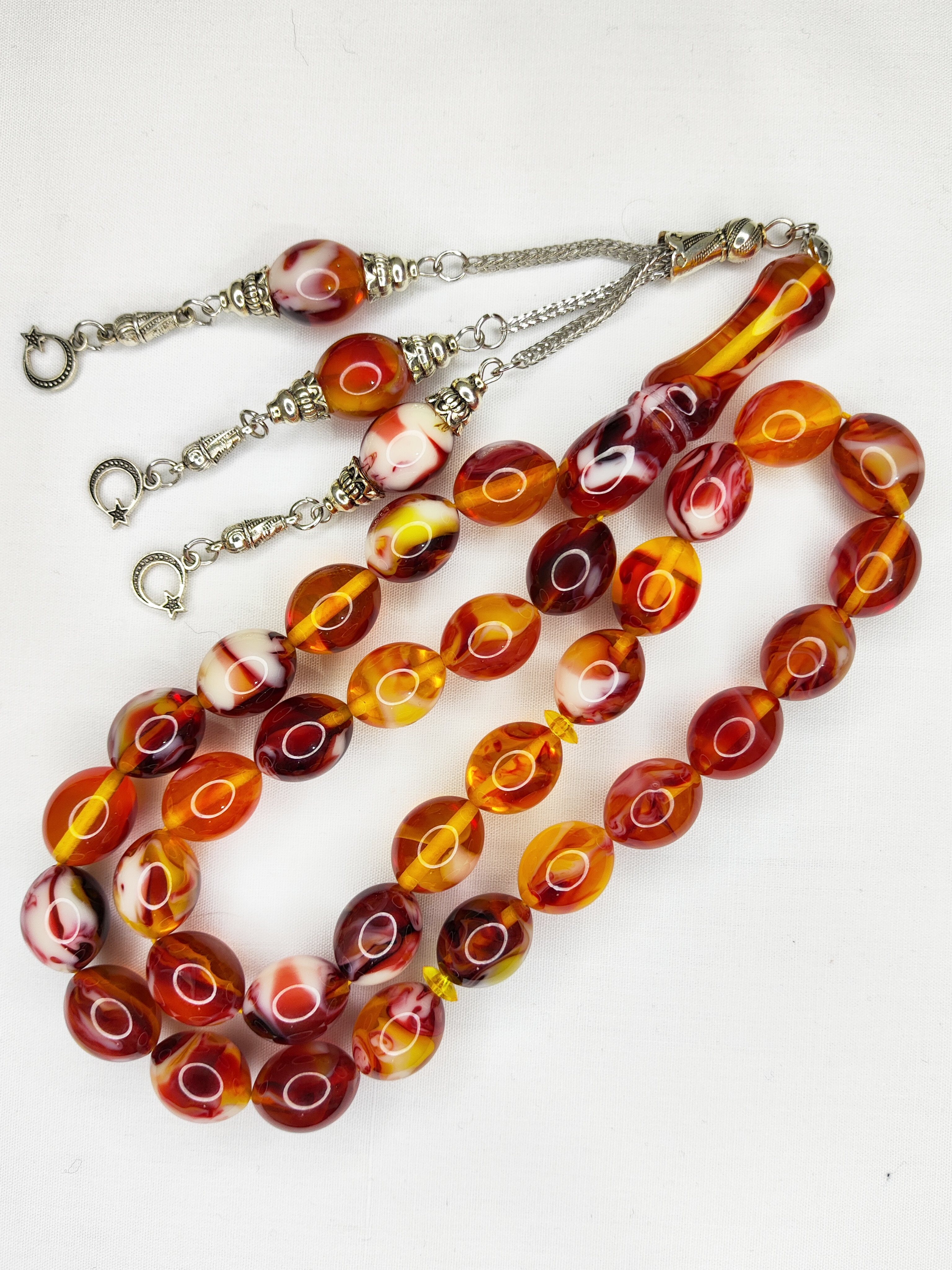 تسبیح کهربا رگه دار رنگ آورده 33 عددی تراش حبه خوشدست