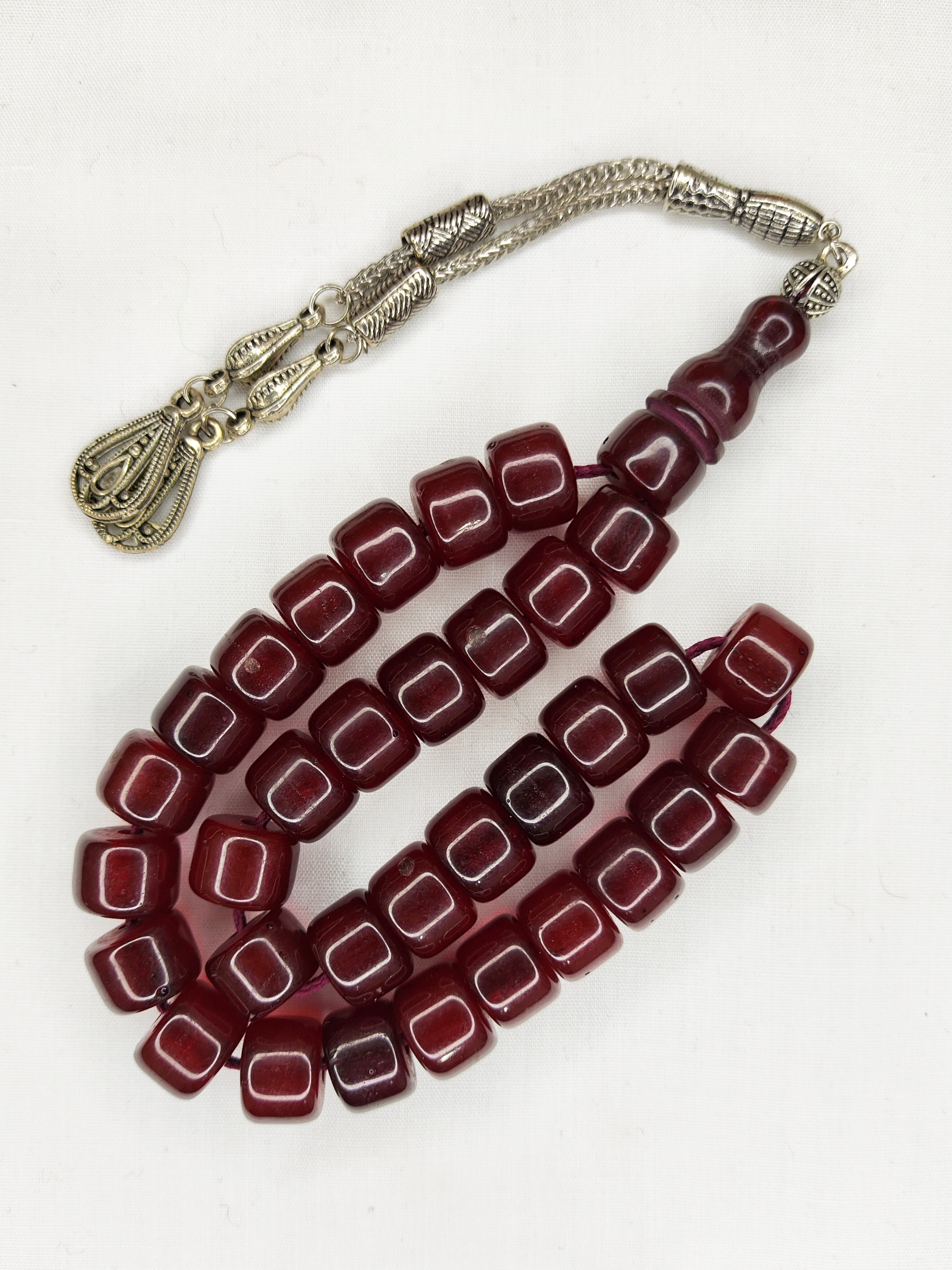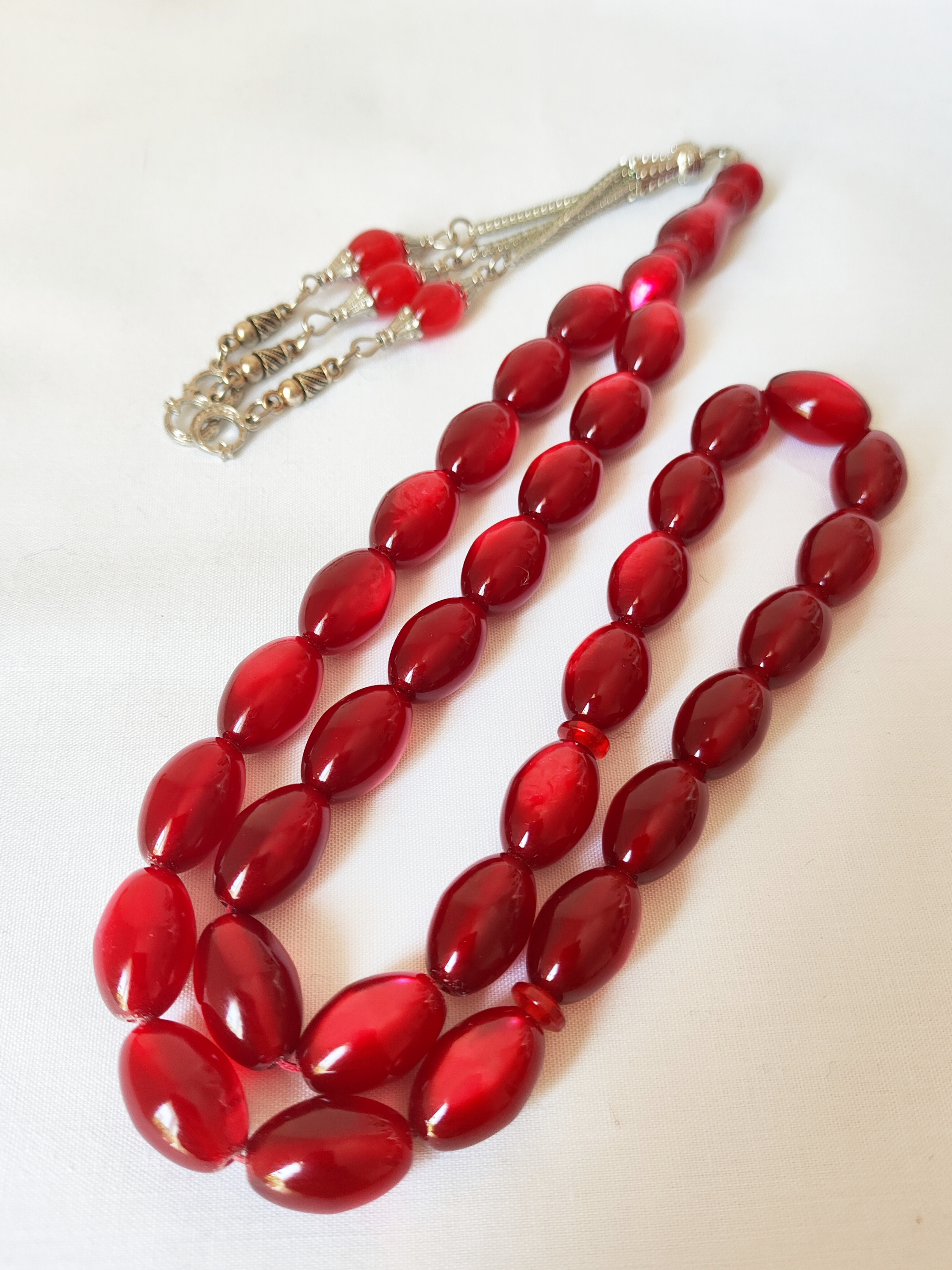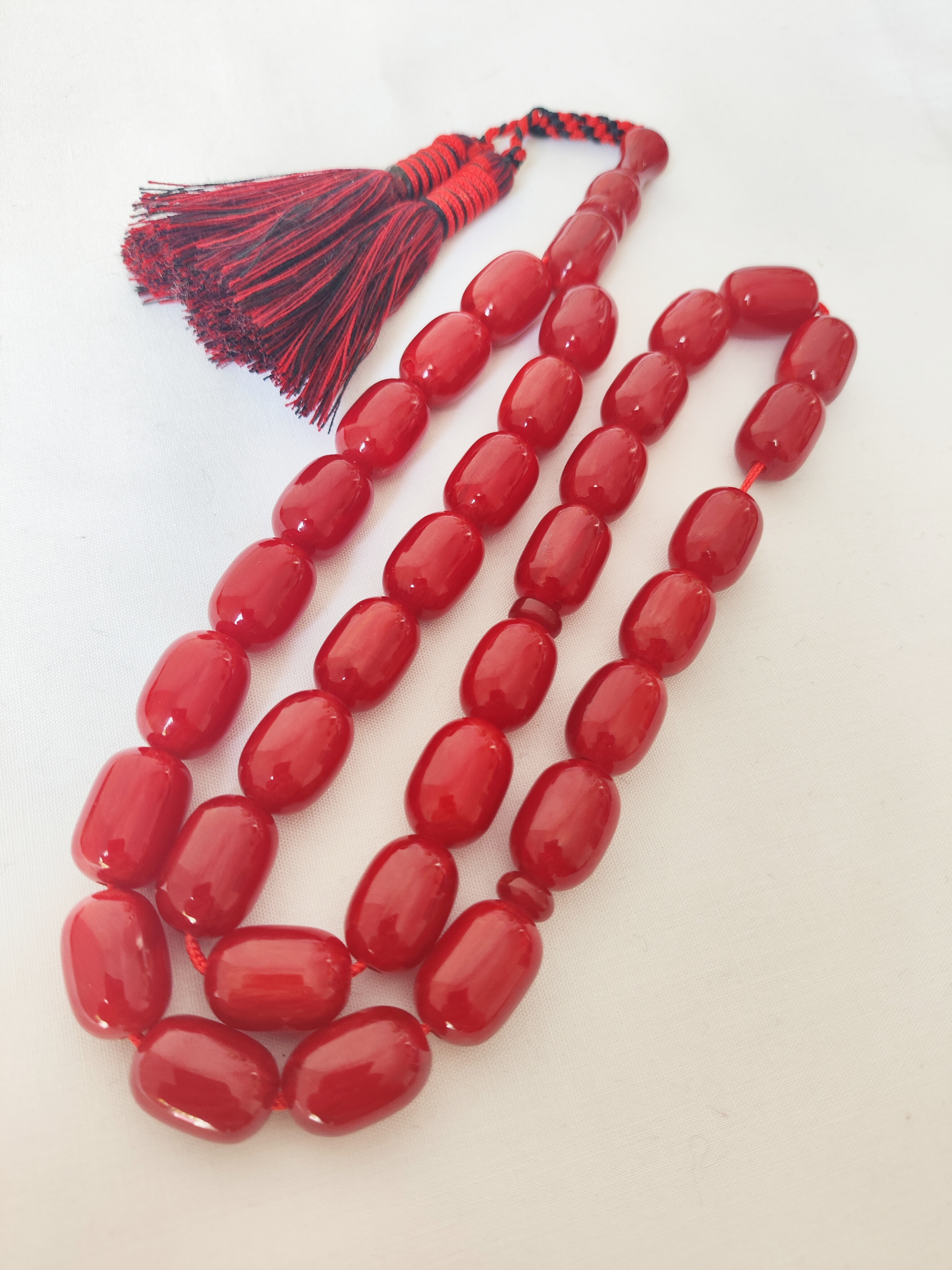 تسبیح کهربا 33عددی تراش کسمه قرمز رنگ خوشدست