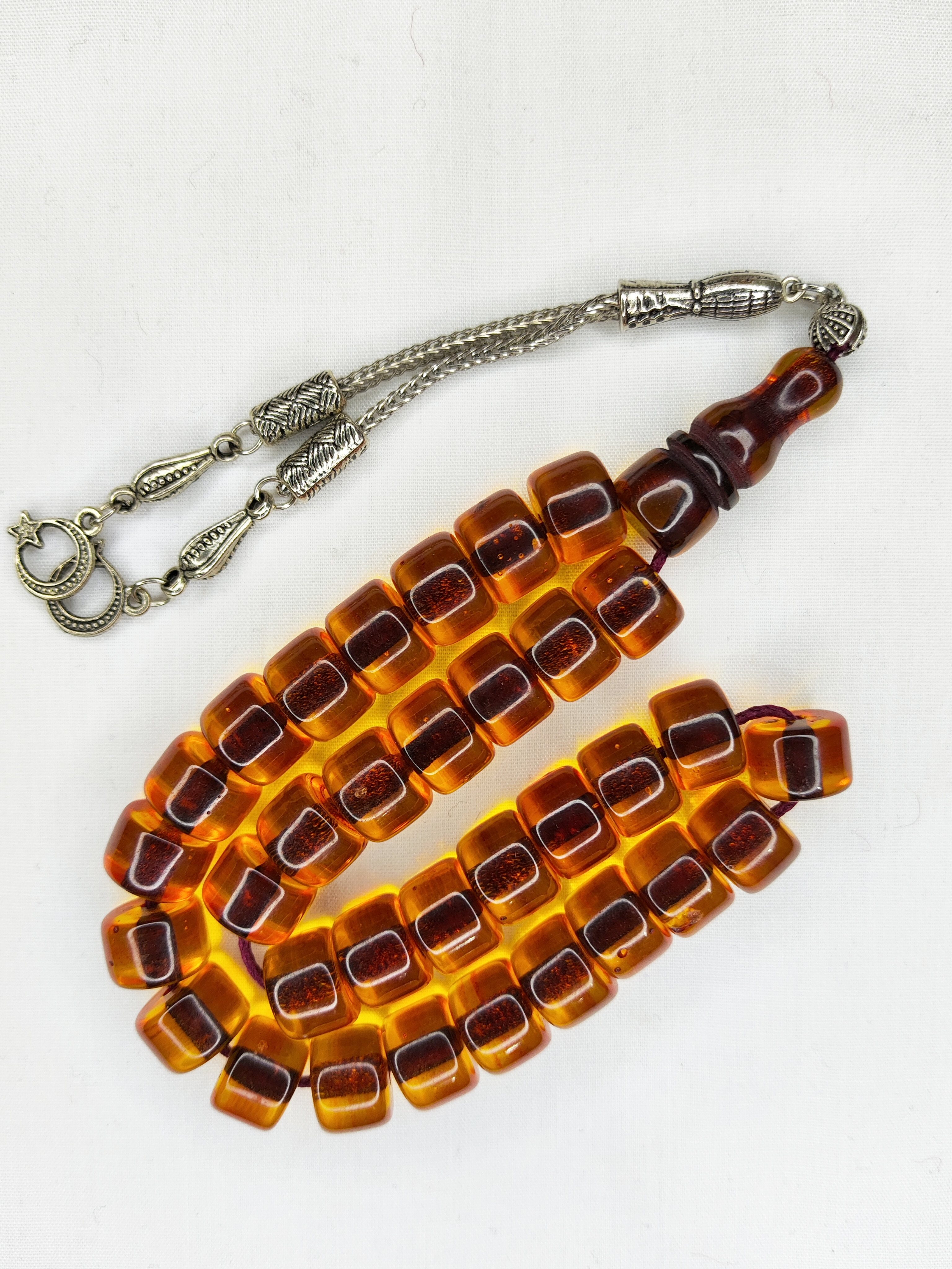 تسبیح کهربا 33عددی تراش کپسولی خوشدست و زیبا همراه سرتسبیح شکیل