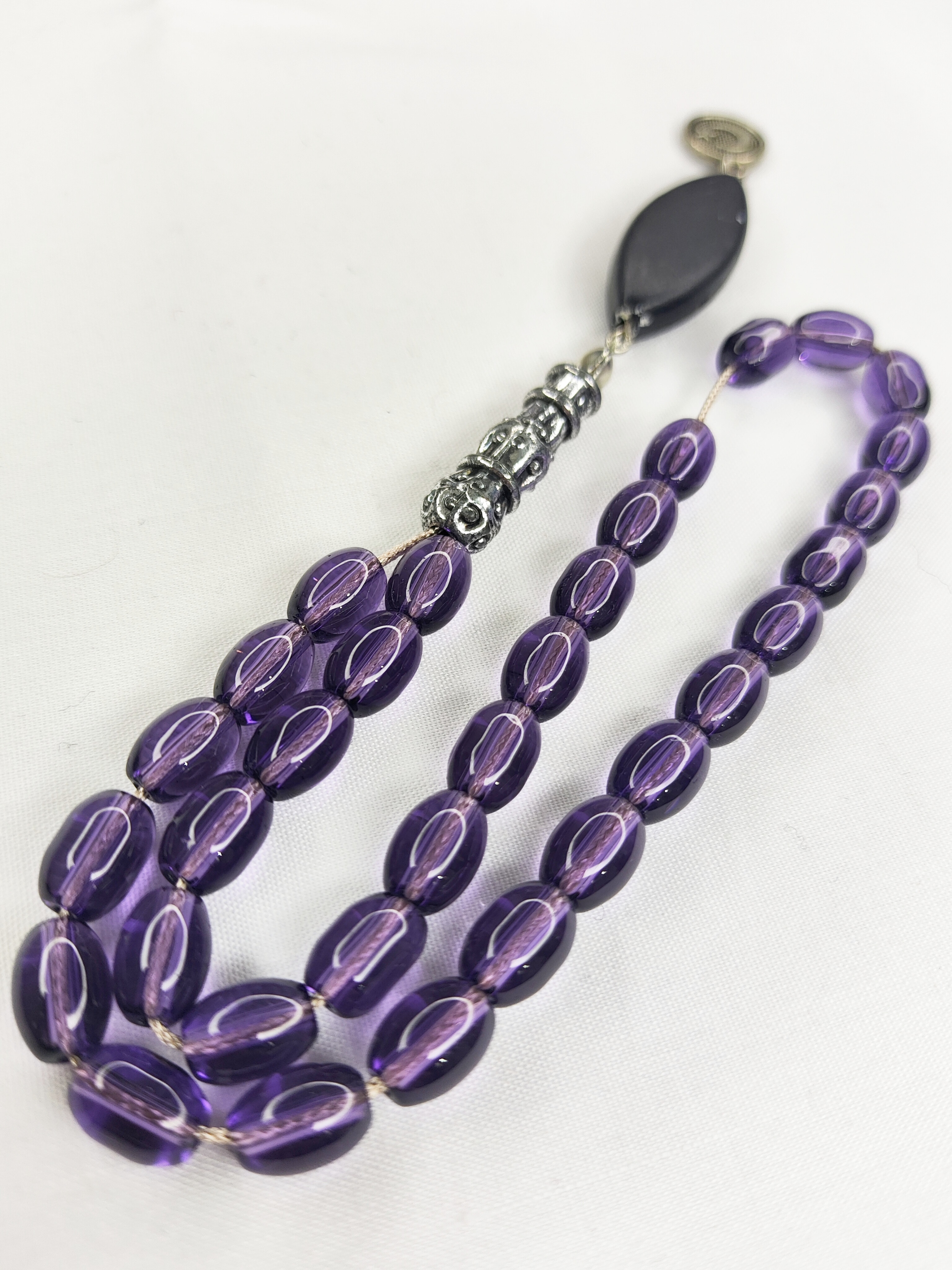 تسبیح شیشهای 33عددی قیمت مناسب رنگ بنفش فاخر و شکیل و خوشدست