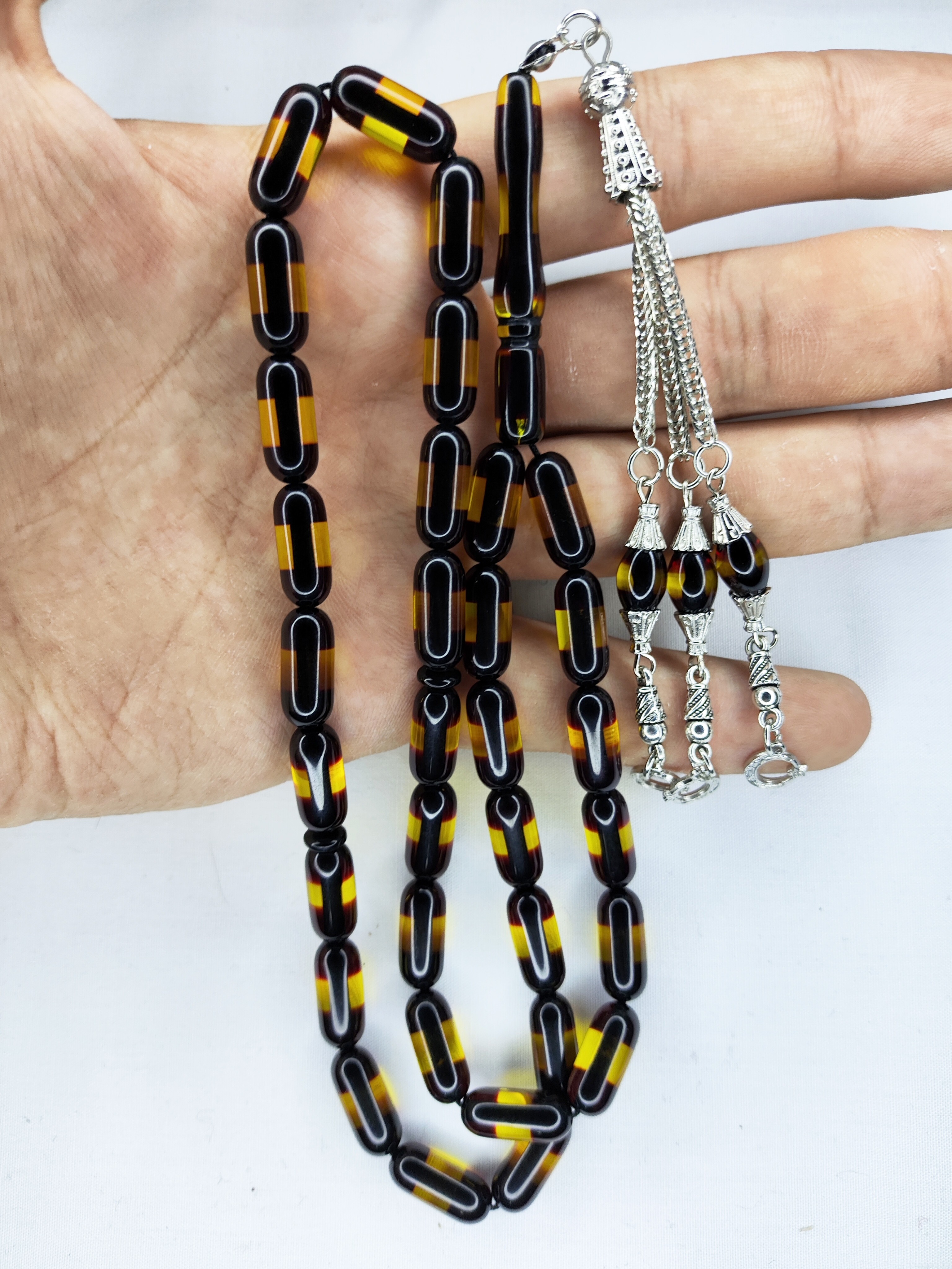 تسبیح کهربا 33عددی دورنگ خاص و کمیاب تراش کپسولی خوشدست