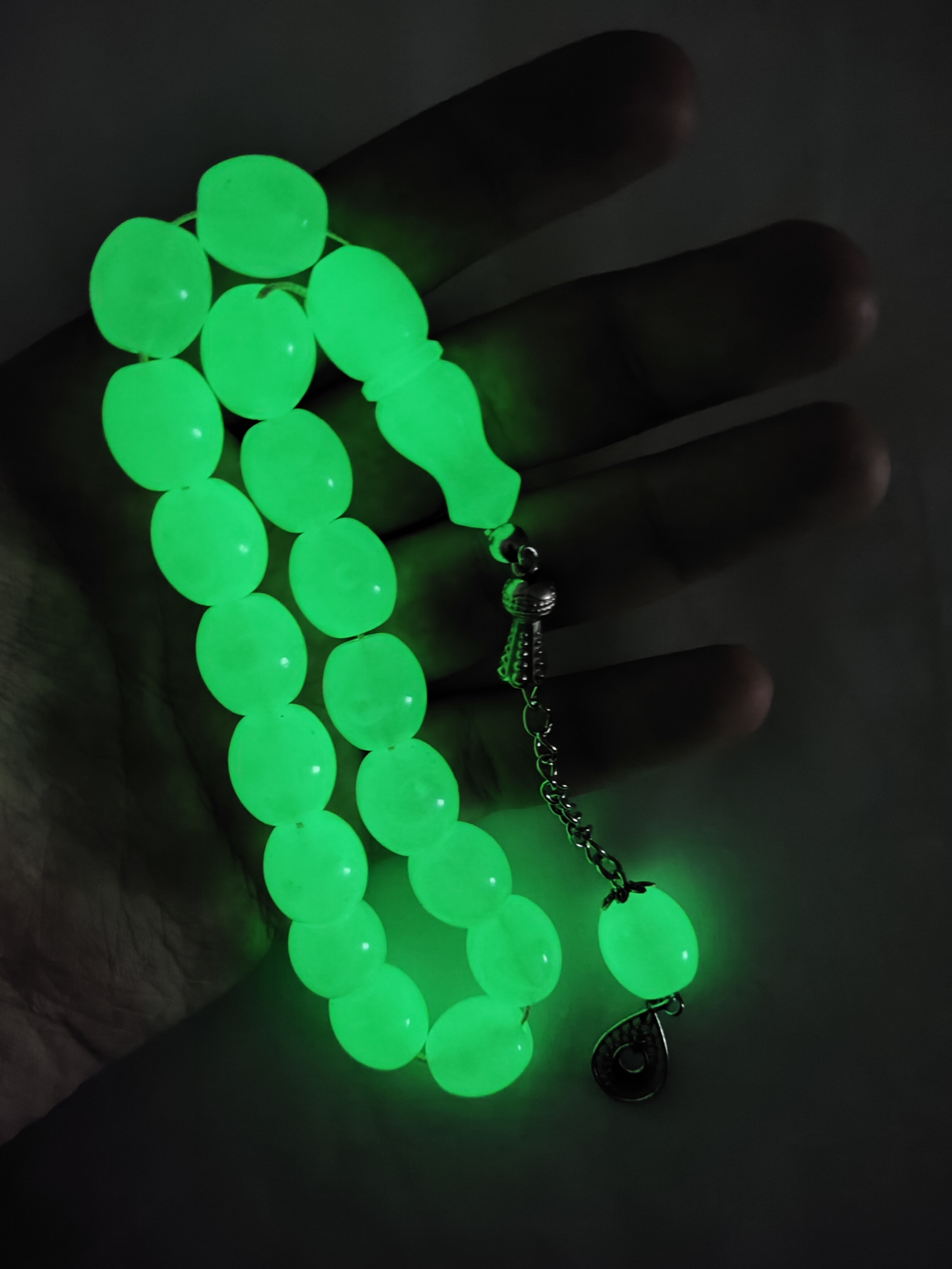 تسبیح شب نما (فسفر) 33عددی تراش هلی خوشدست و زیبا همراه سرتسبیح شکیل