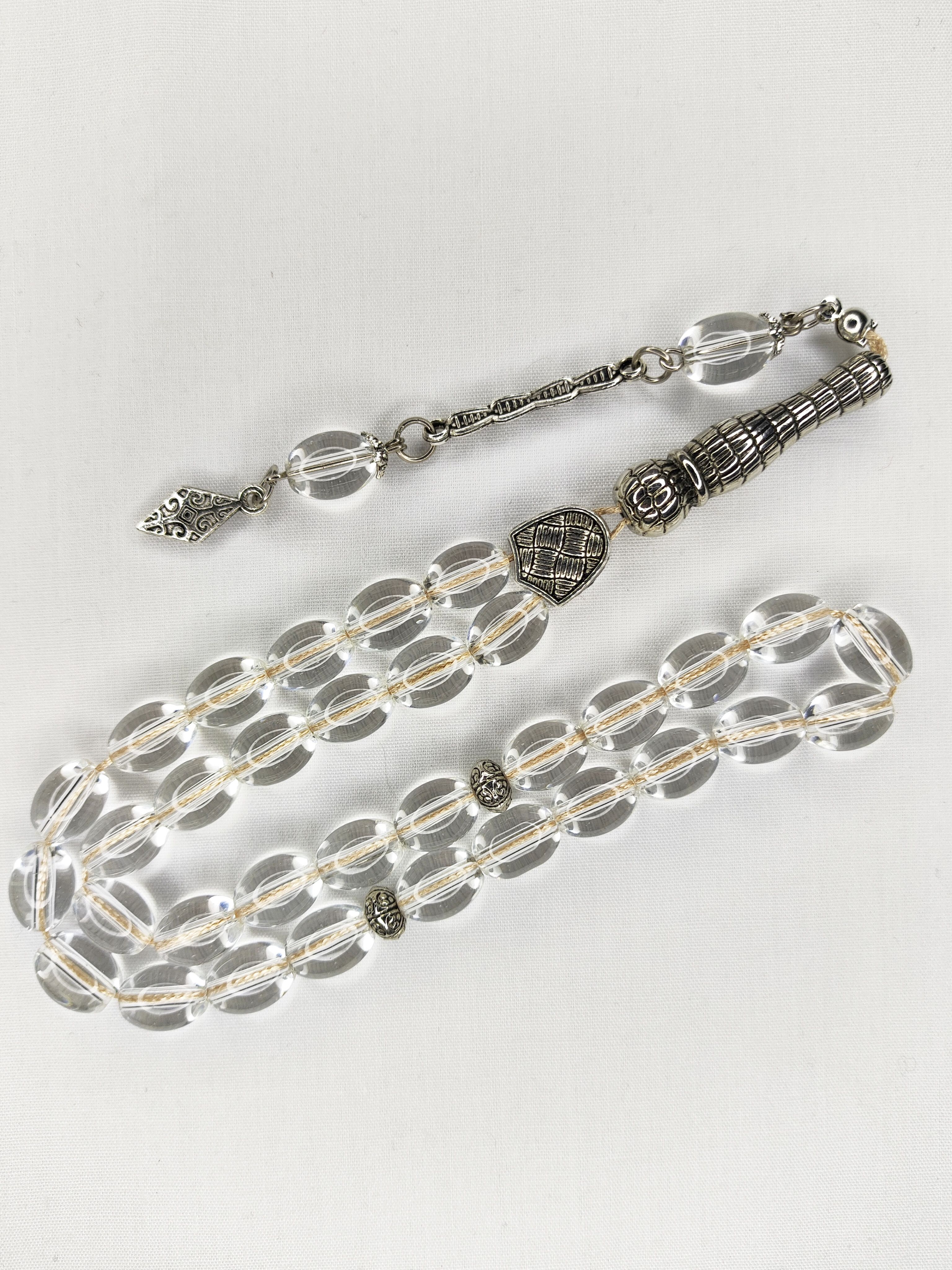تسبیح شیشهای 33عددی رنگ شیشهای شفاف تراش هلی خوشدست