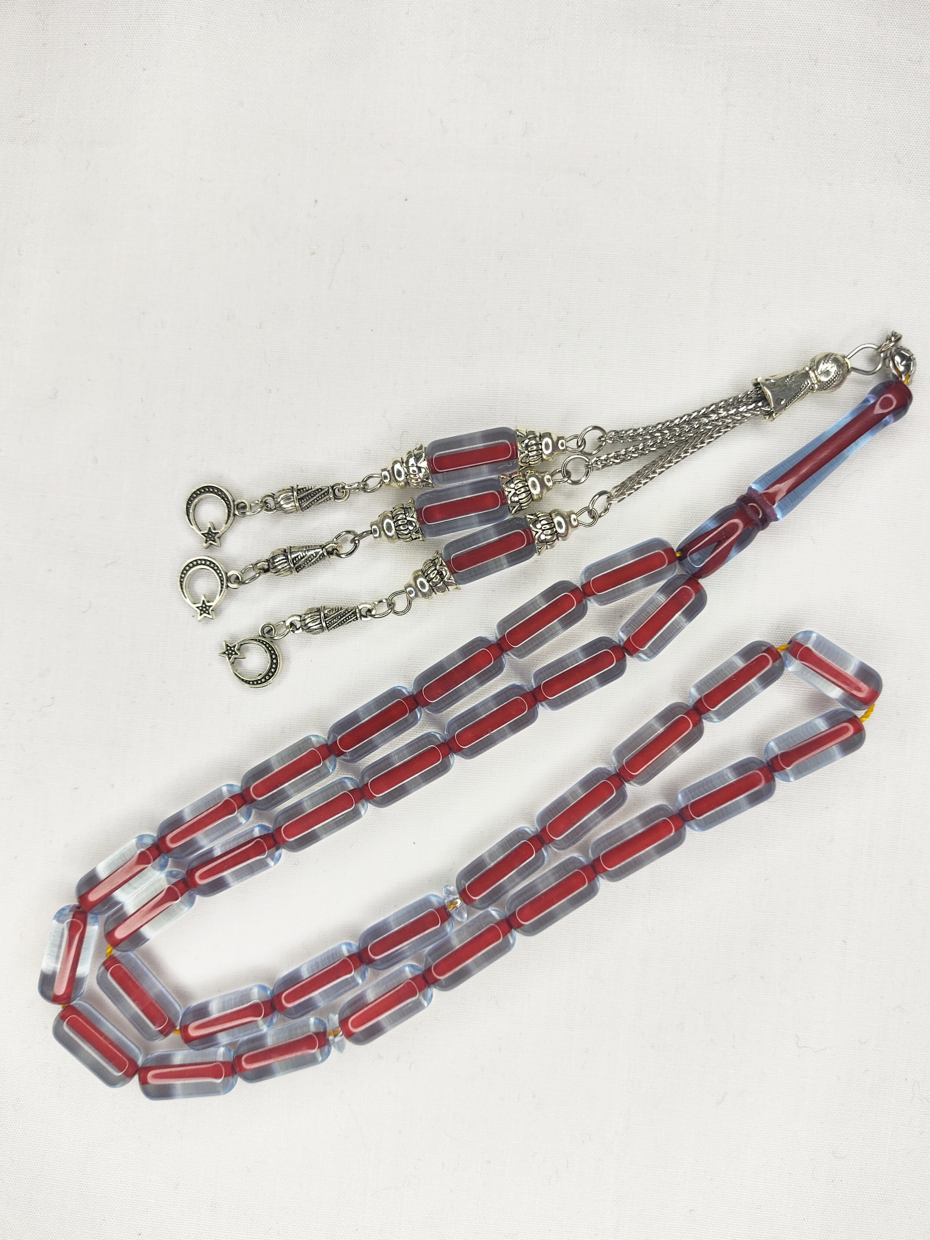 تسبیح کهربا رگه دار 33عددی قرمز خوشرنگ