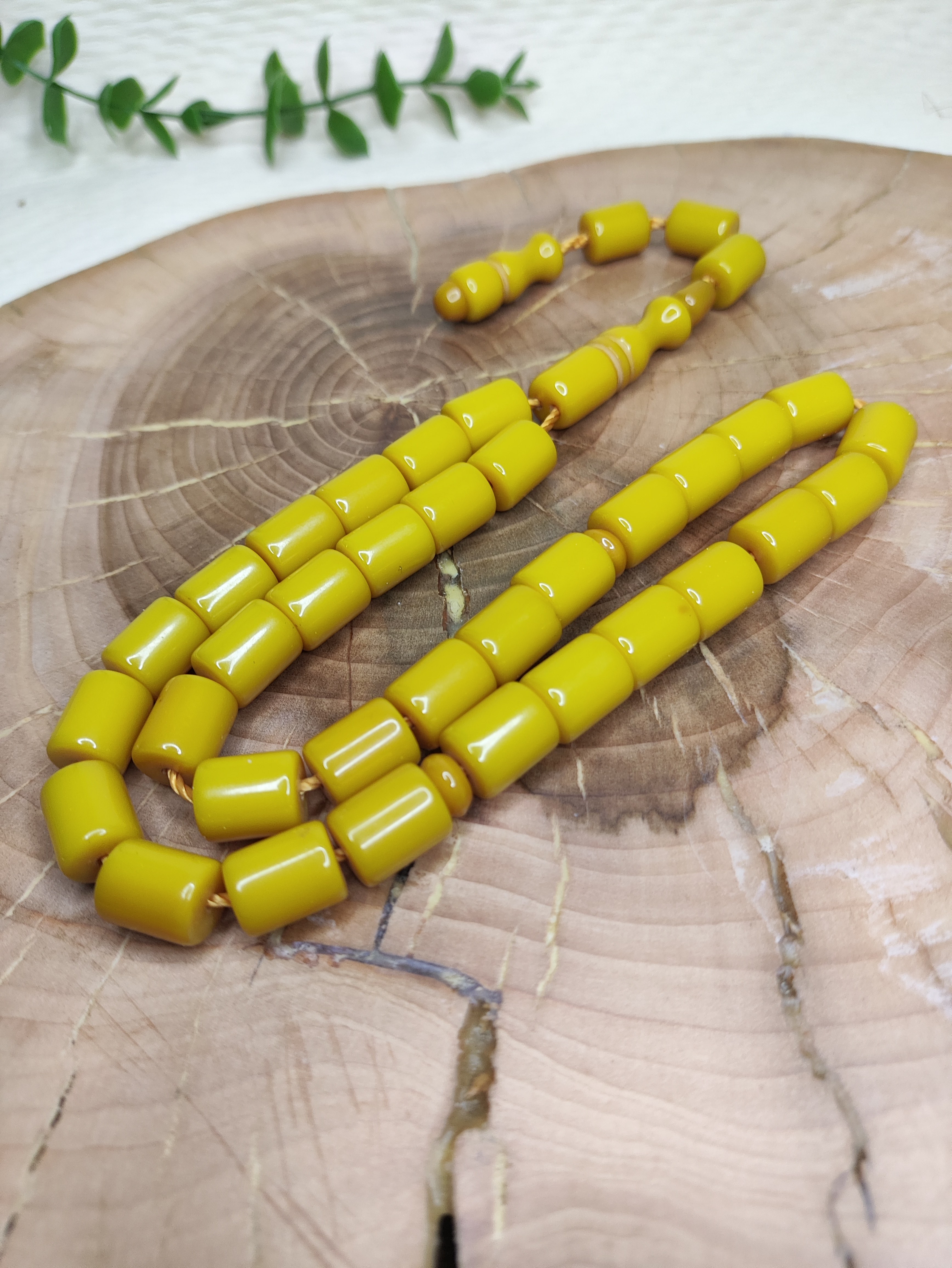تسبیح سندلوس 33عددی تراش کسمه (قیچی بر) رنگ زرد سیستم دار