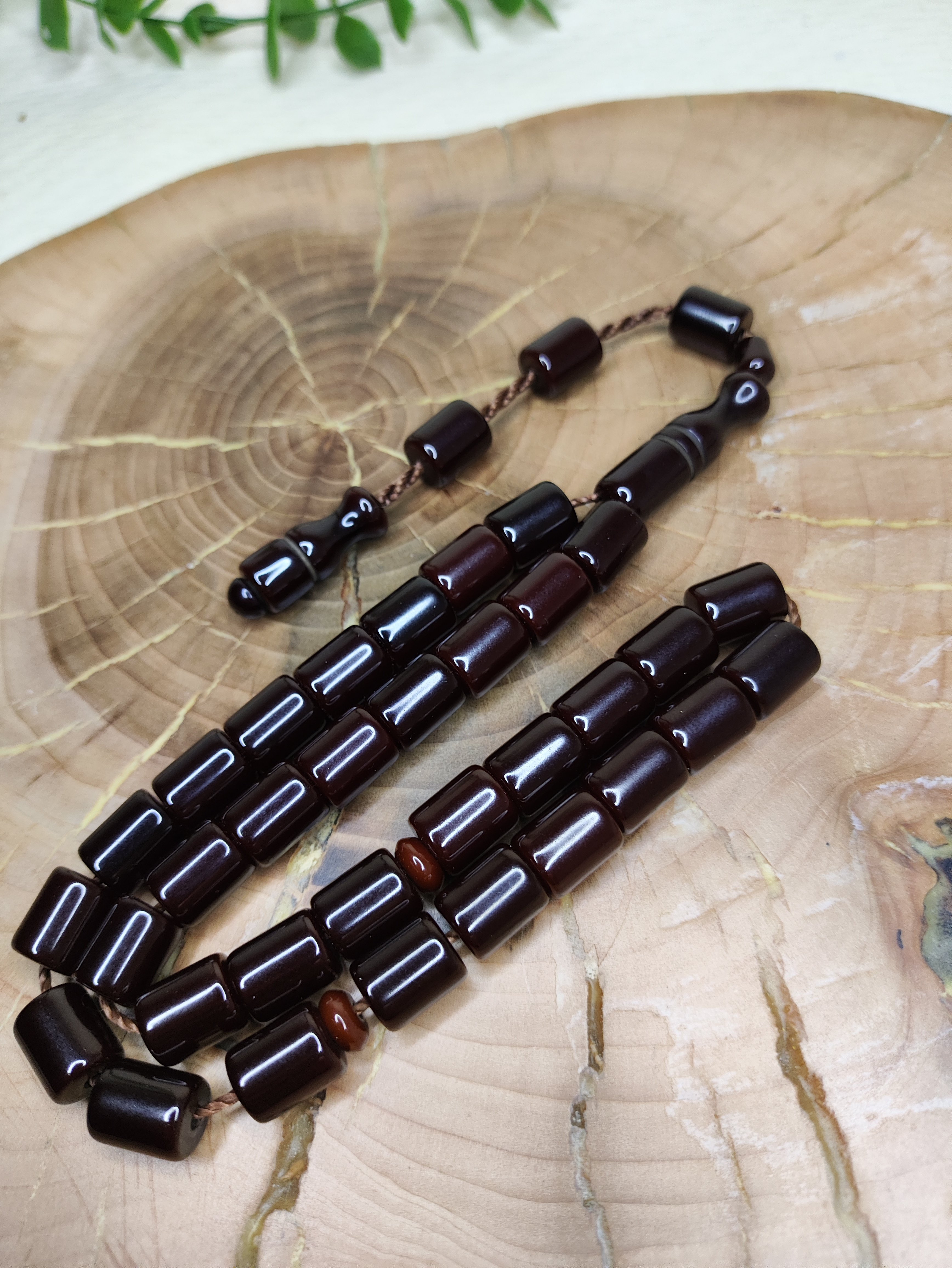 تسبیح کهربا 33عددی رنگ شکلاتی تراش کپسولی خوشدست