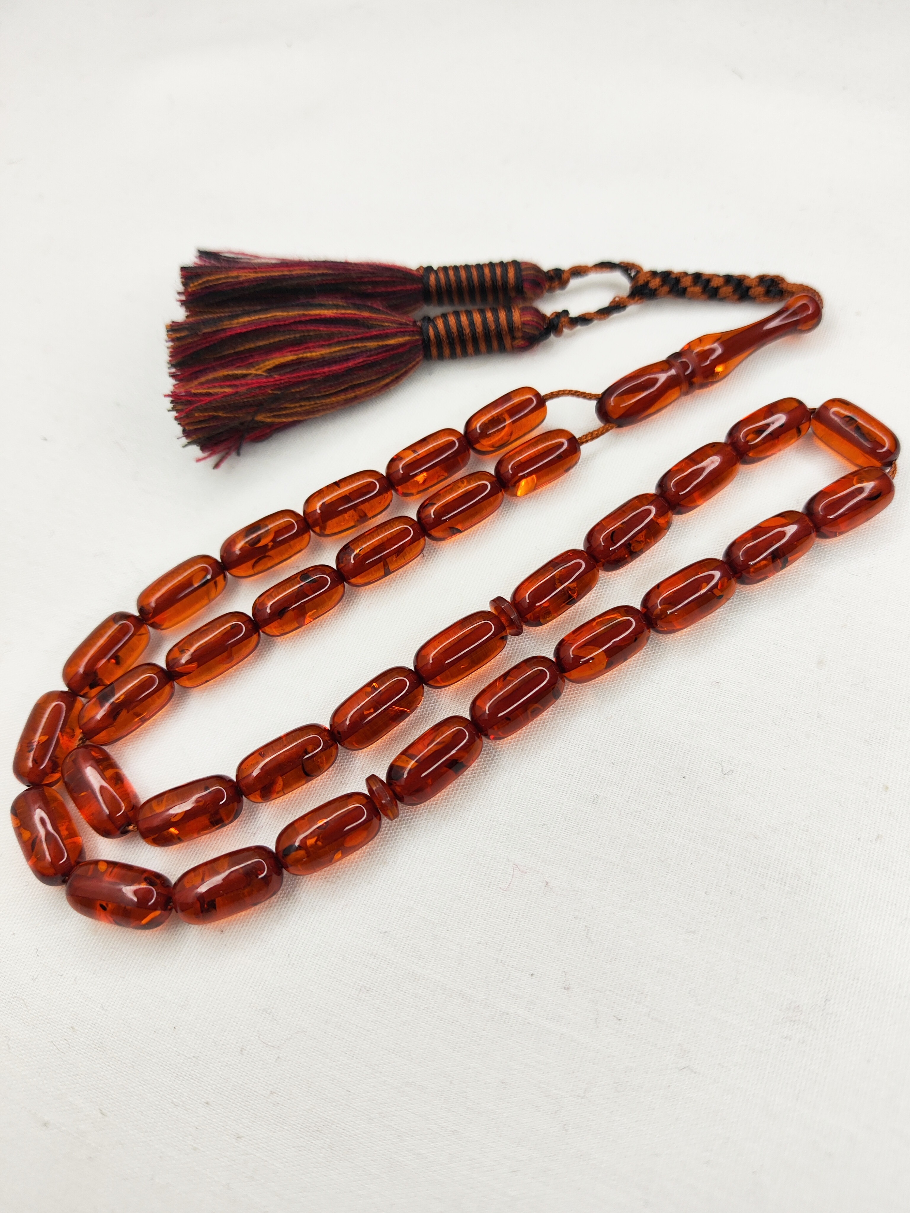 ناموجودتسبیح کهربا 33عددی تراش کپسولی خوشدست و زیبا همراه سرتسبیح شکیل