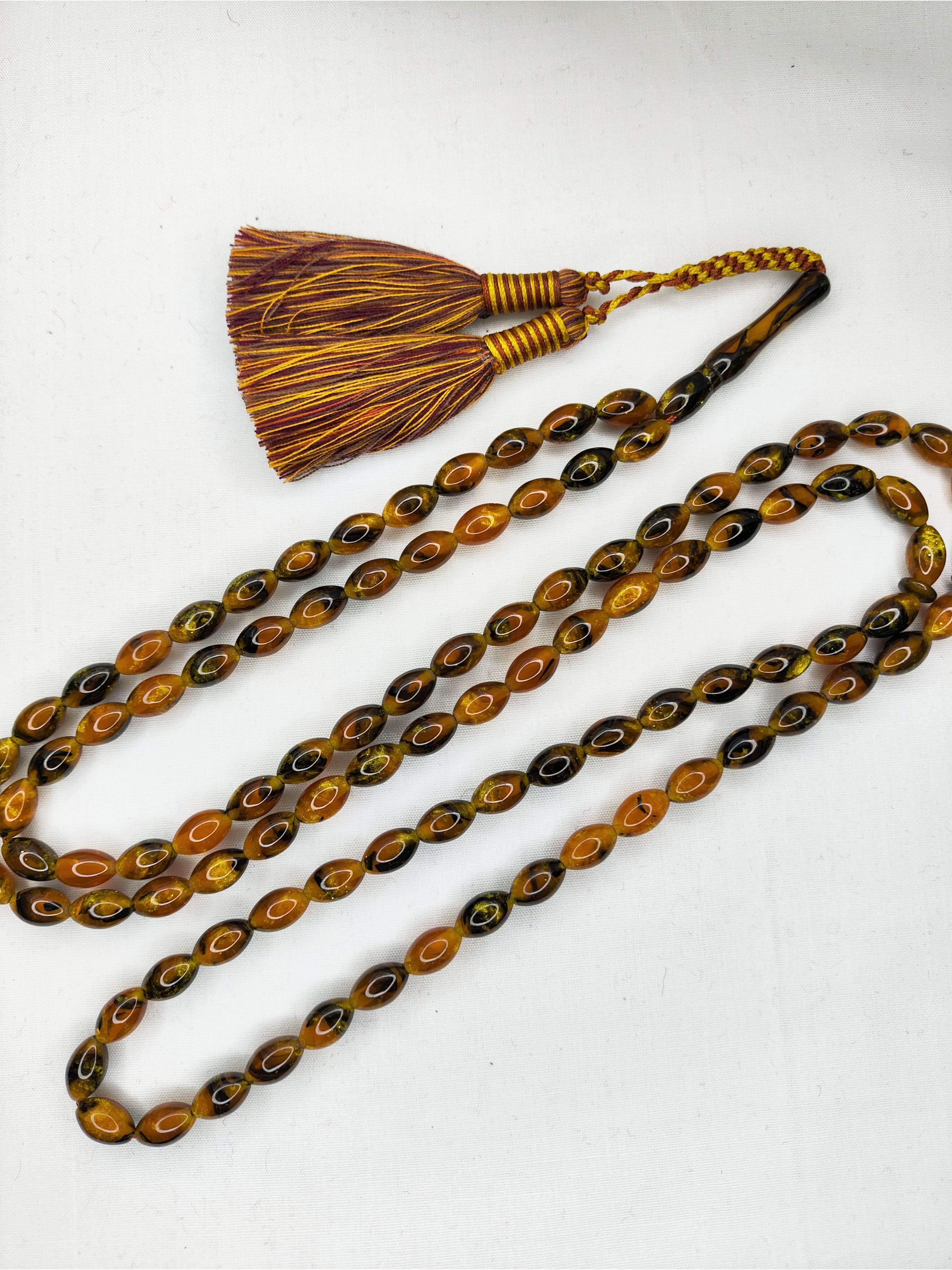 ناموجودتسبیح کهربا رگه دار 101عددی رنگ گردویی زیبا و خوشدست با بافت شکیل و حرفه ای