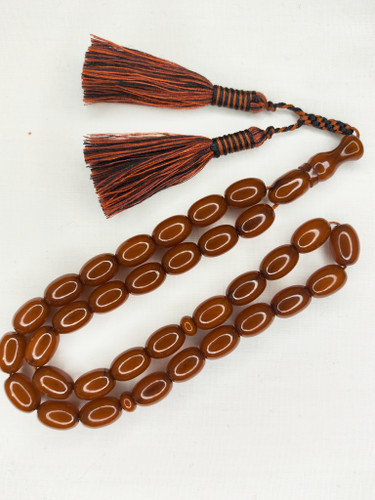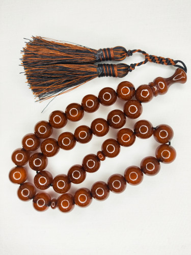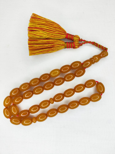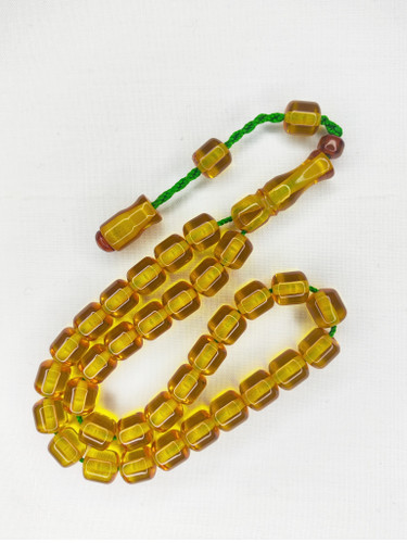 پلاستیک: برخی تسبیحهای کهربا مصنوعی از پلاستیکهای خاصی ساخته میشوند که به رنگ و بافت کهربای طبیعی شباهت دارند.