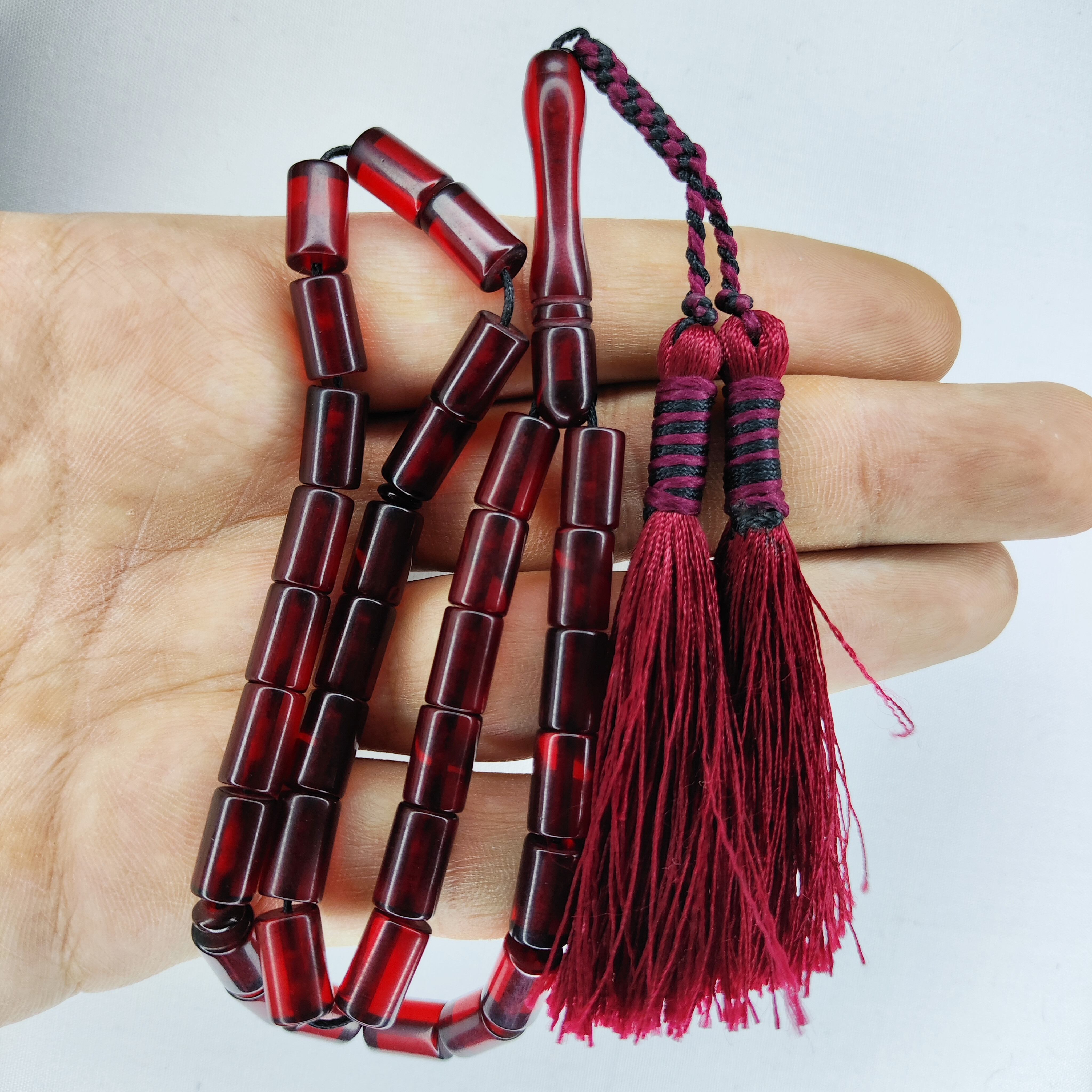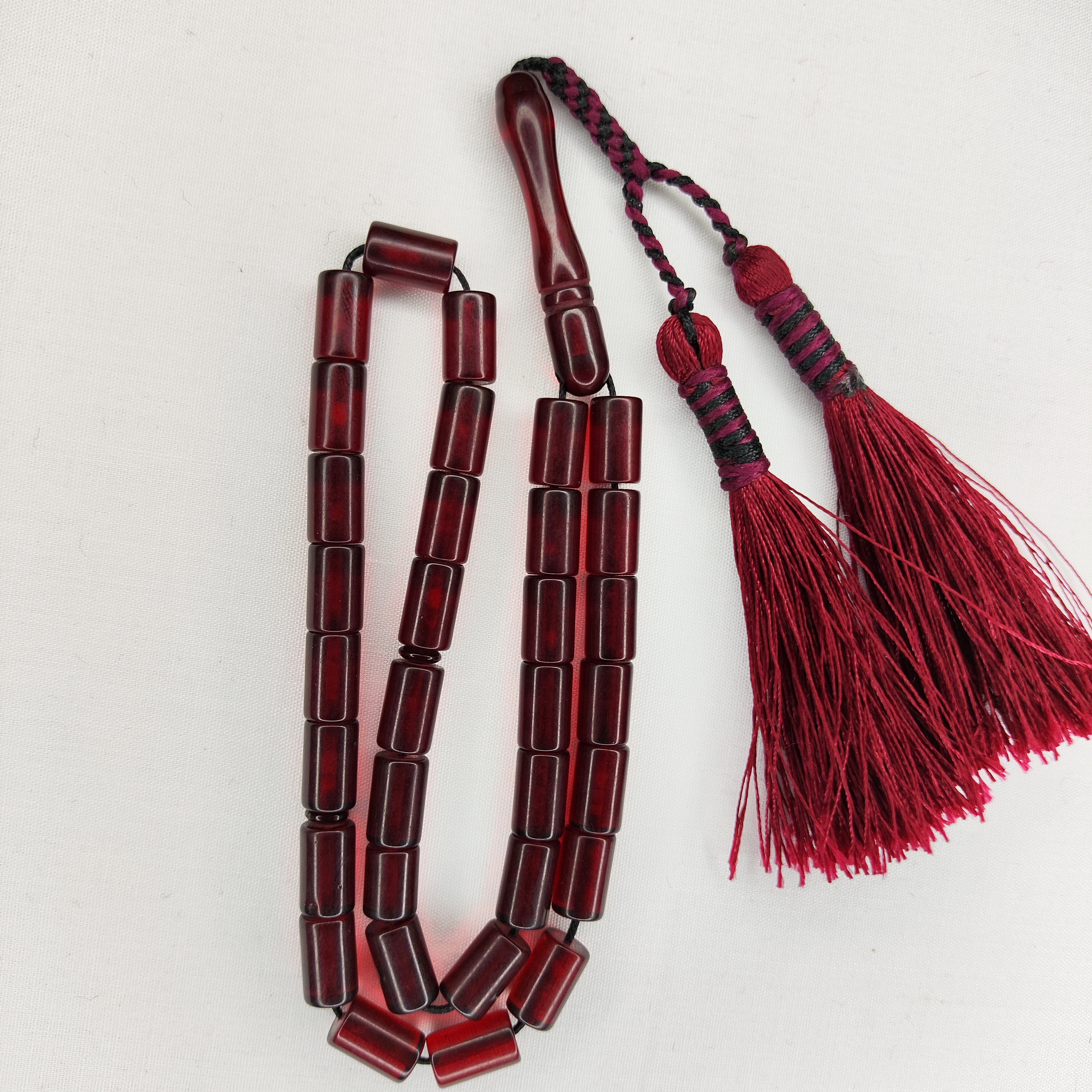 تسبیح کهربا 33عددی تراش کسمه قرمز رنگ خوشدست