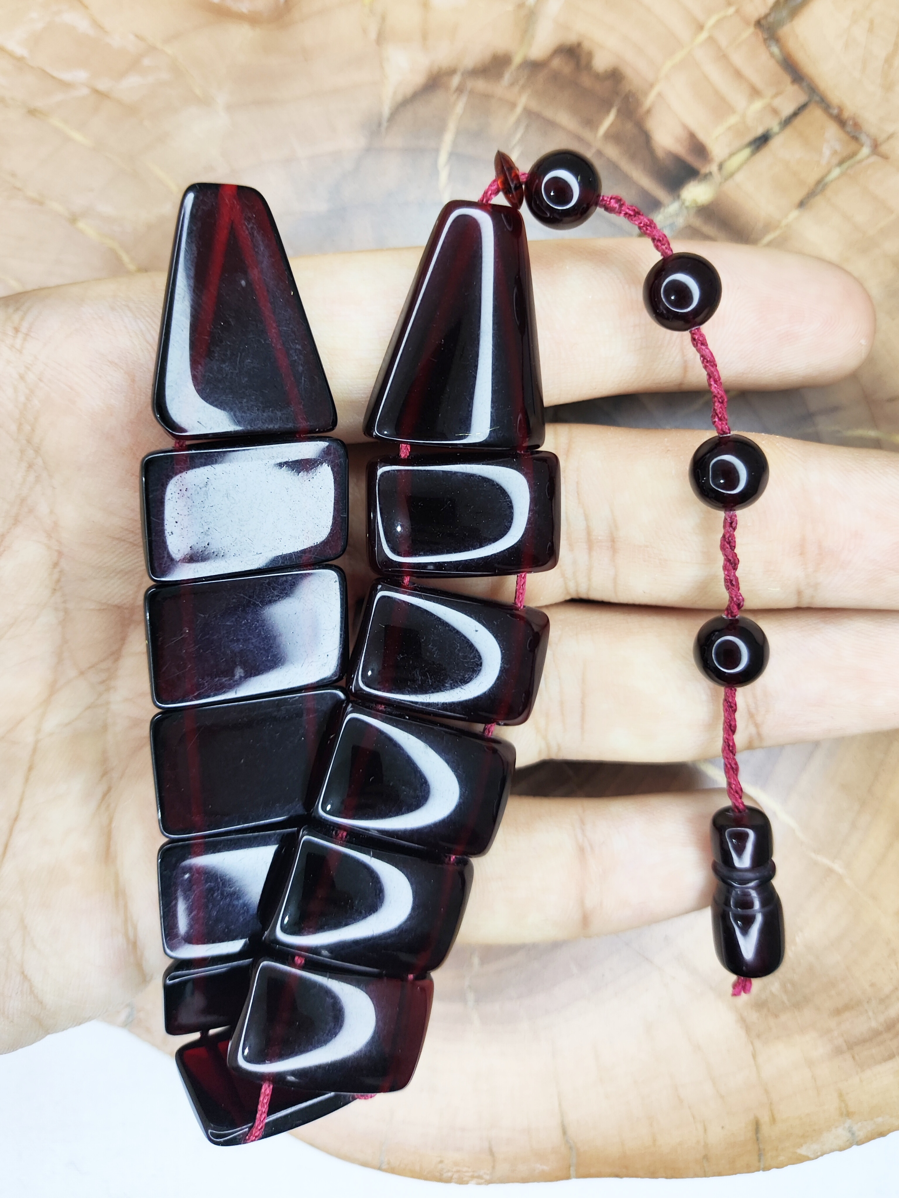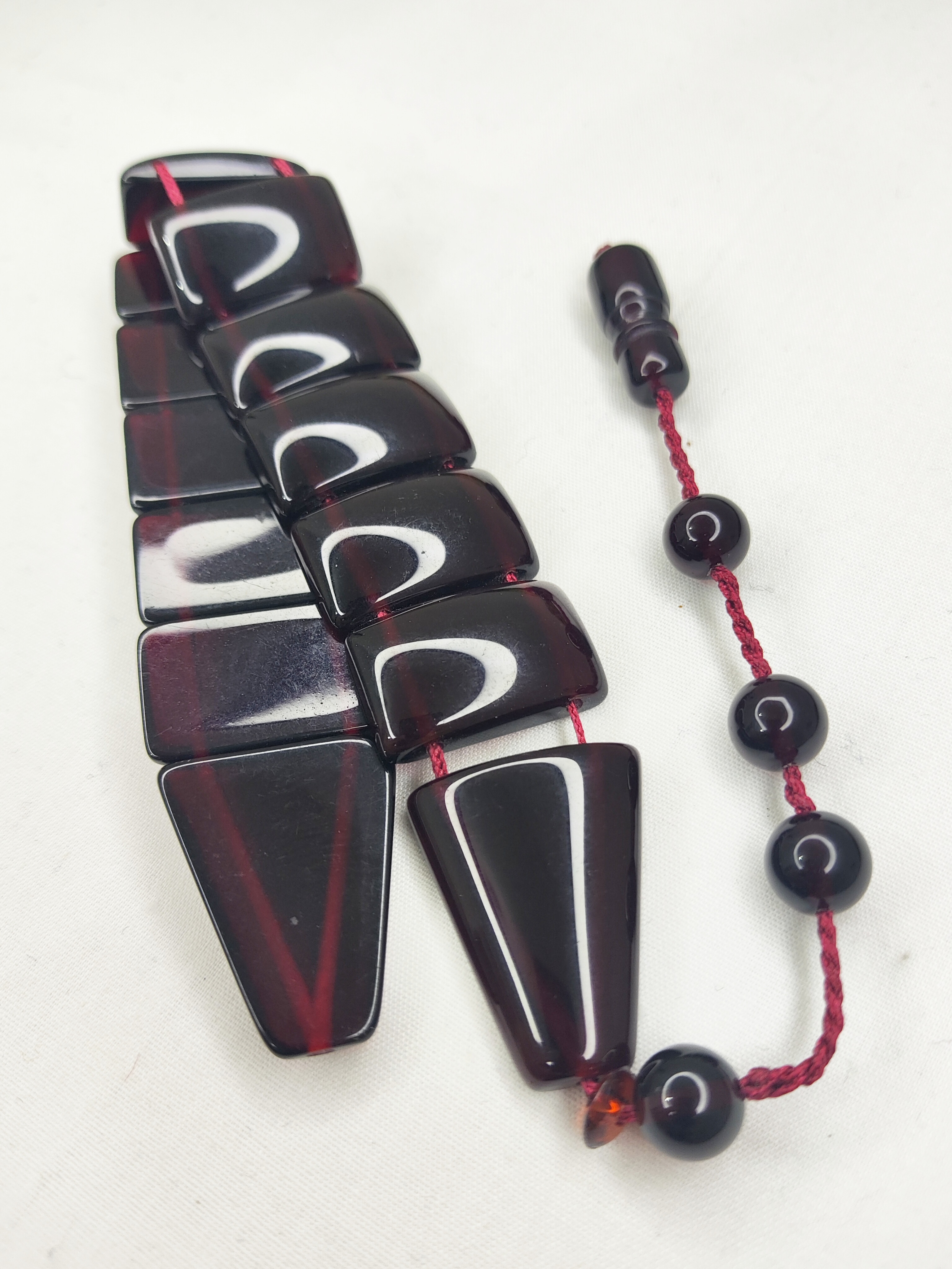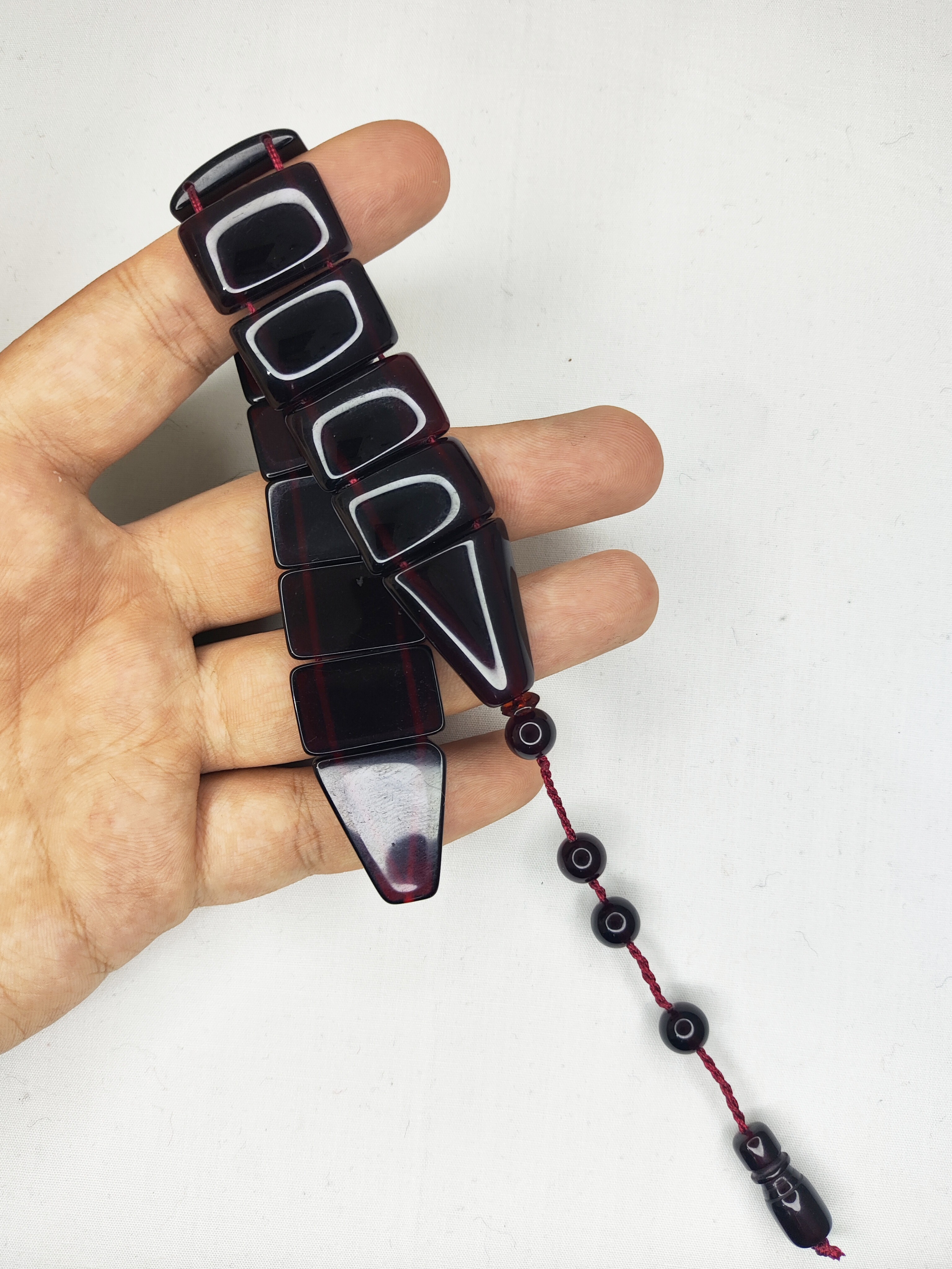 تسبیح زازا کهربا 11عددی رنگ شرابی دنباله دار خوشدست و زیبا