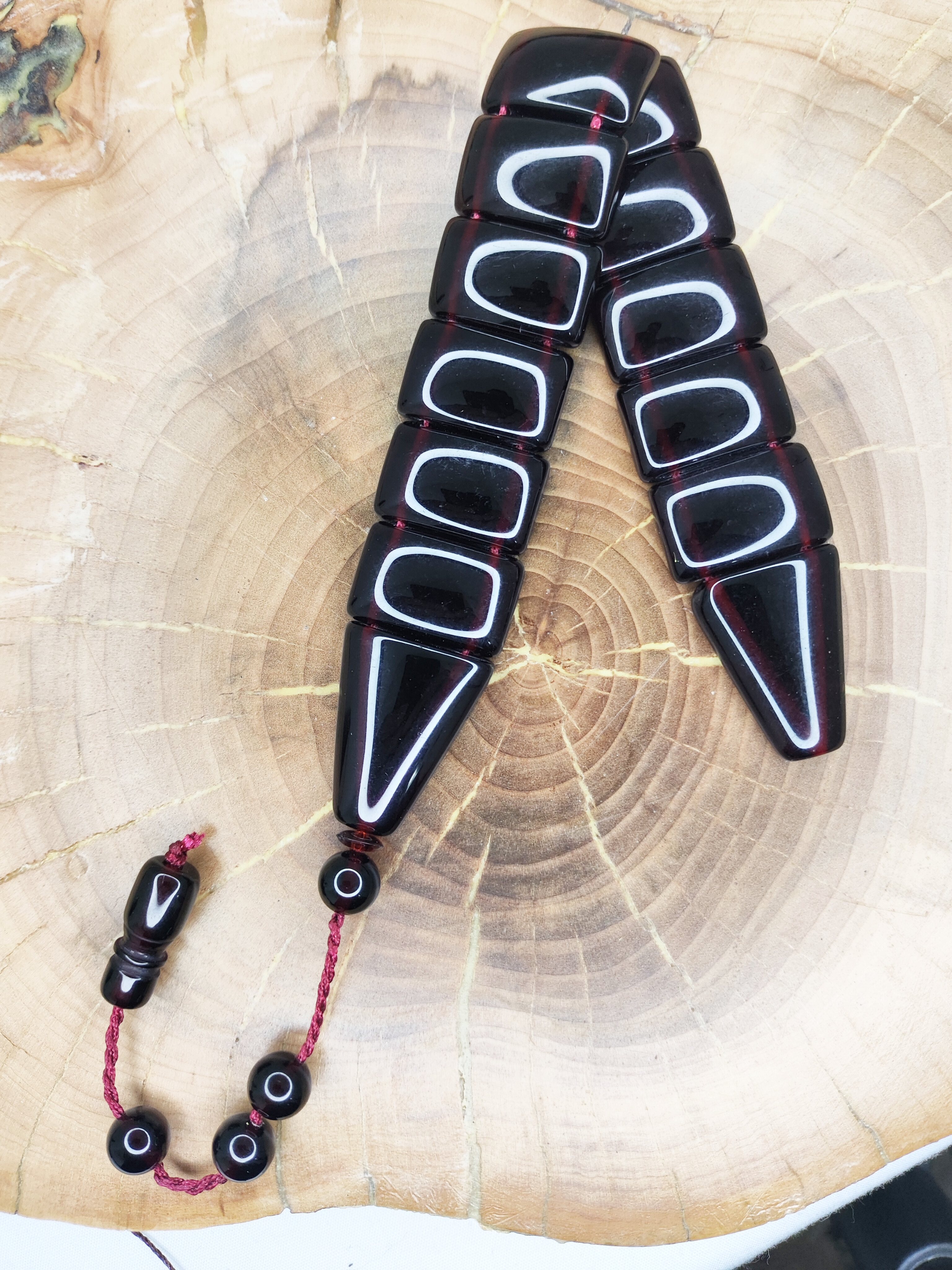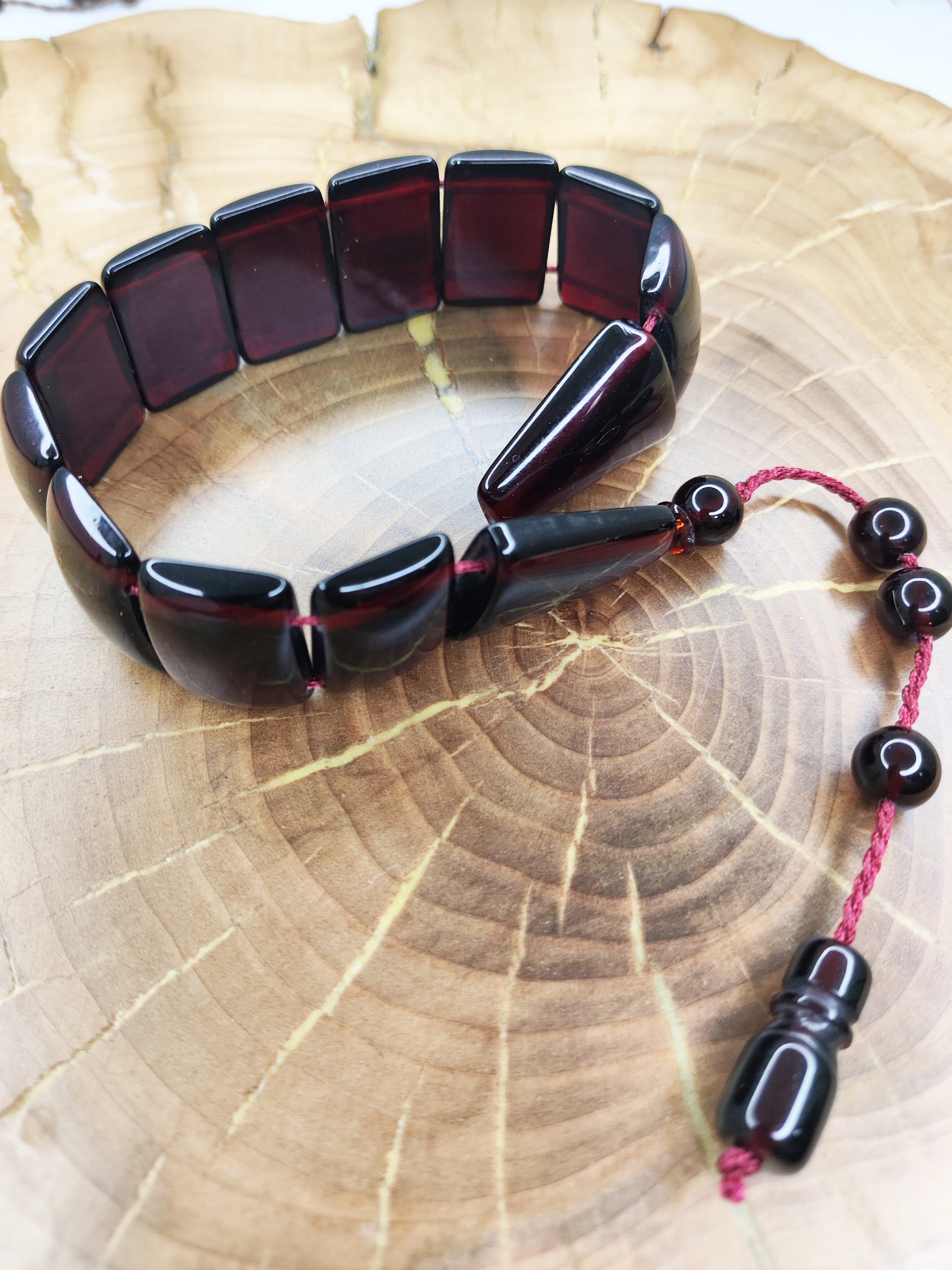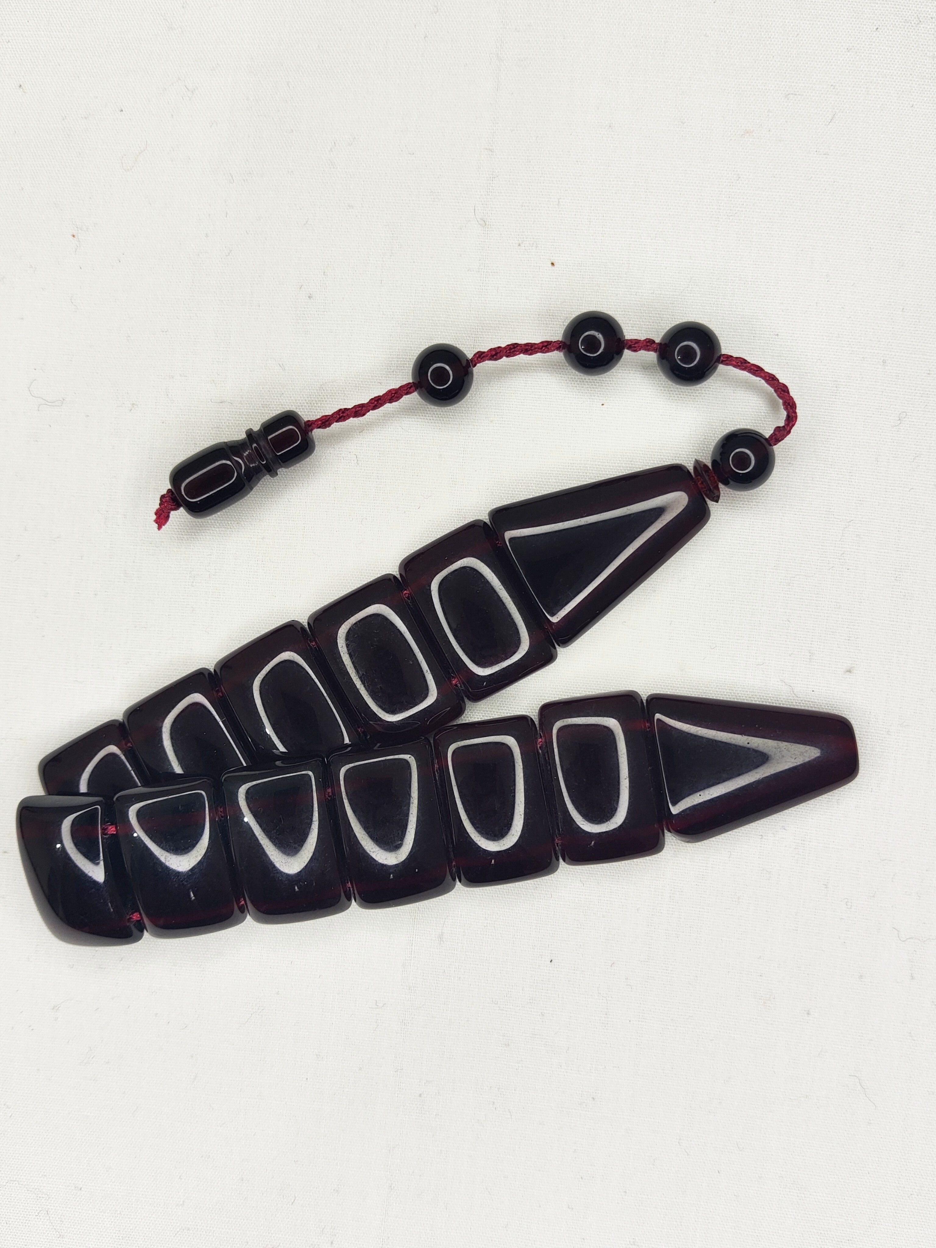 تسبیح زازا کهربا 11عددی رنگ شرابی دنباله دار خوشدست و زیبا