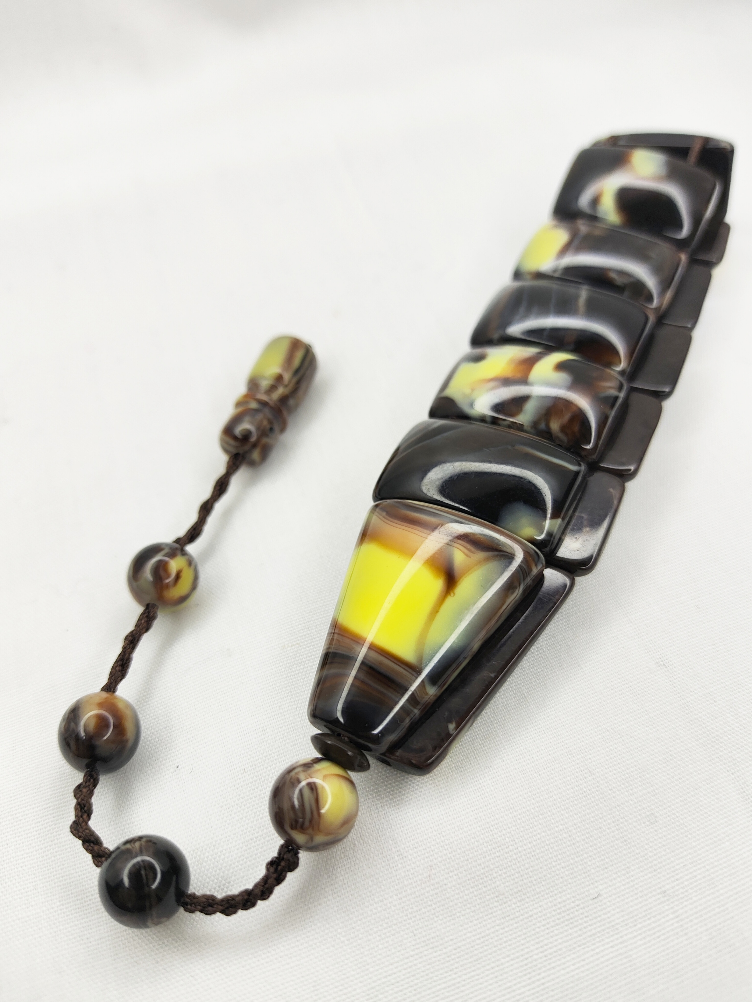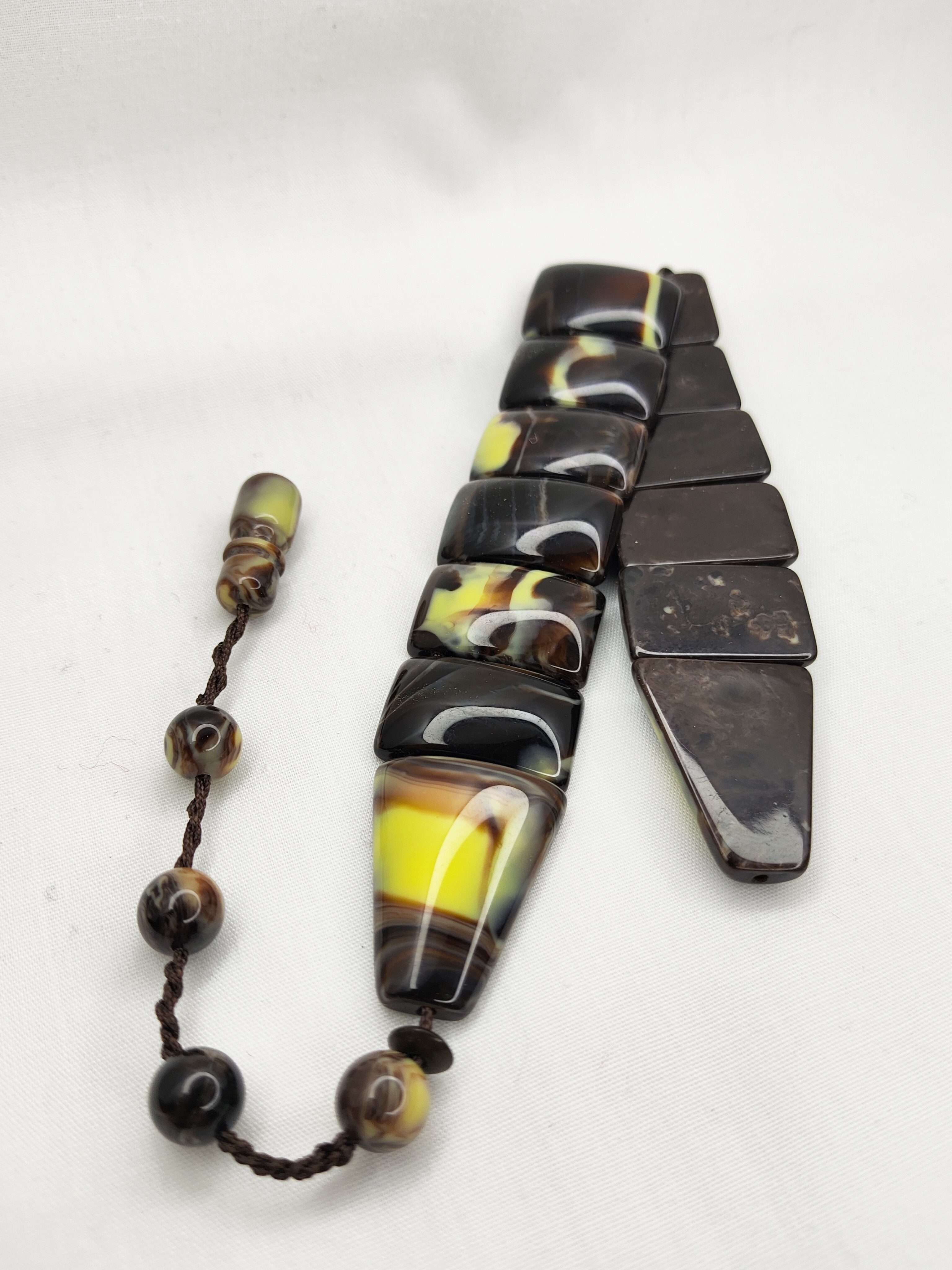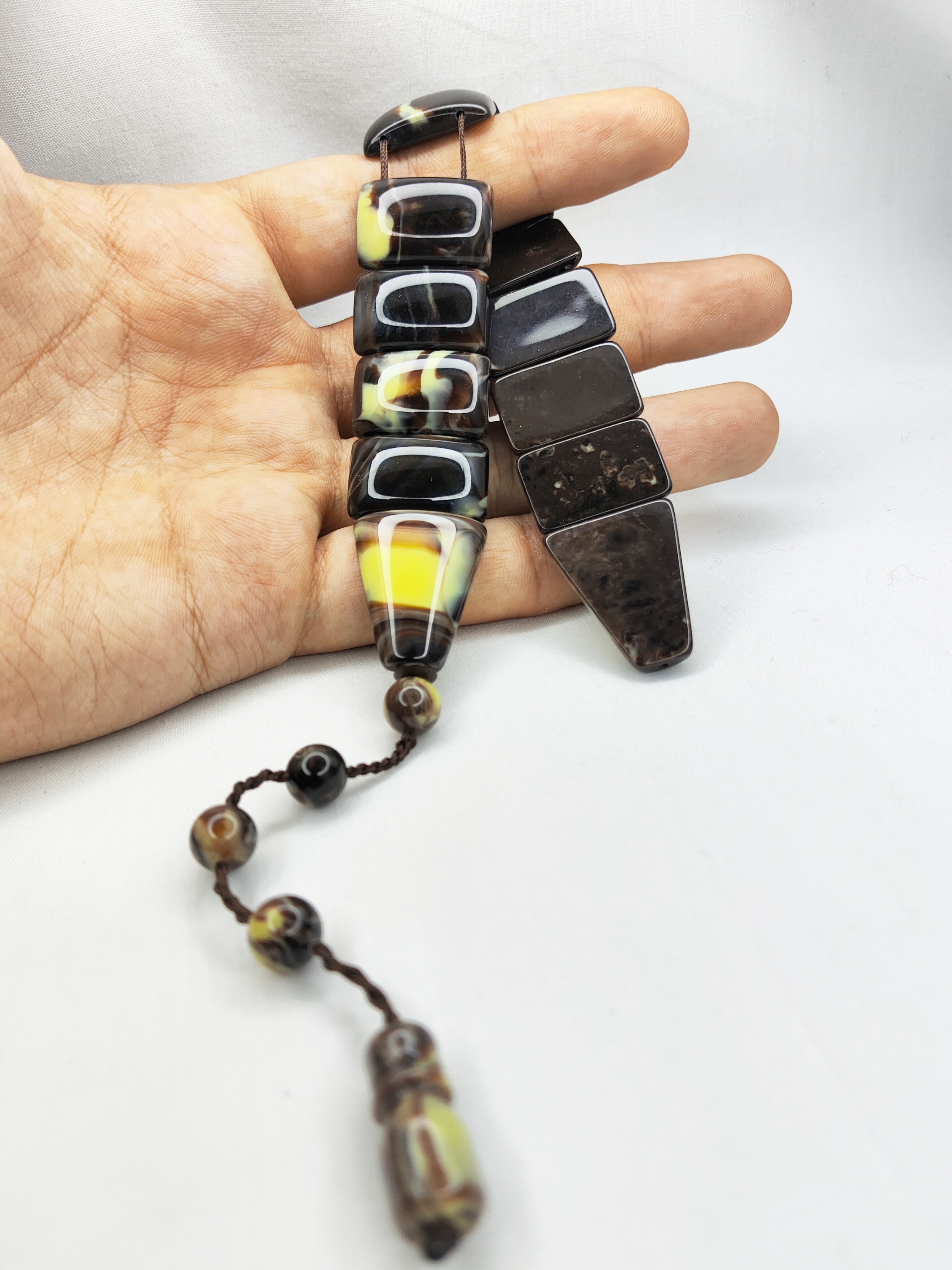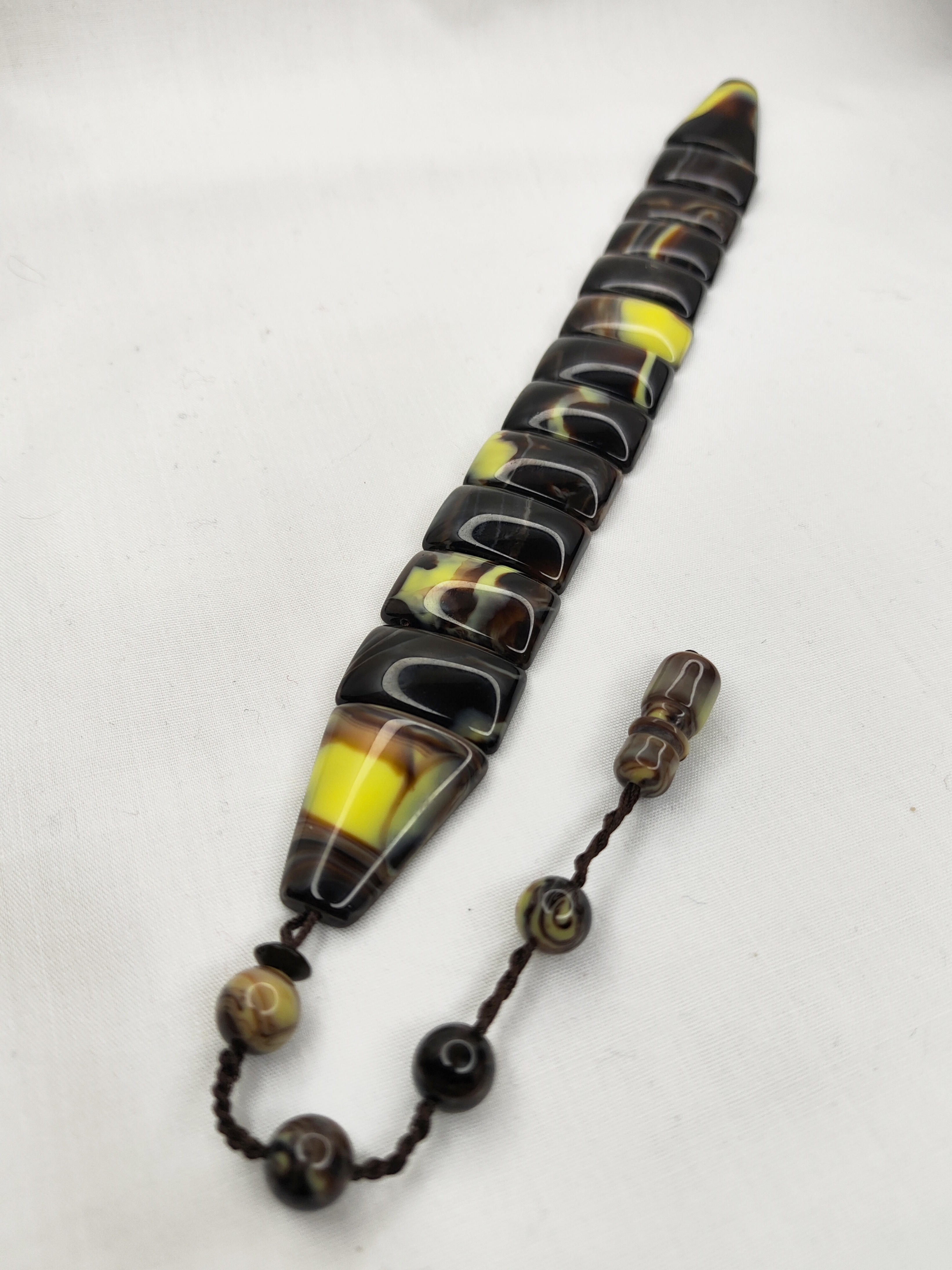 تسبیح زازا کهربا رنگ شکلاتی دنباله دار