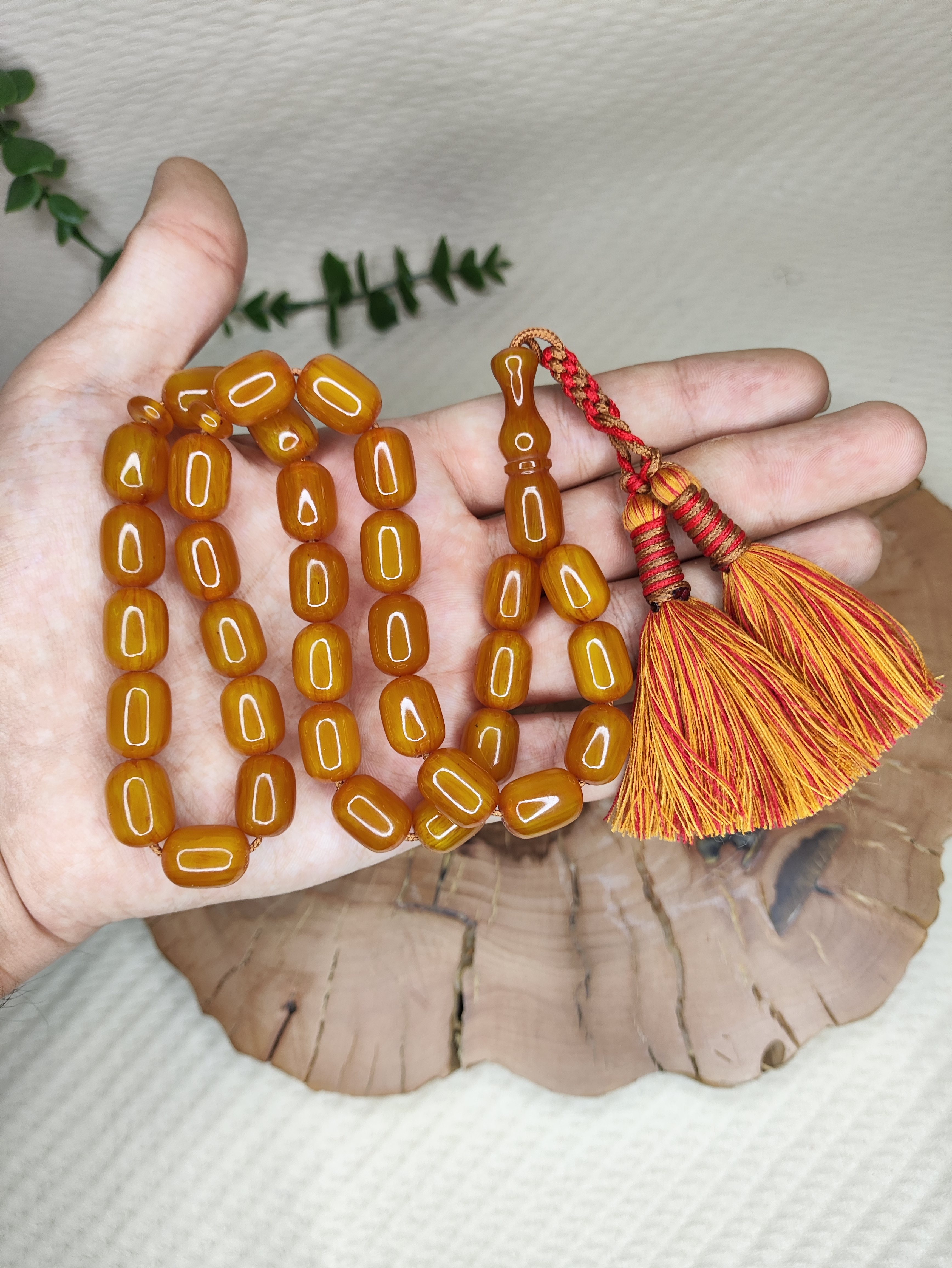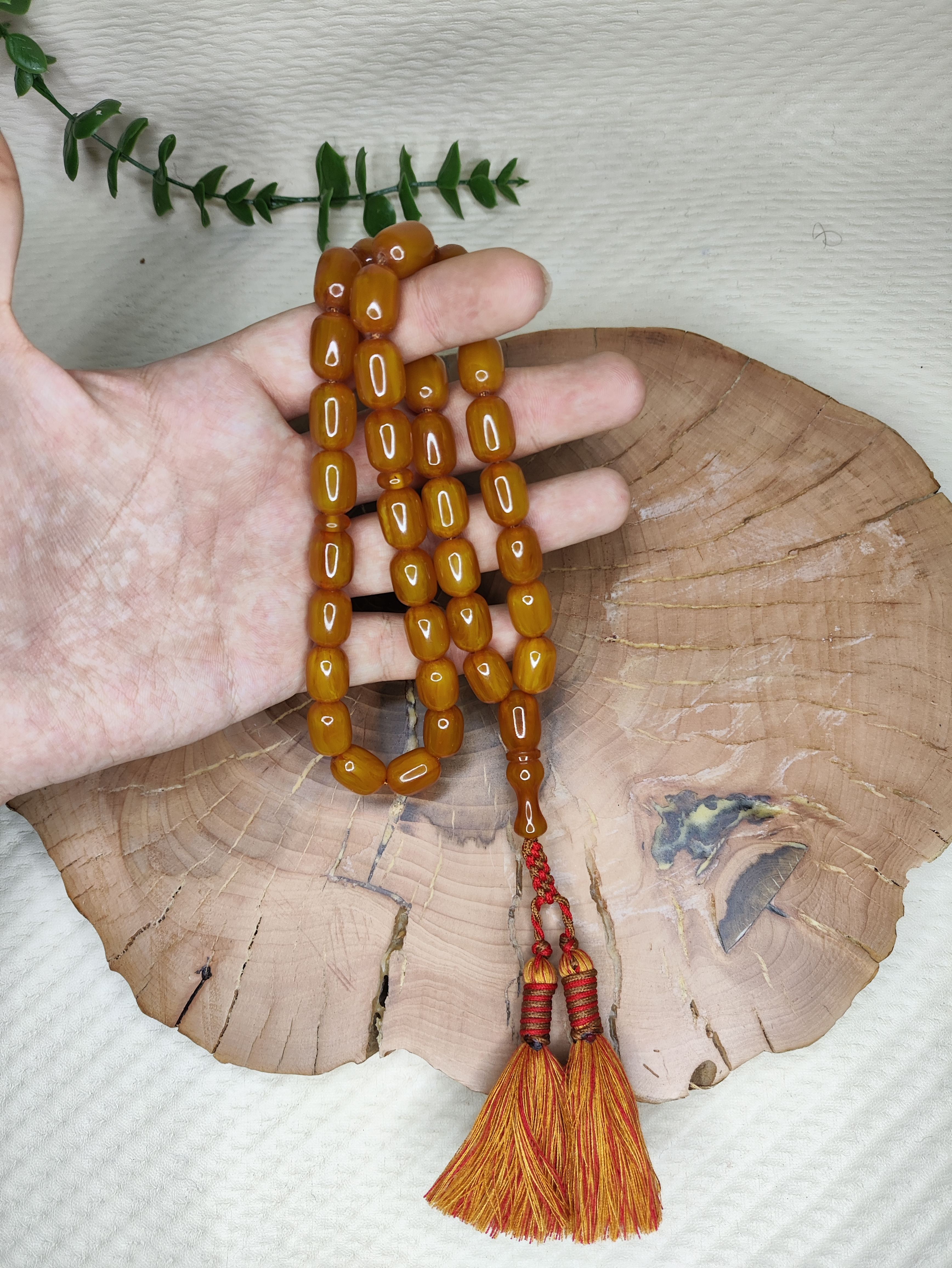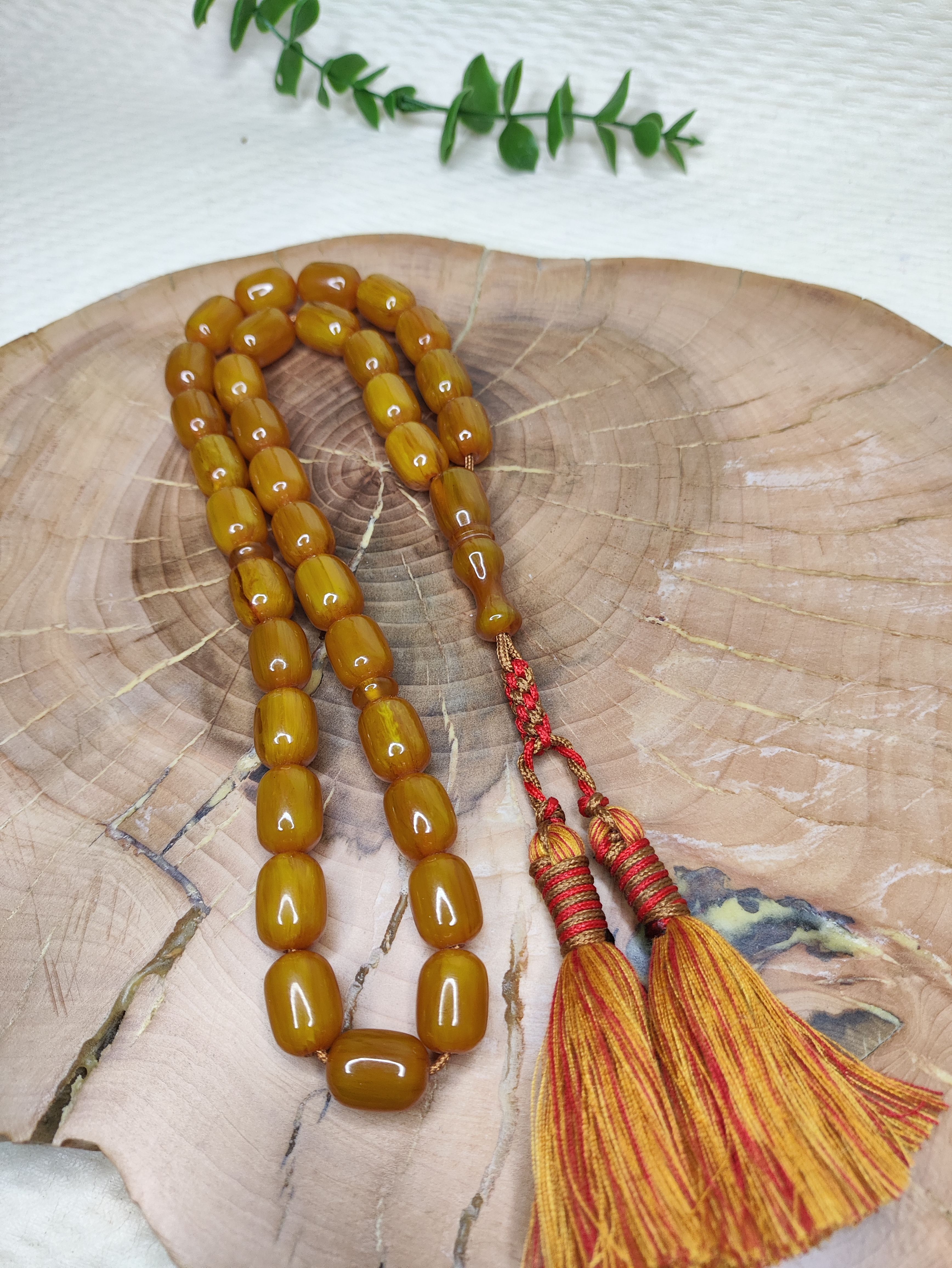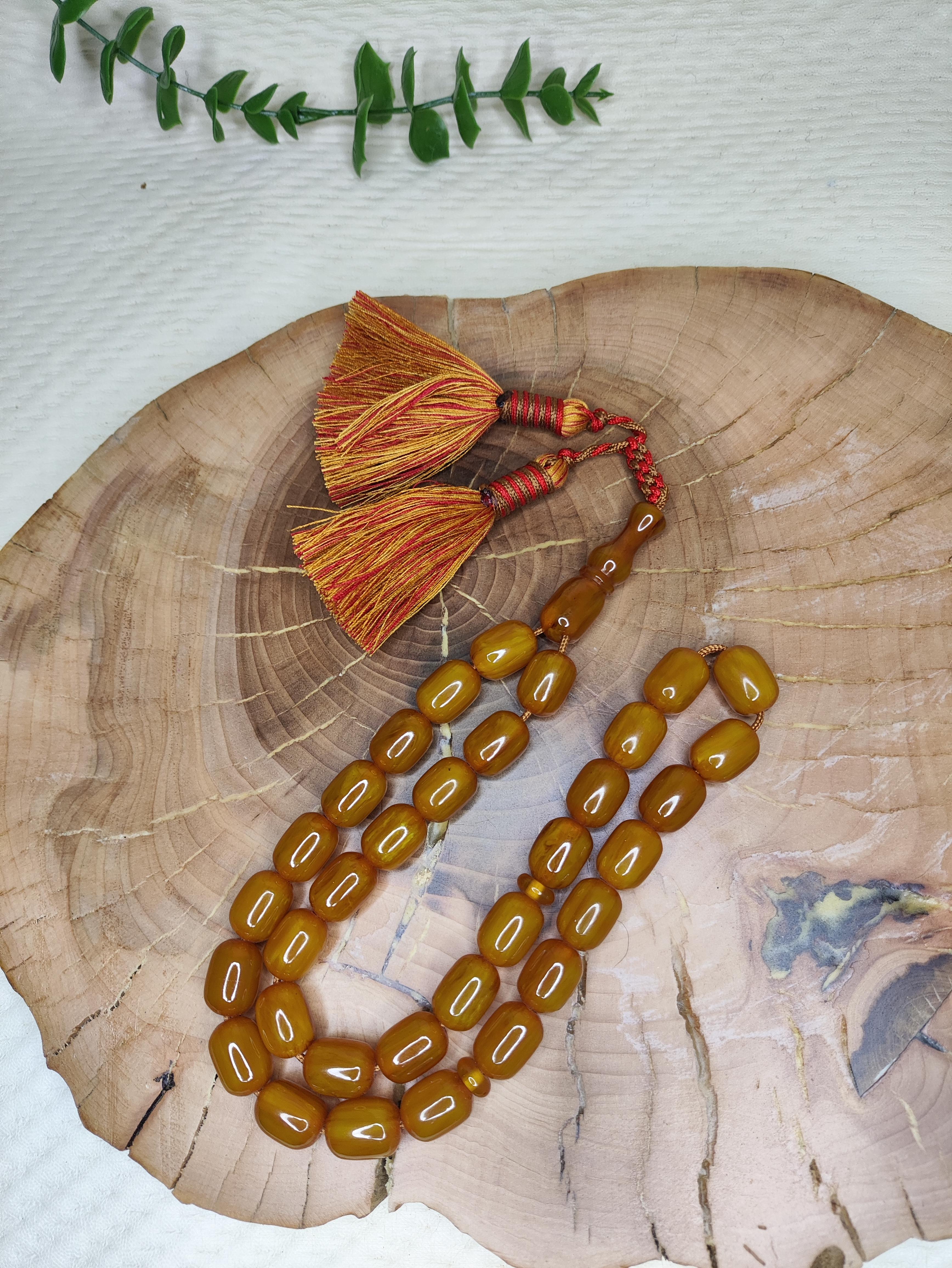تسبیح کهربا 33عددی رنگ یاغبال تراش کپسولی خوشدست