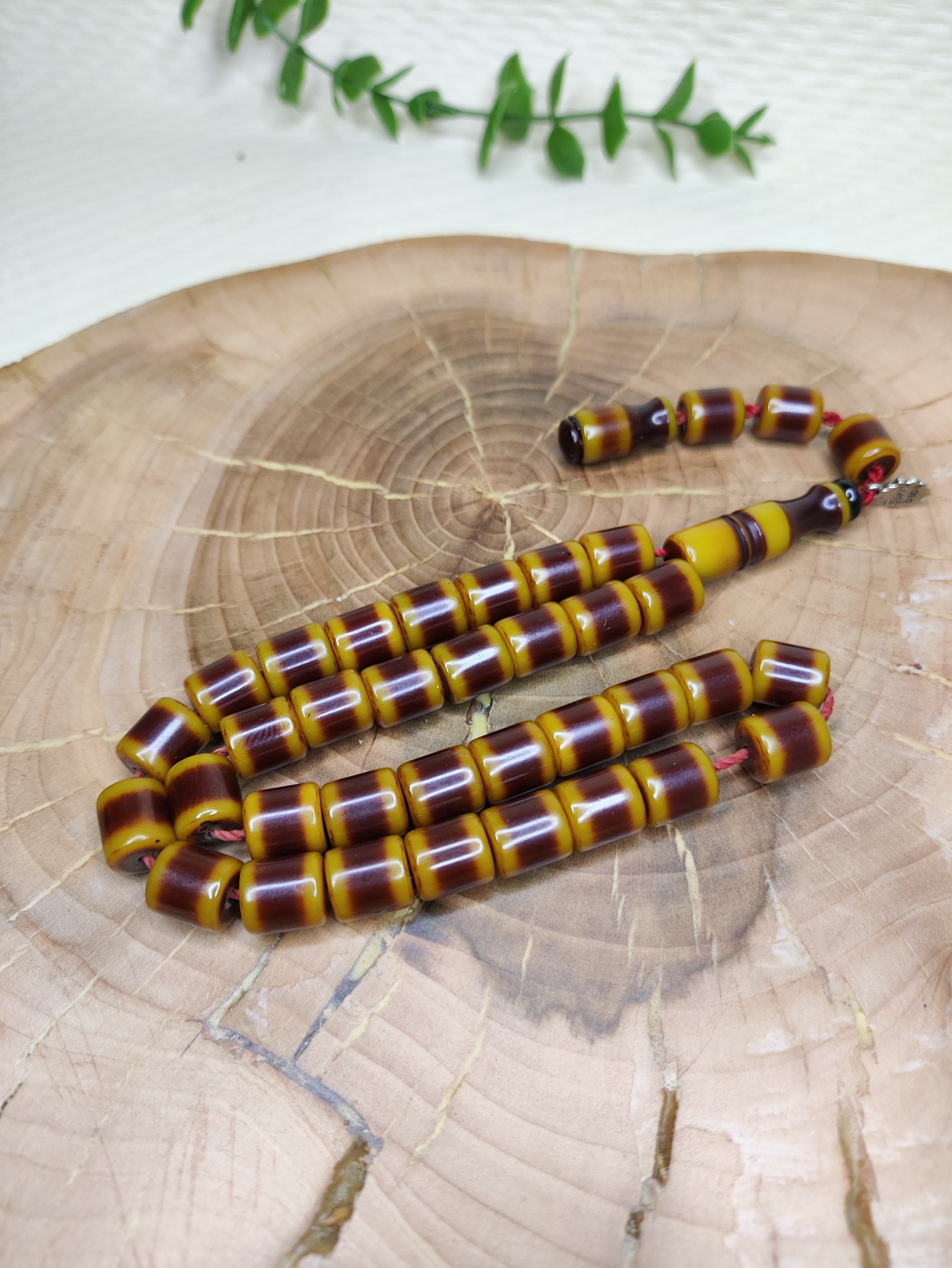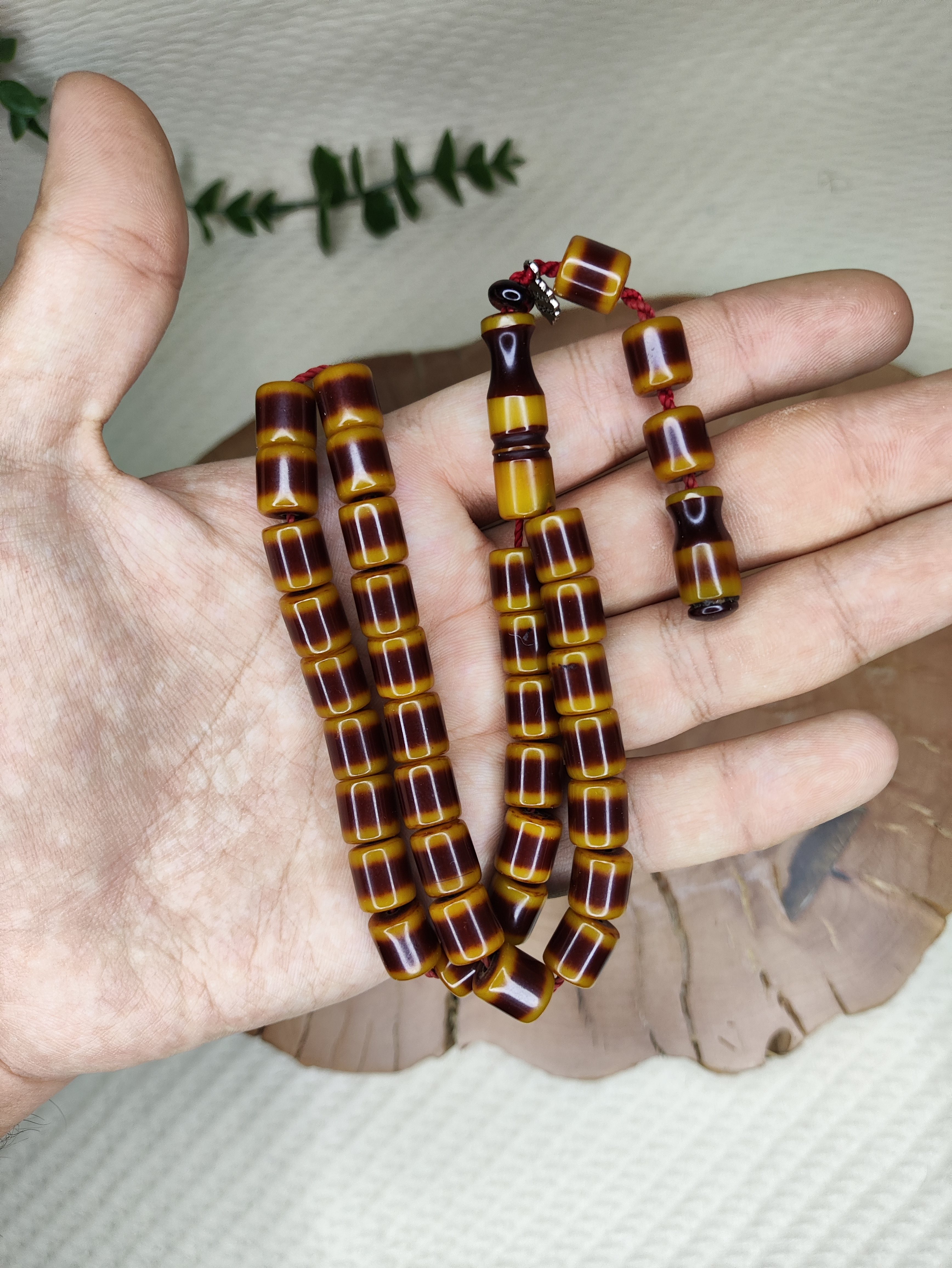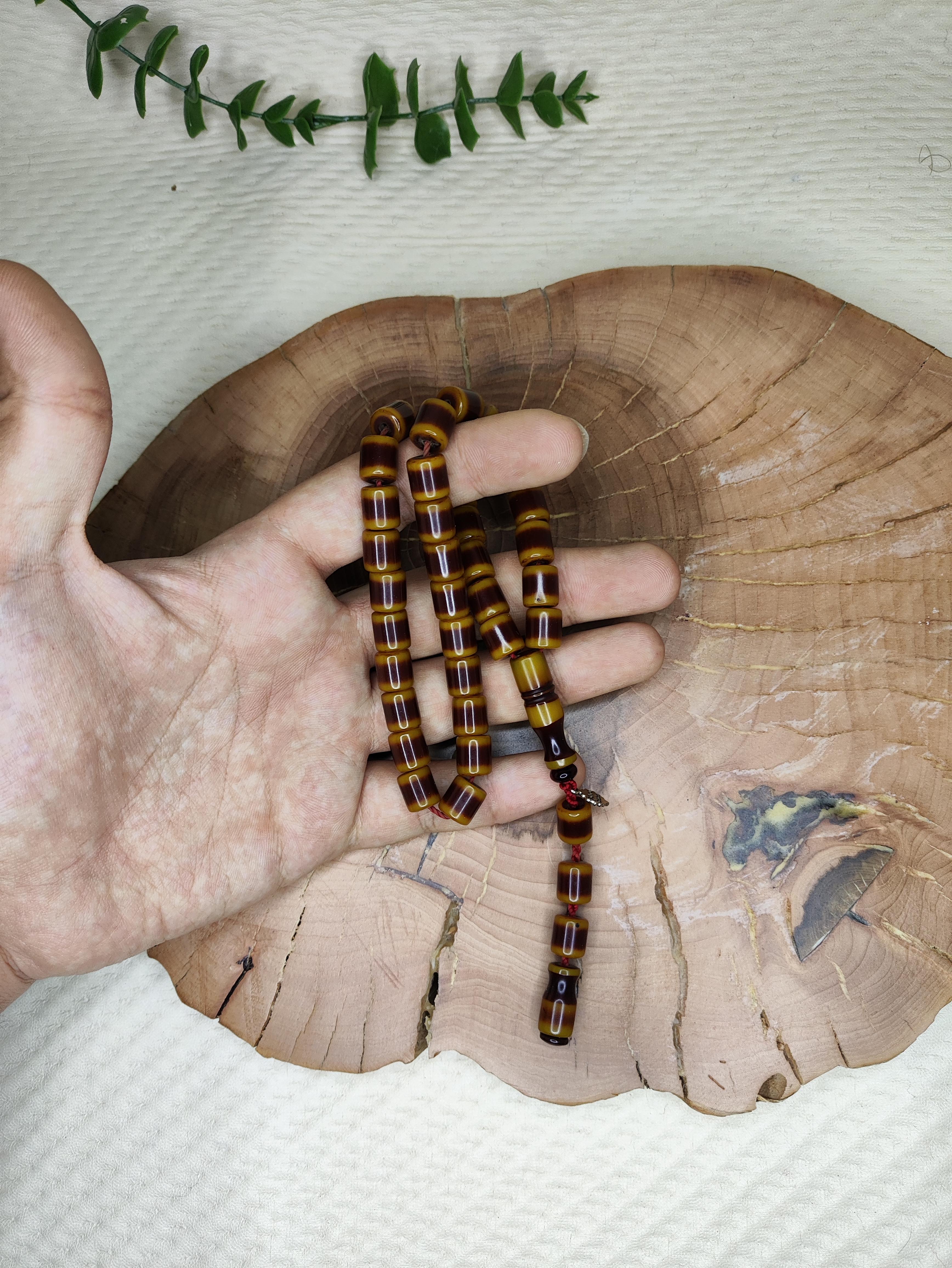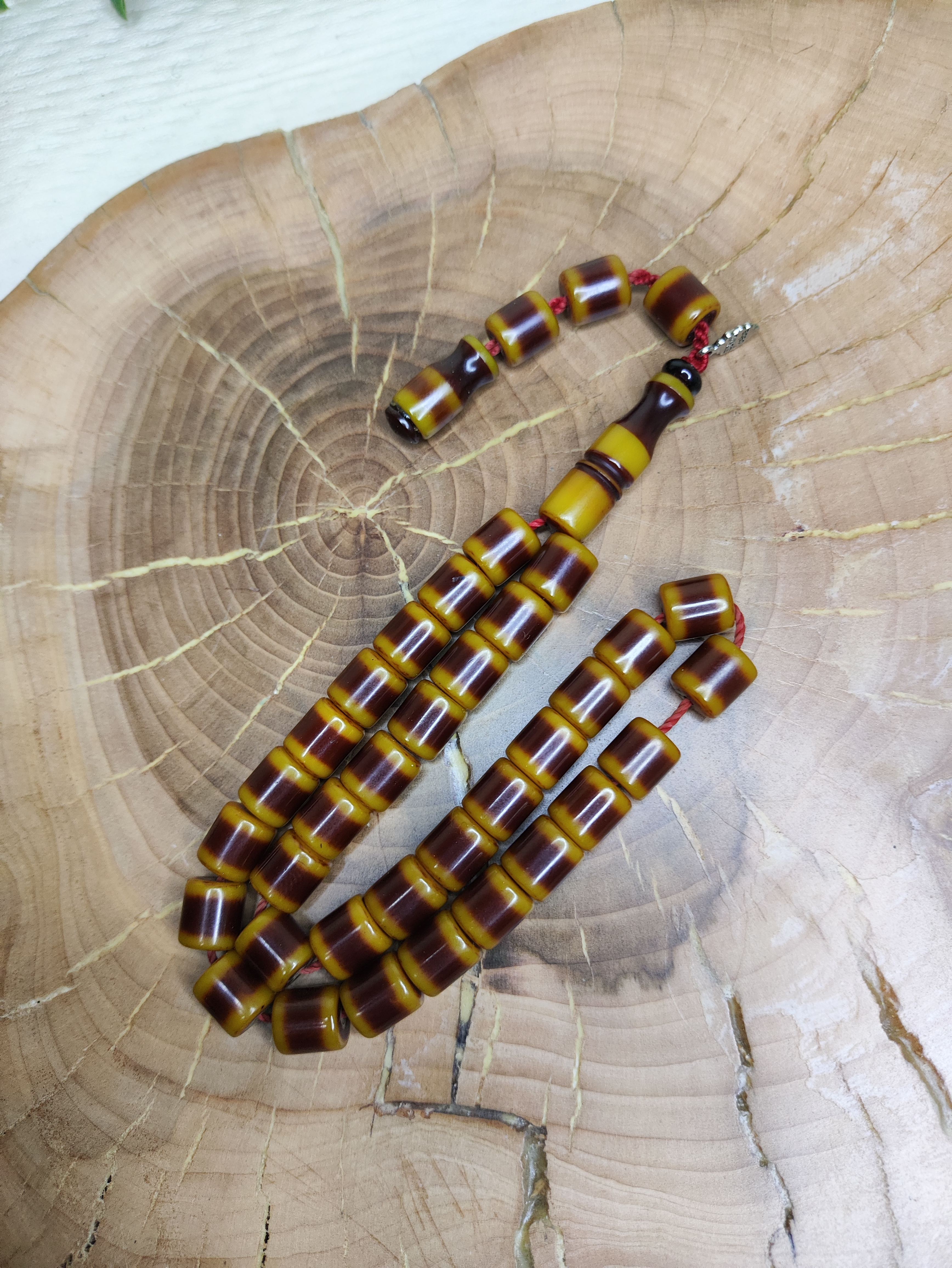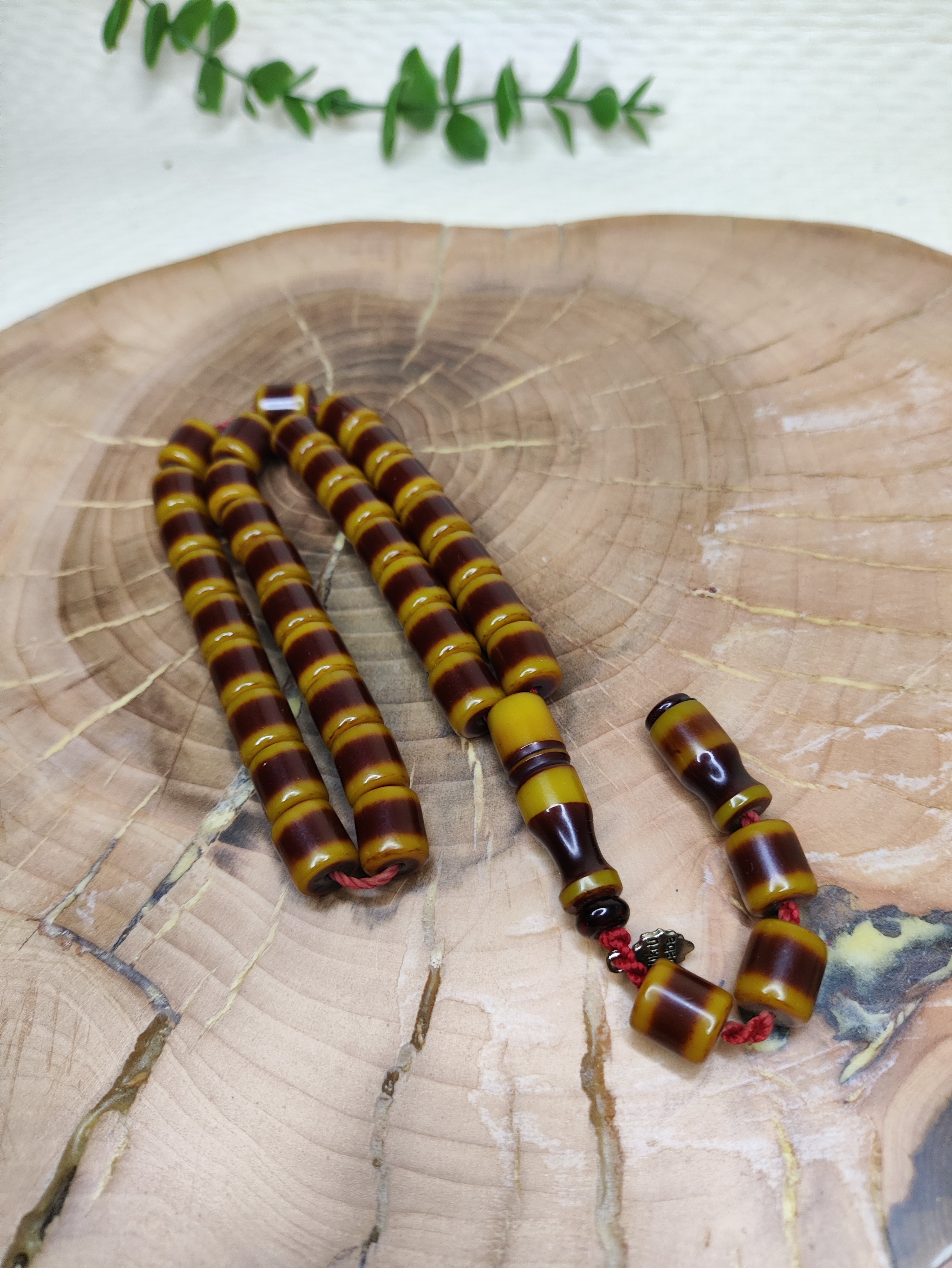 تسبیح کهربا 33عددی دو رنگ تراش کسمه سیستم دار