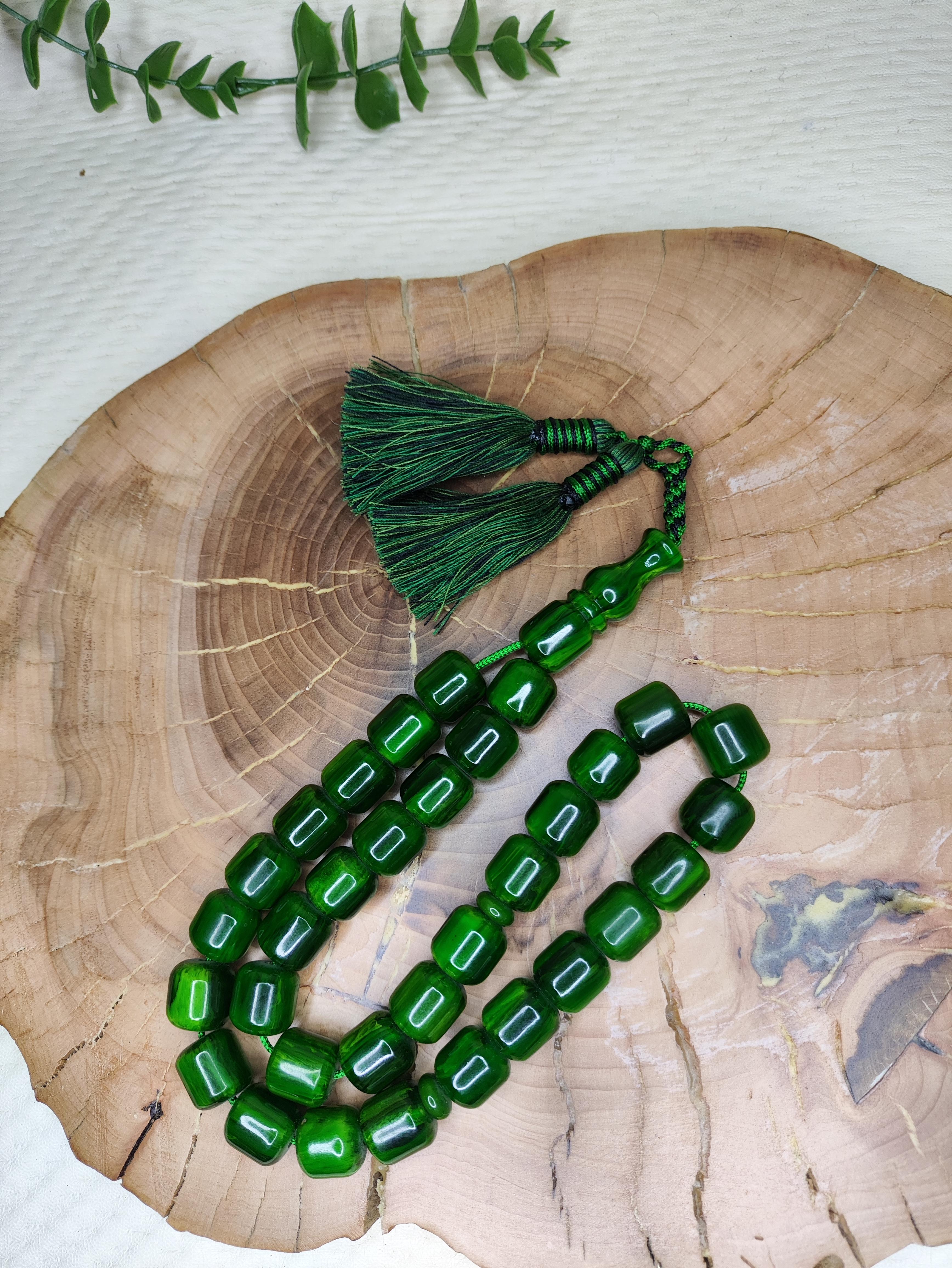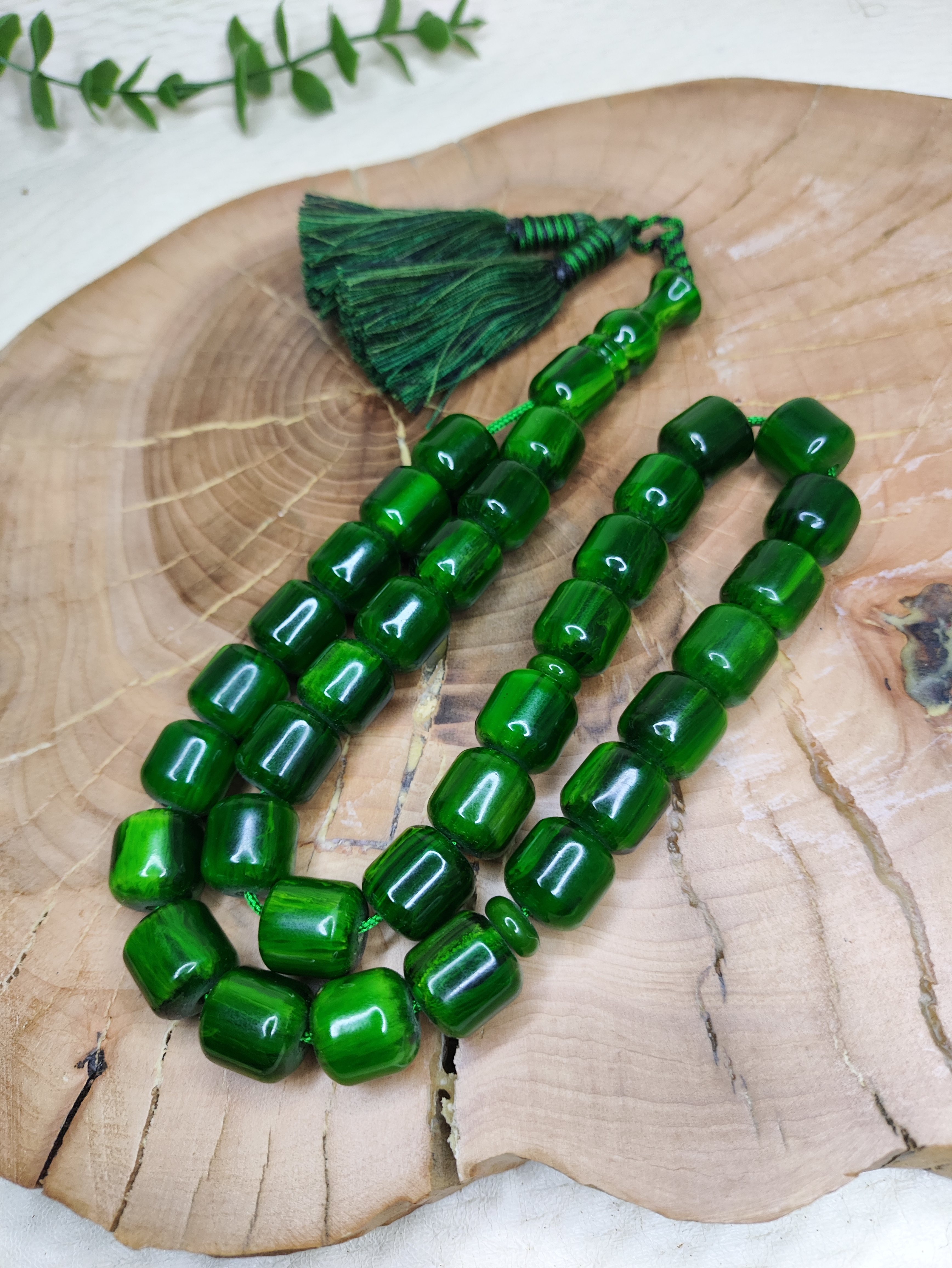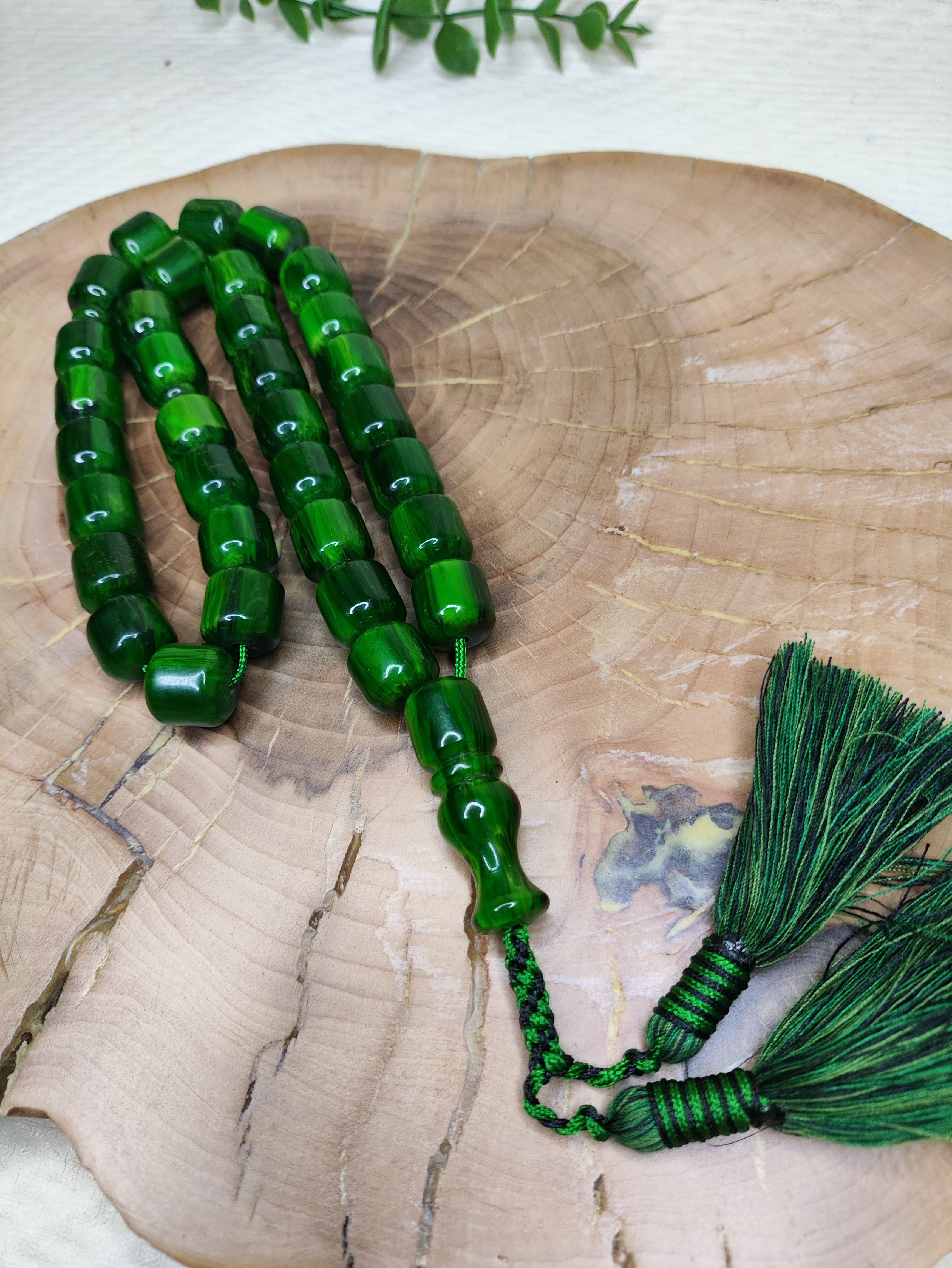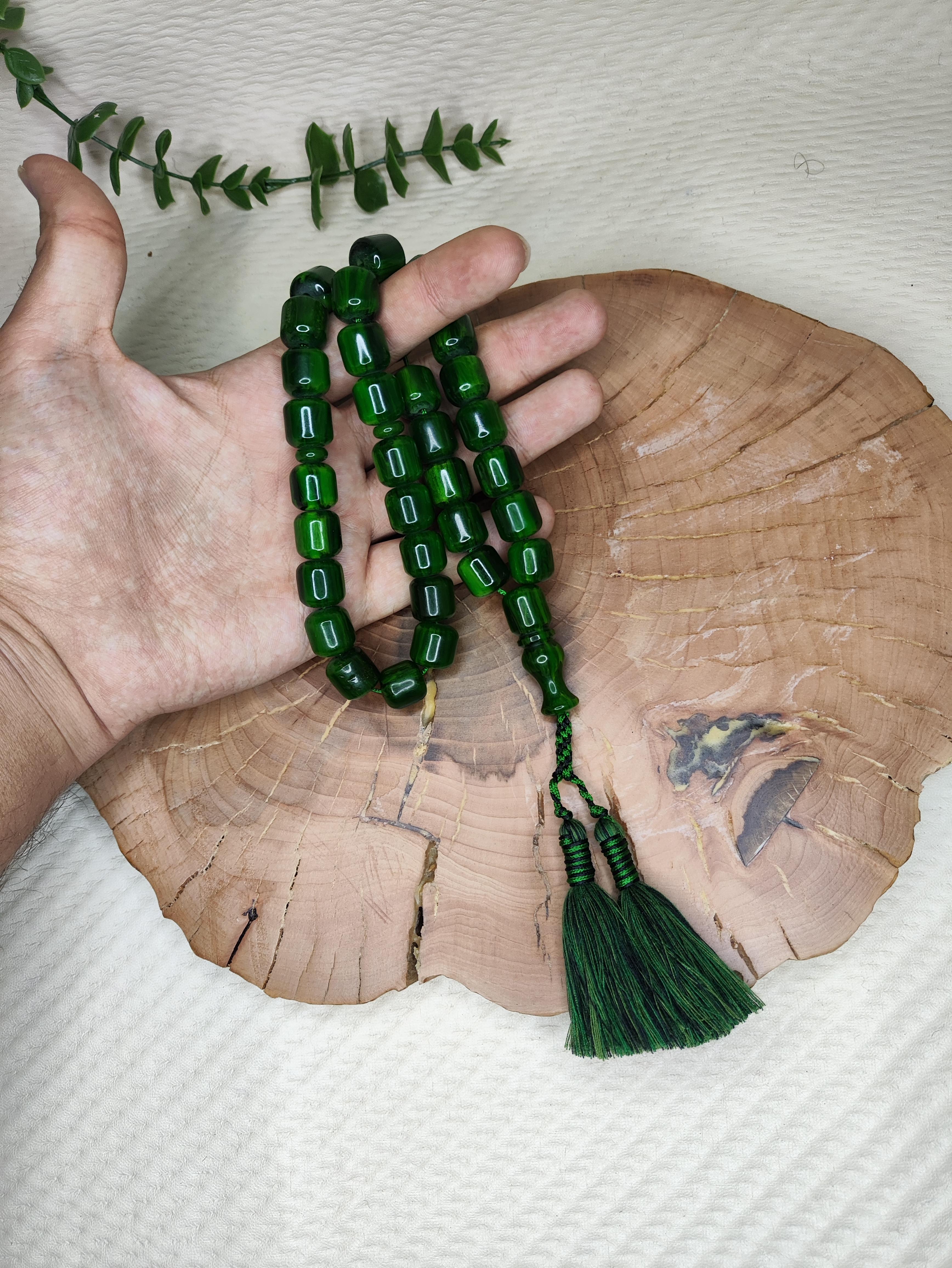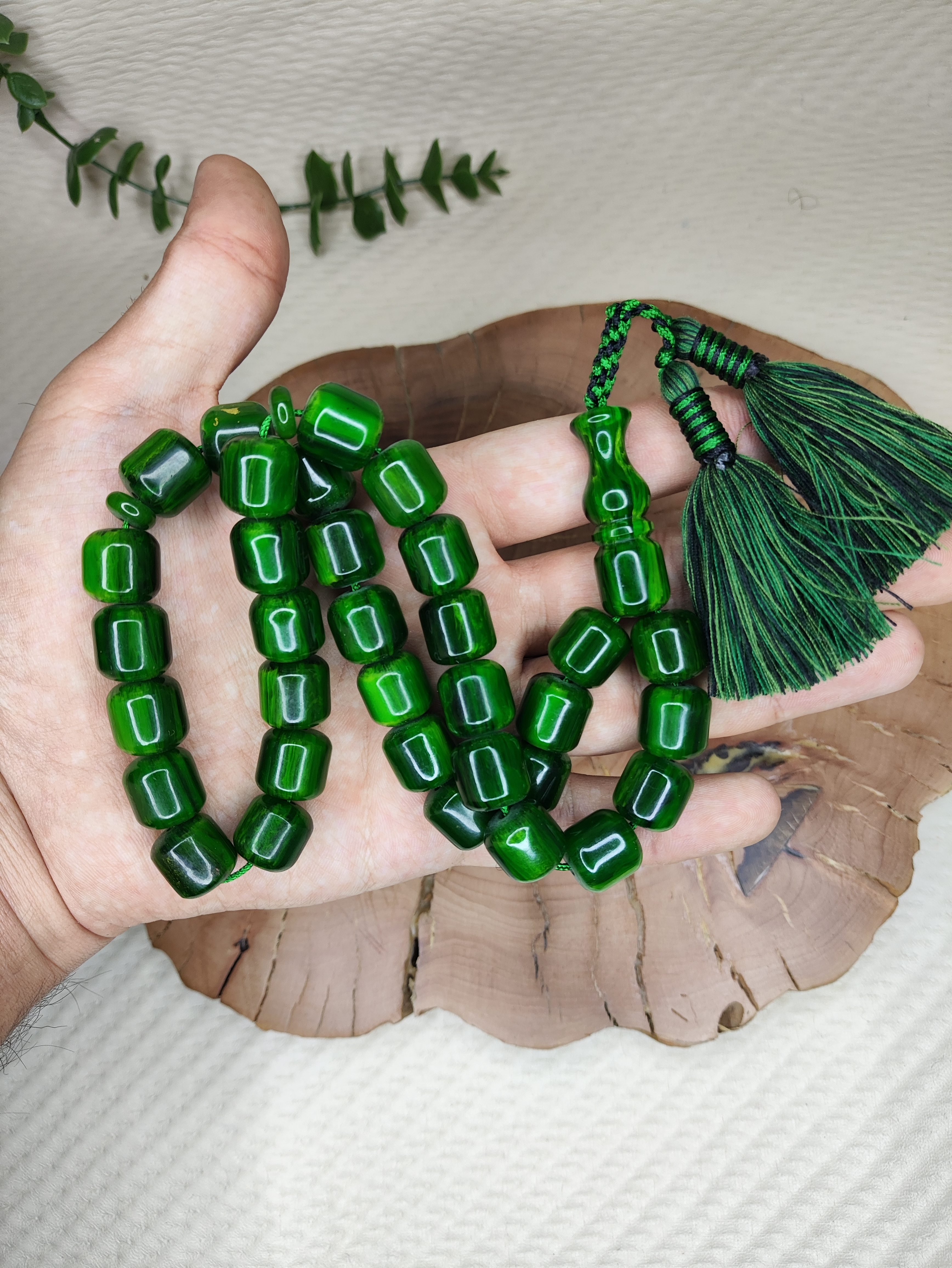 تسبیح کهربا رگه دار 33عددی سبز رنگ زیبا