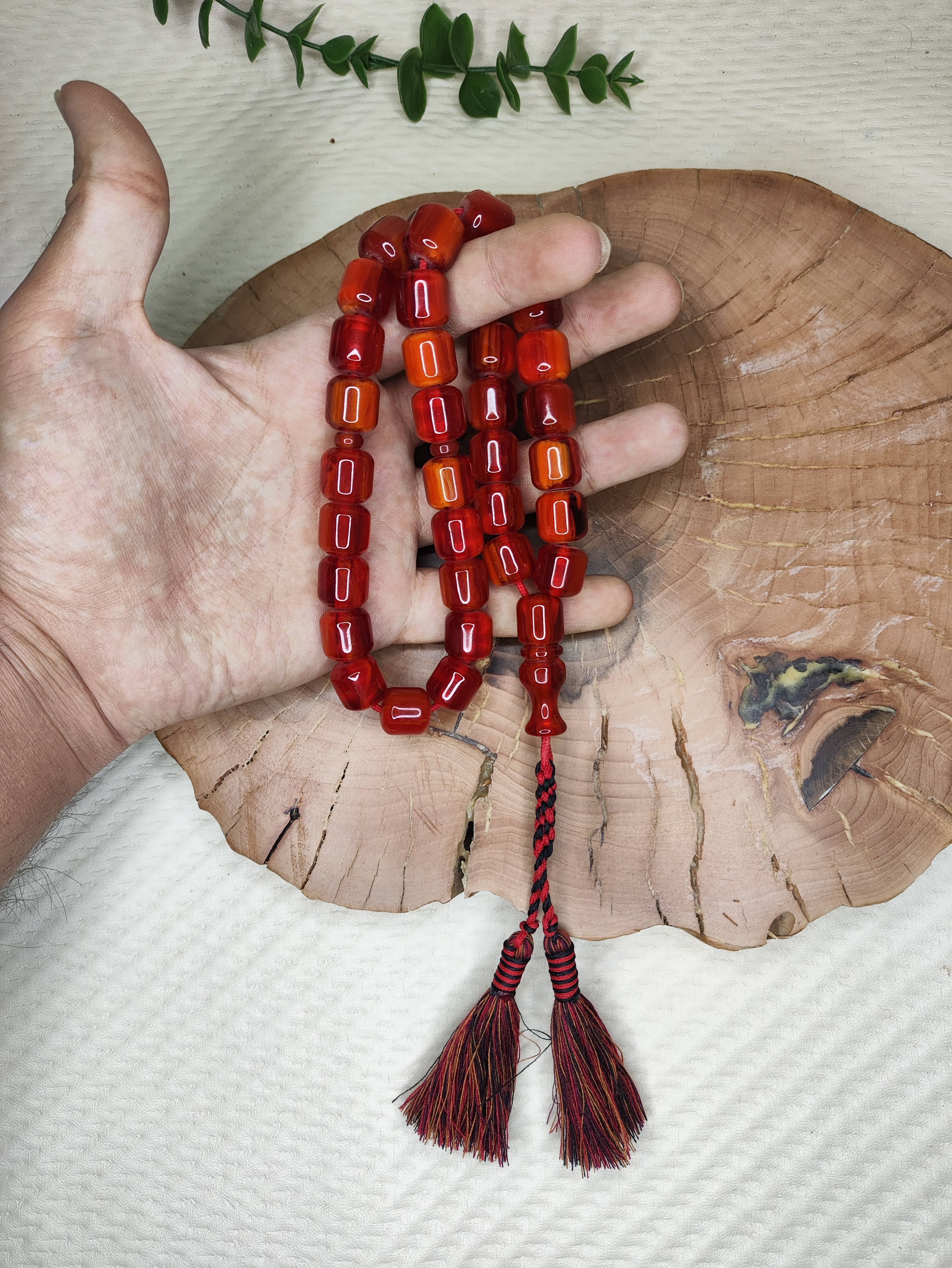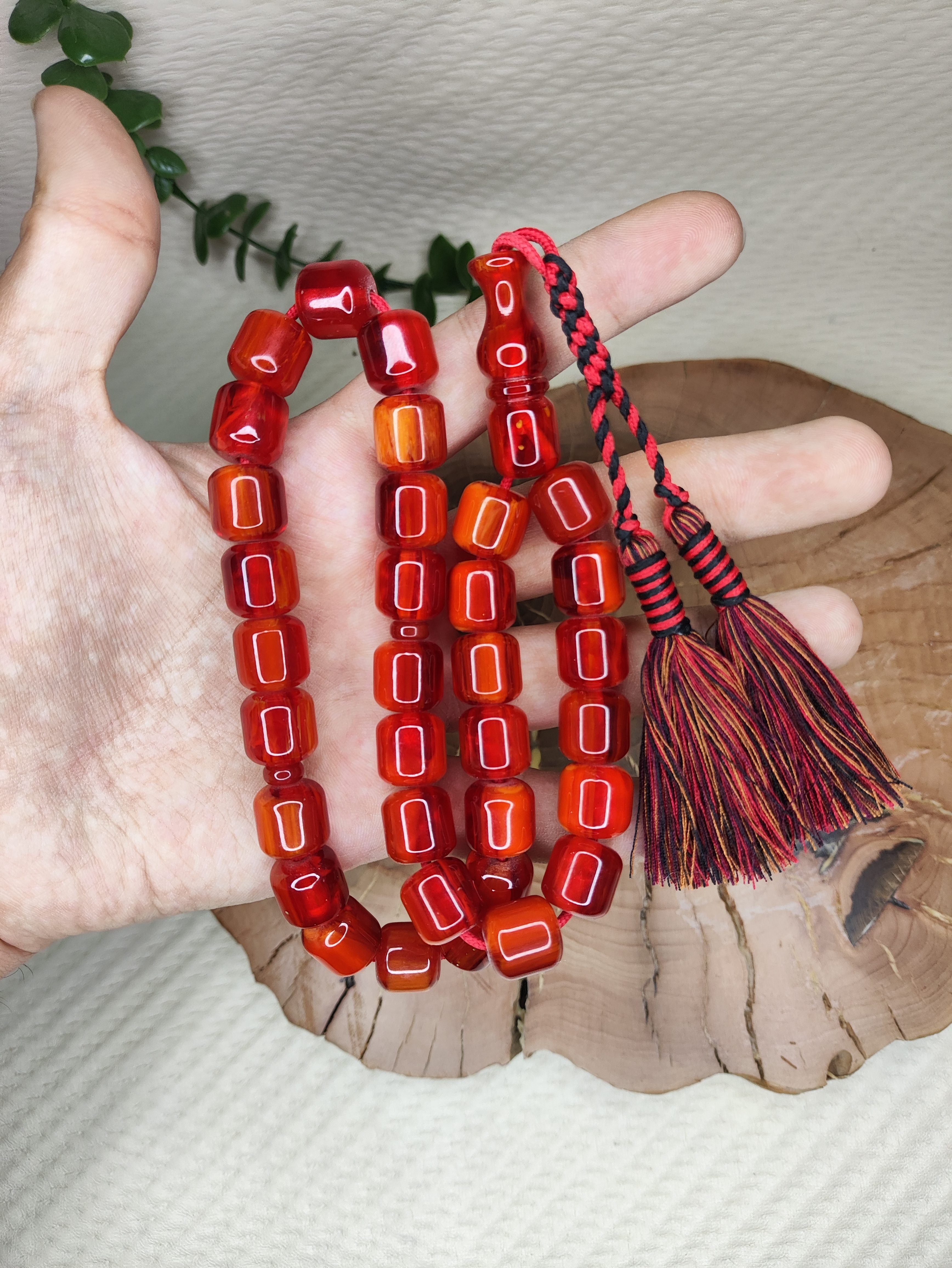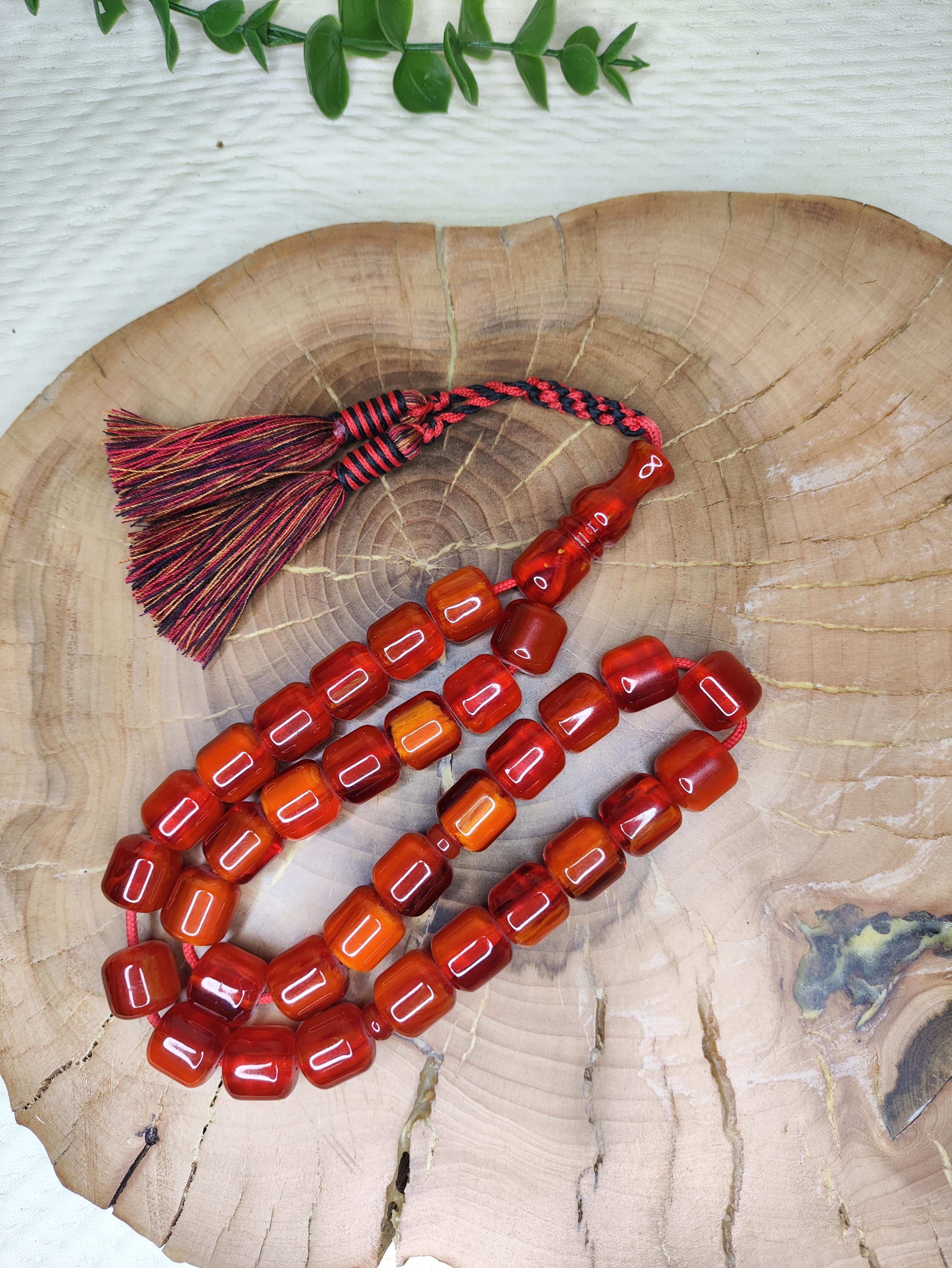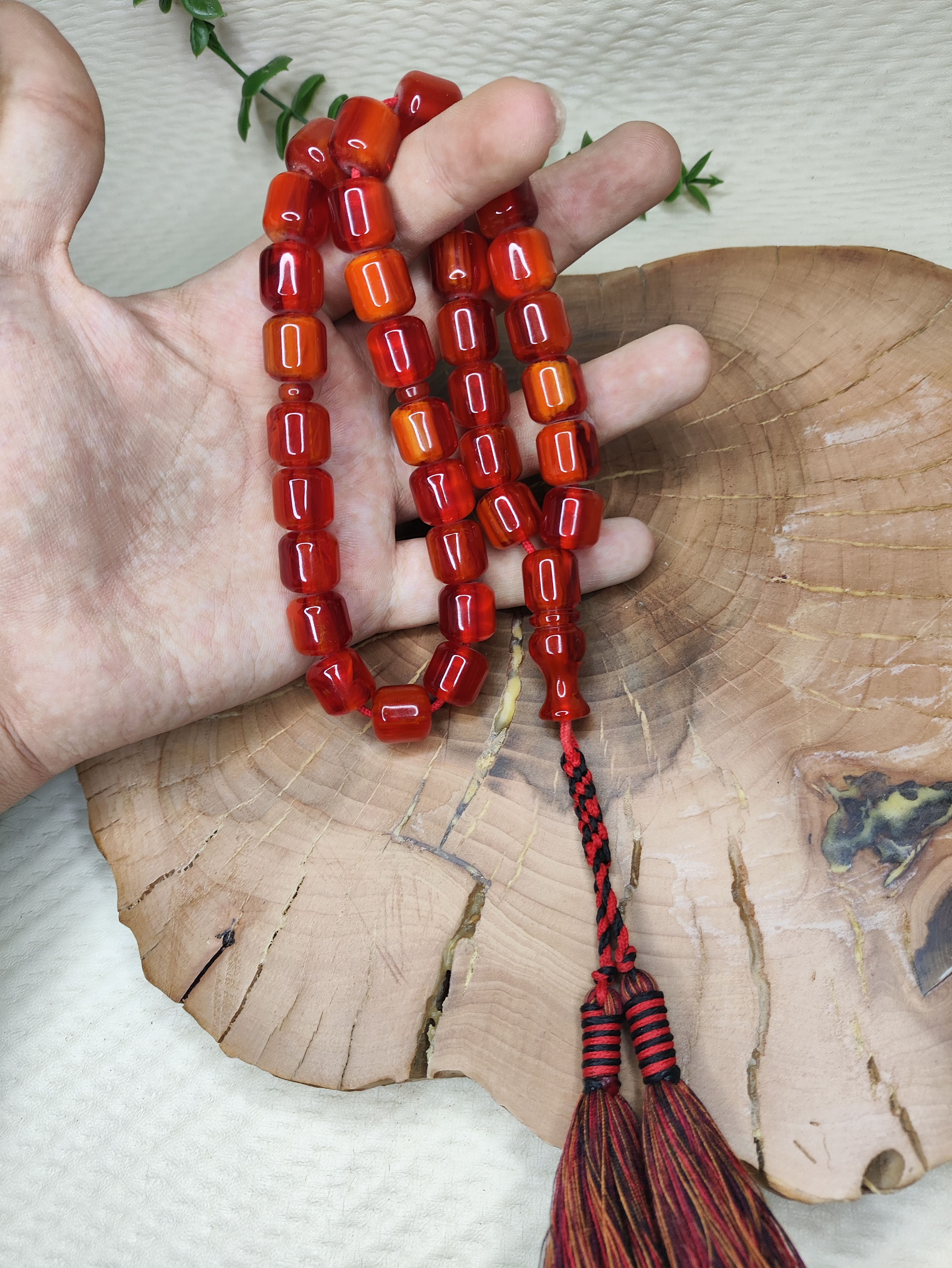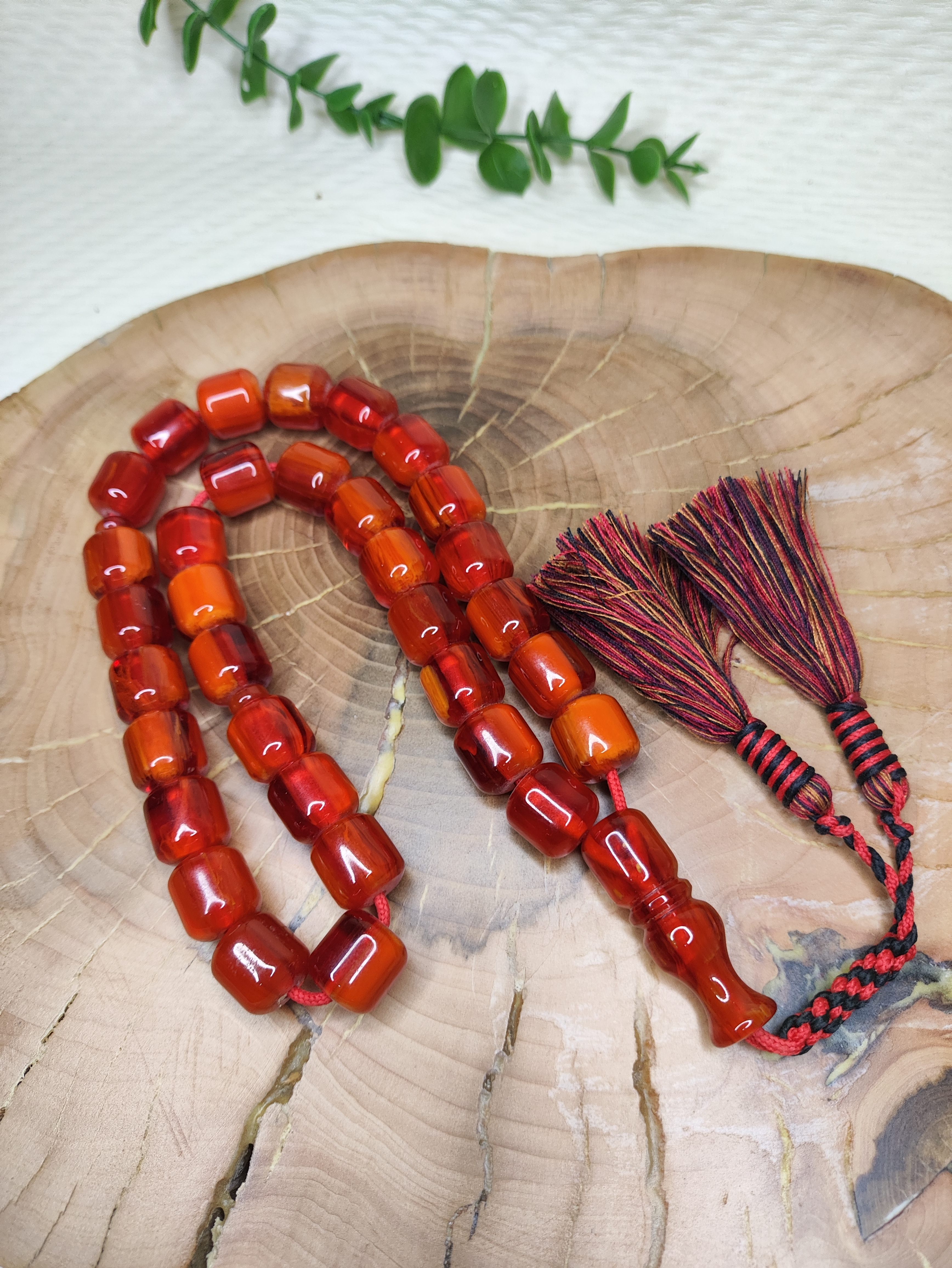 تسبیح کهربا رگه دار 33عددی قرمز خوشرنگ