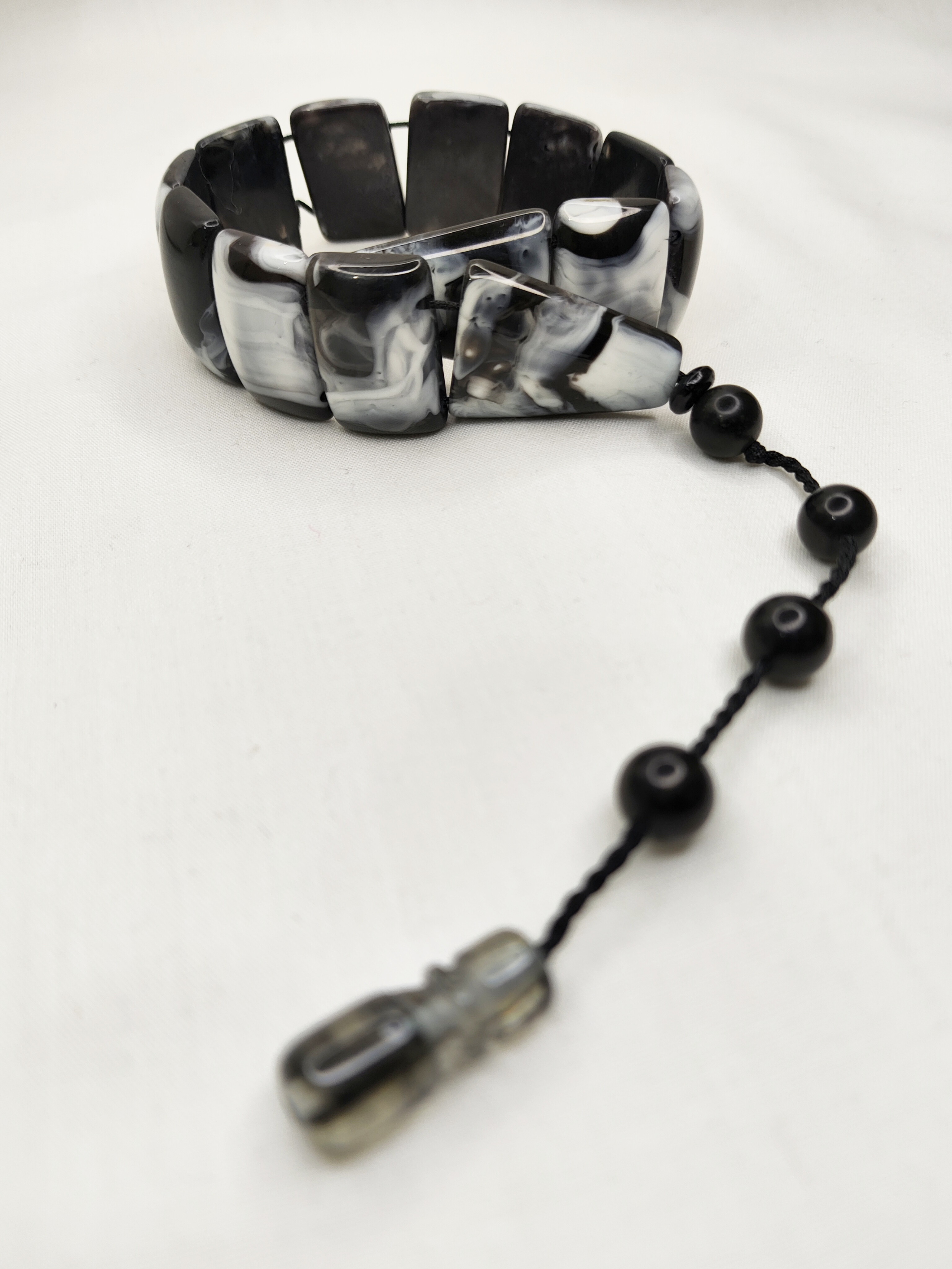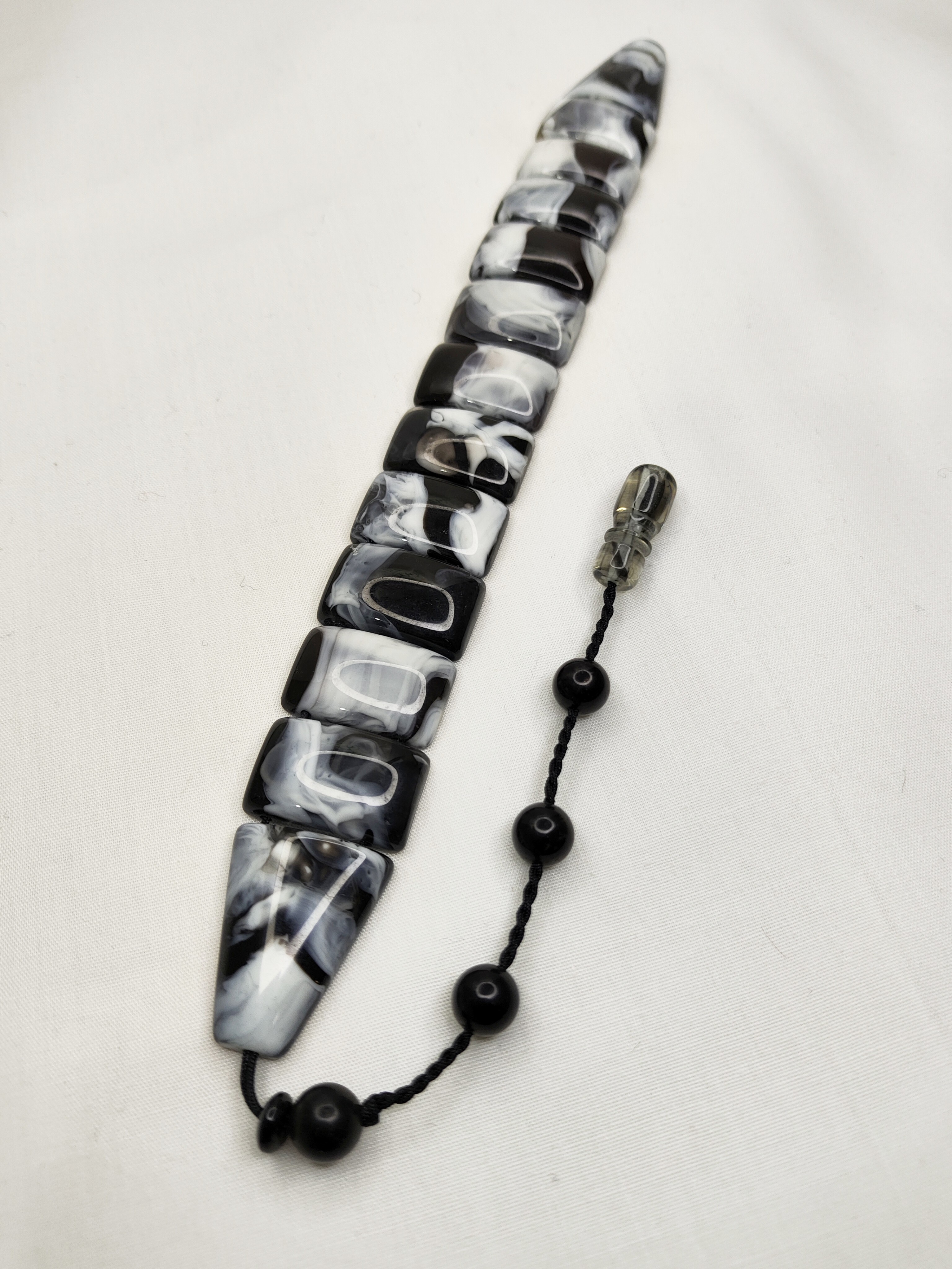 تسبیح زازا کهربا ابرو بادی خوشدست و زیبا رنگ سفید وسیاه و دنباله (سیستم دار)