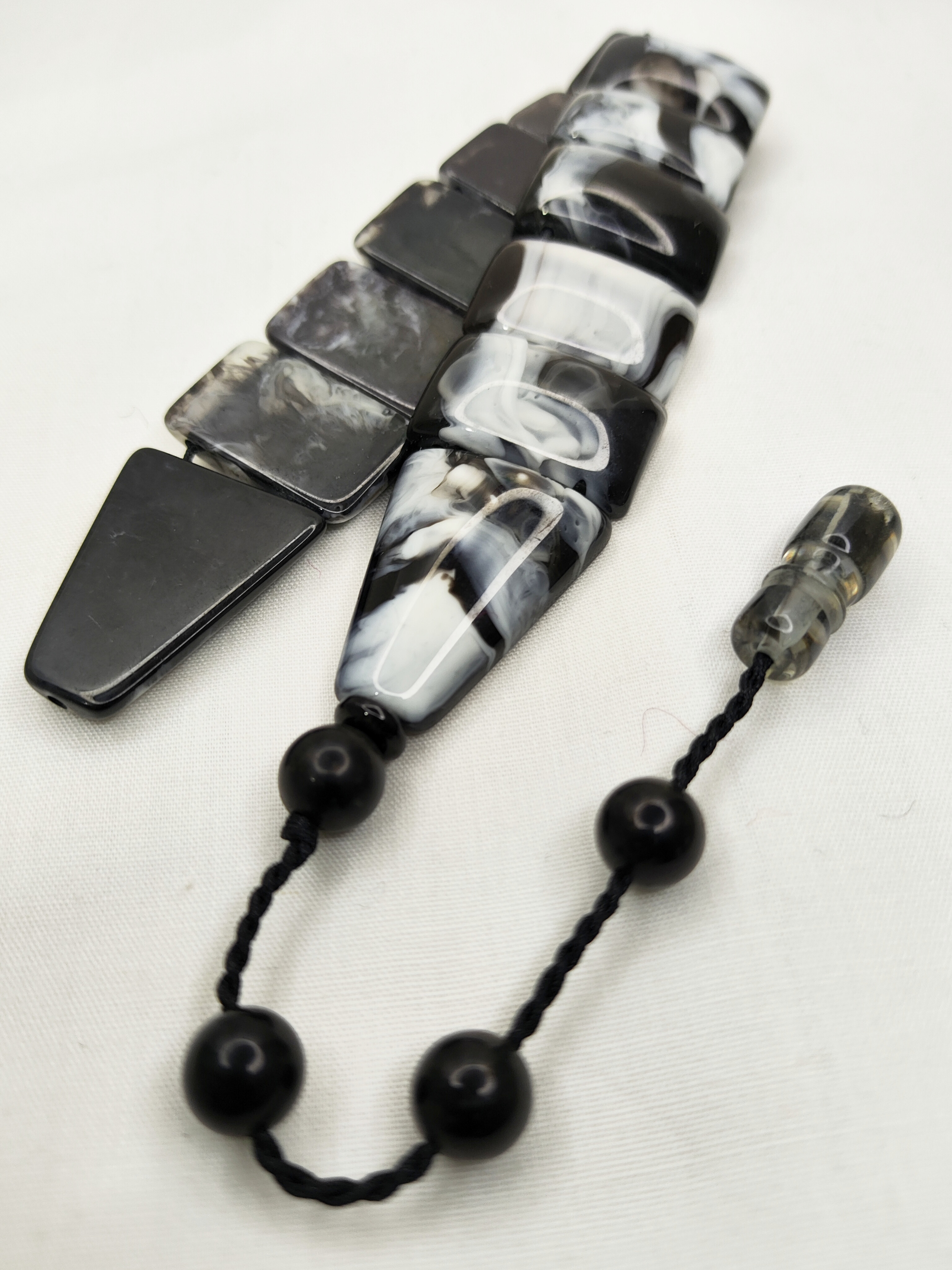 تسبیح زازا کهربا ابرو بادی رنگ سیاه و سفید زیبا