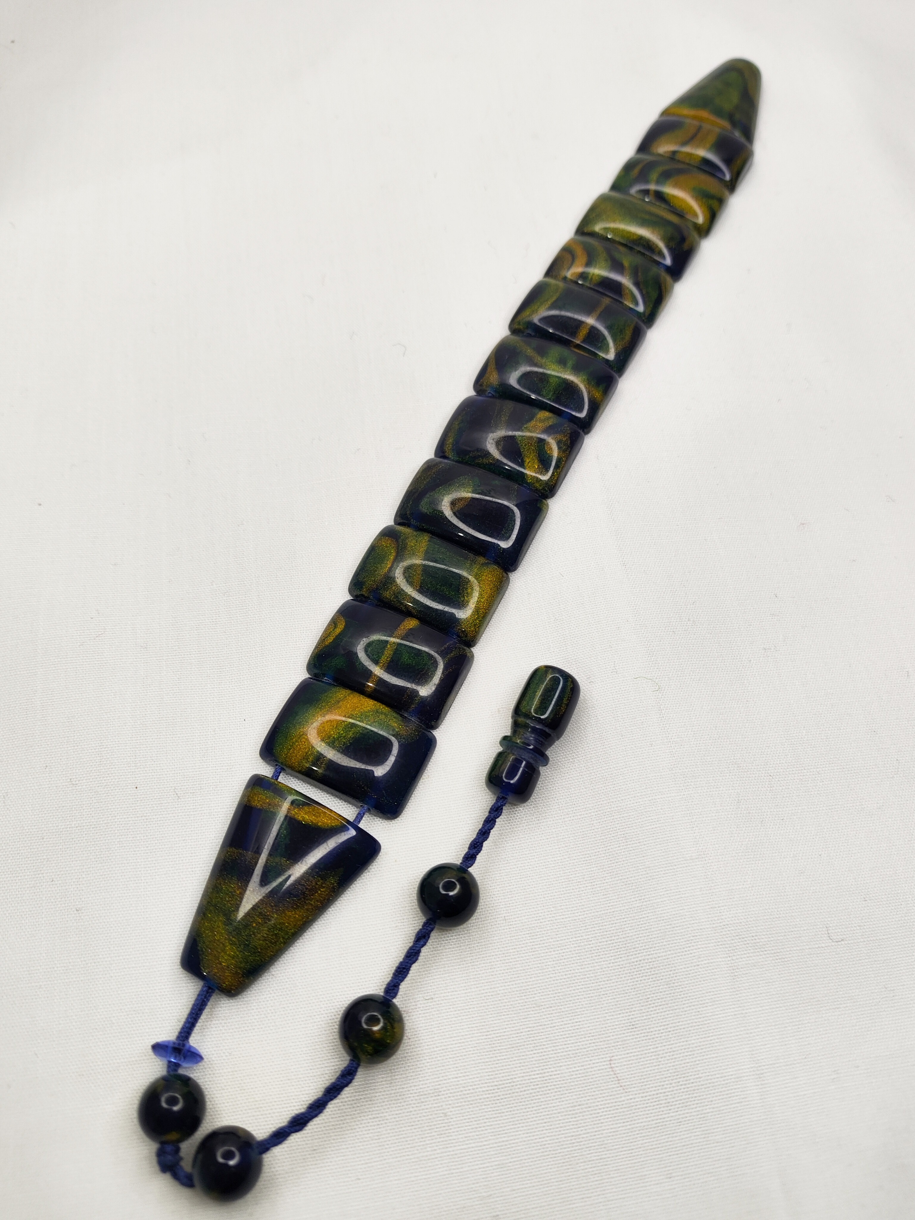 دستهبندی: تسبیح زازاجنس: کهربا رگه دار زرافشانتعداد: 11عددینوع تراش: تراش زازا ترکیه ایطول تسبیح: 22سانتسایز مهره : 22در14میلوزن : 25گرمنمایش بیشتر