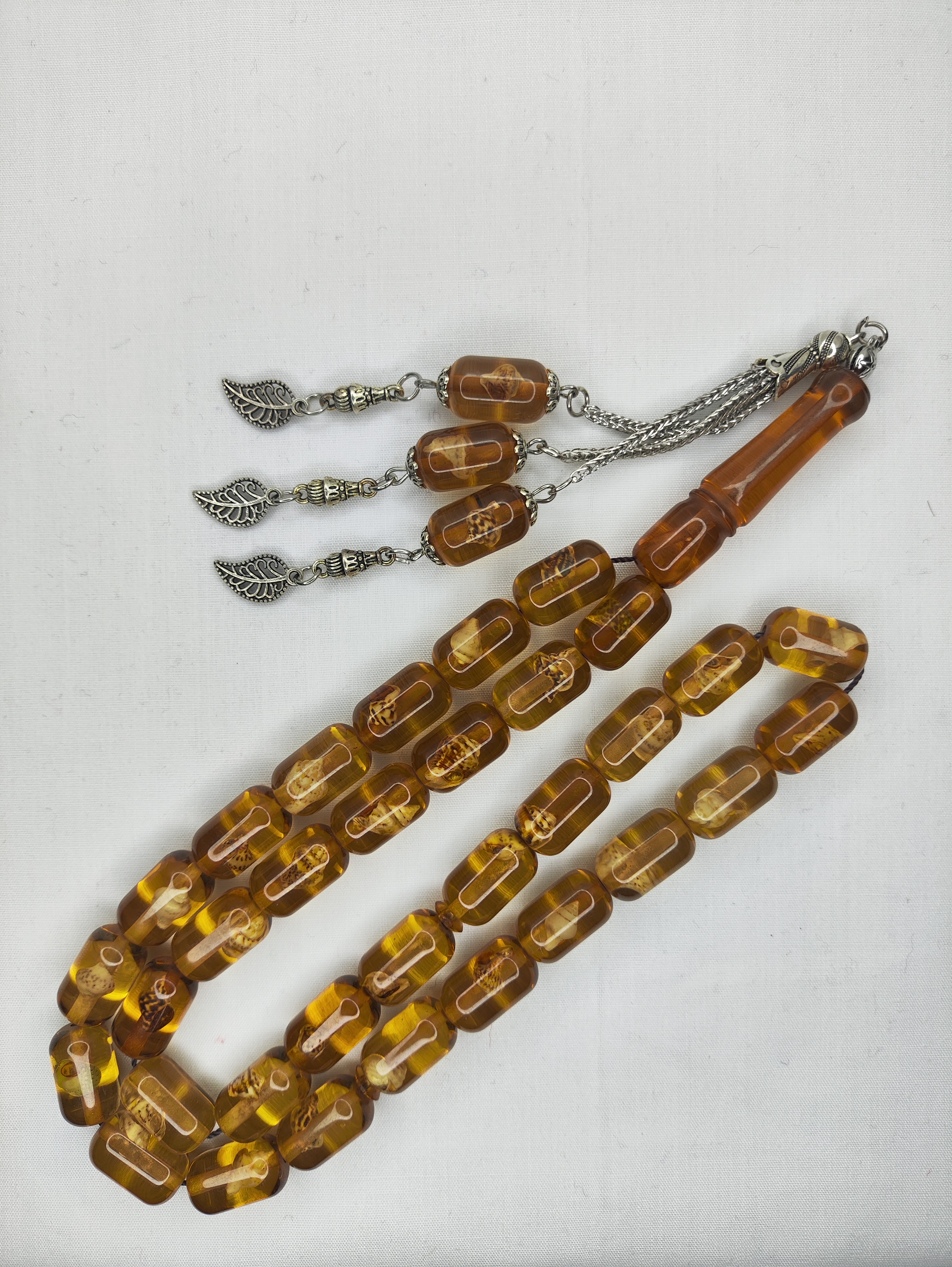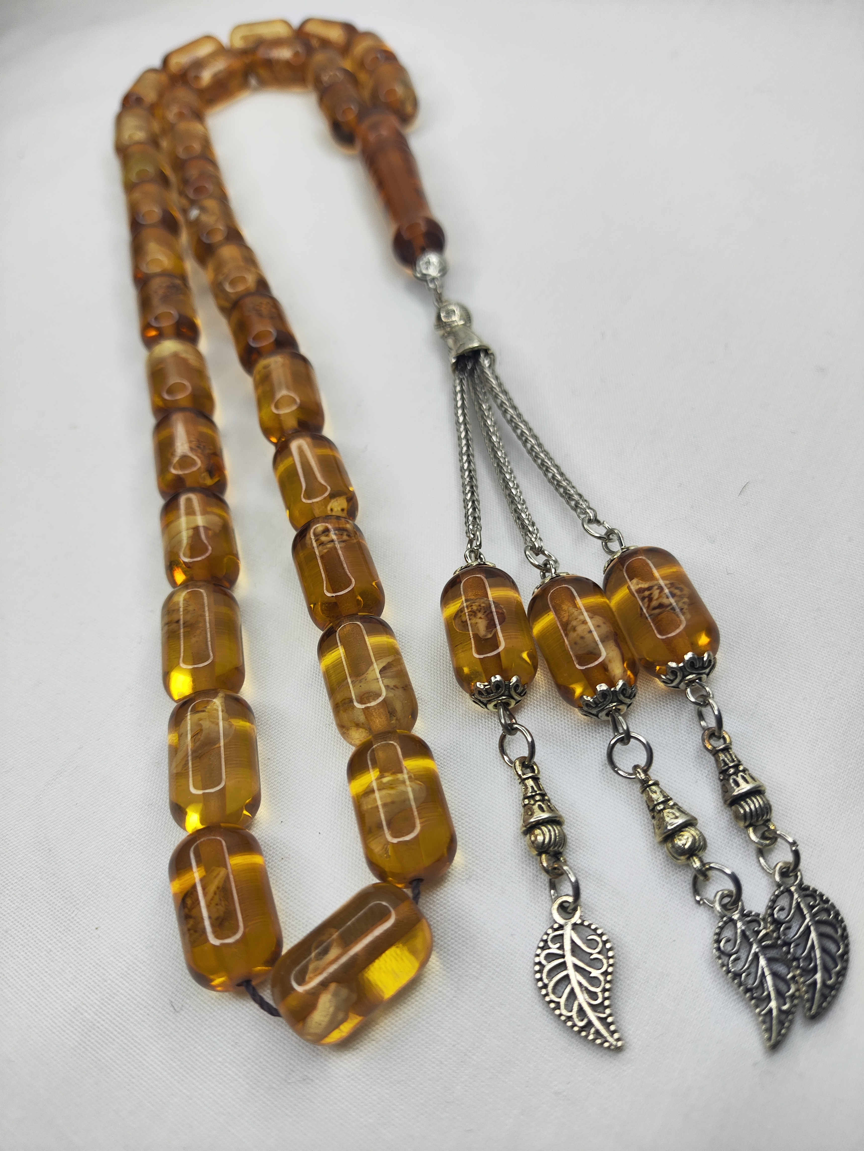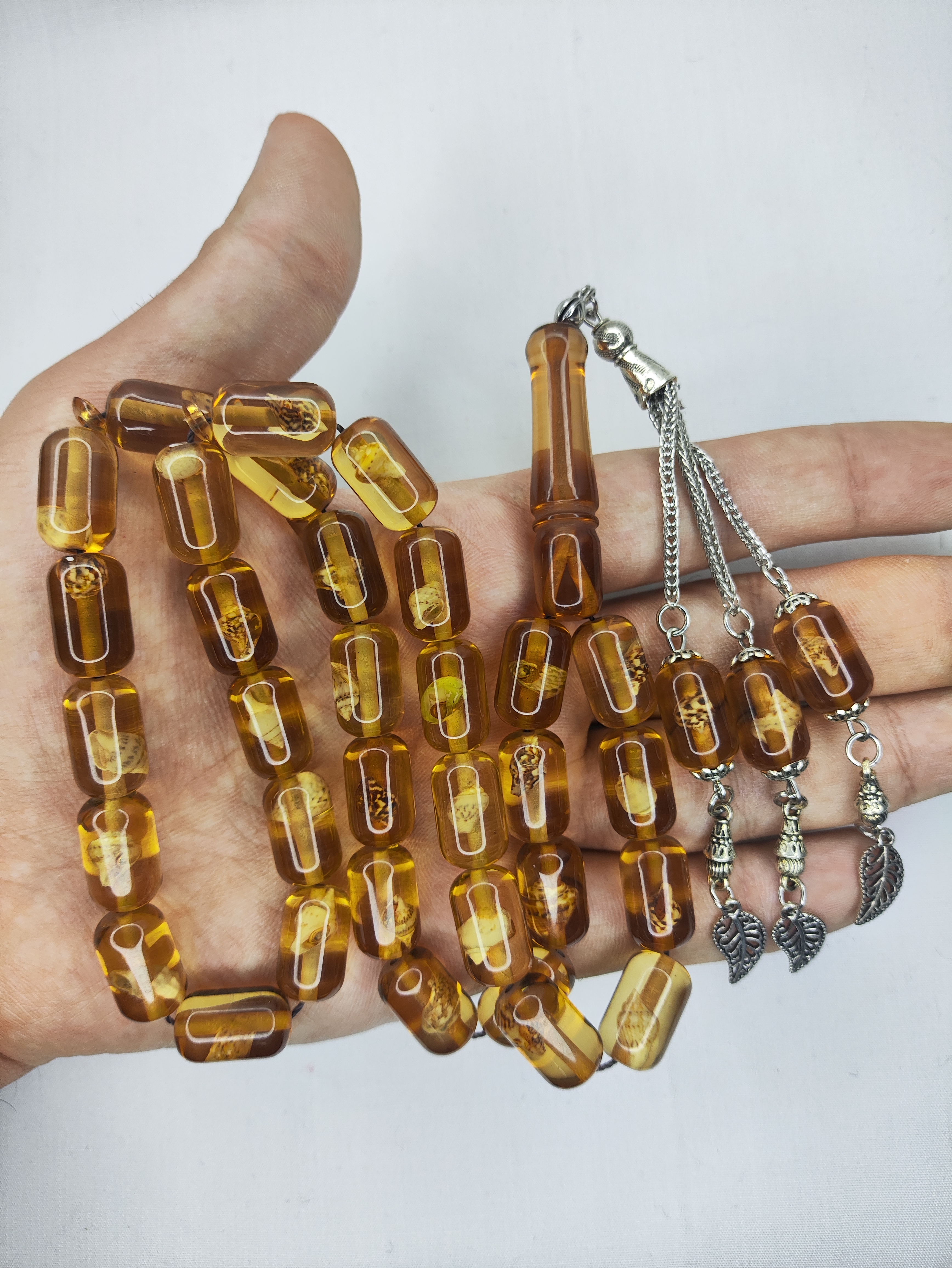 تسبیح کهربا حشره دار (صدف دار) 33عددی تراش کپسولی خوشدست و زیبا همراه سرتسبیح فلزی شکیل تقدیمتون میشه 🌹