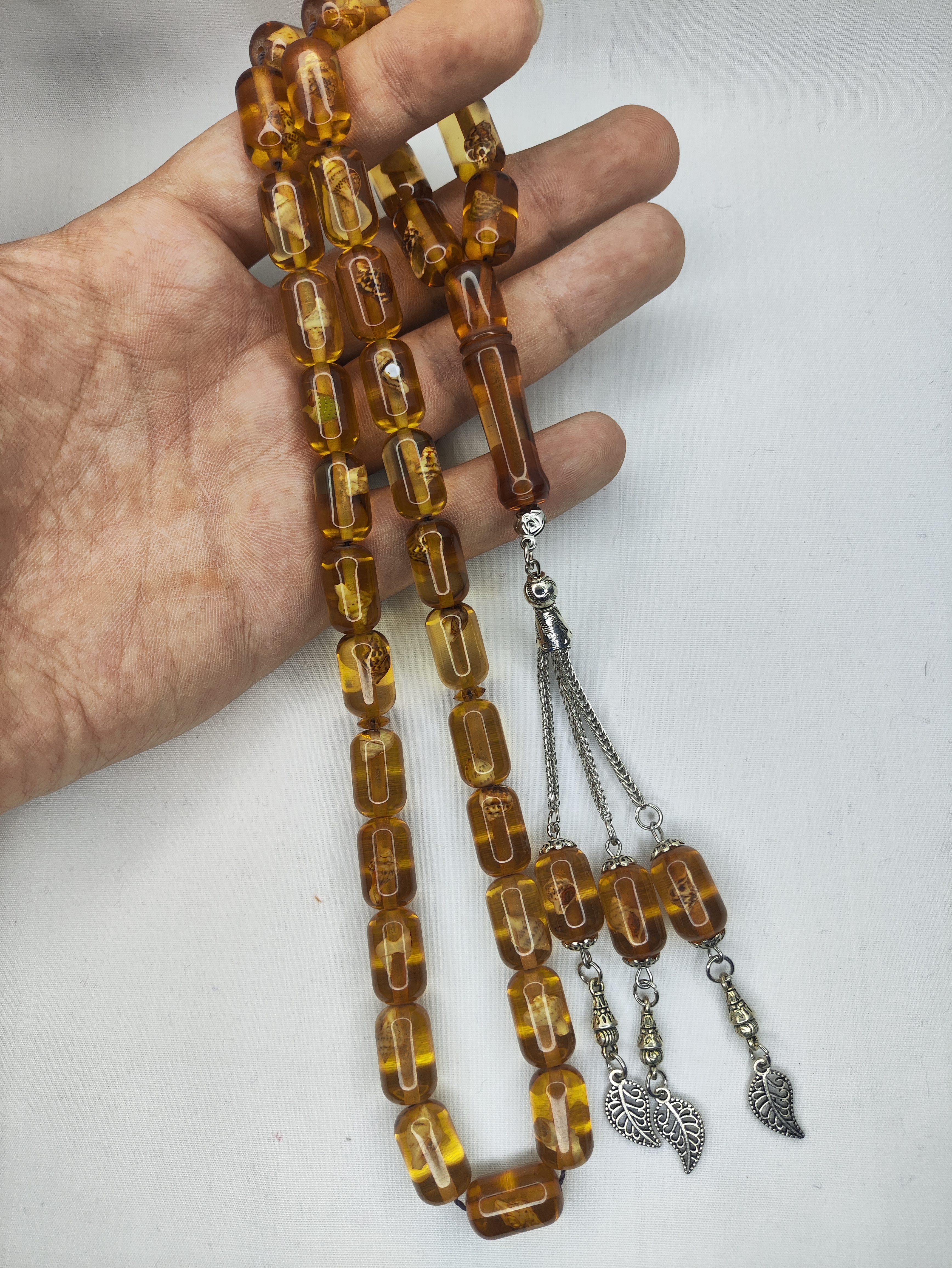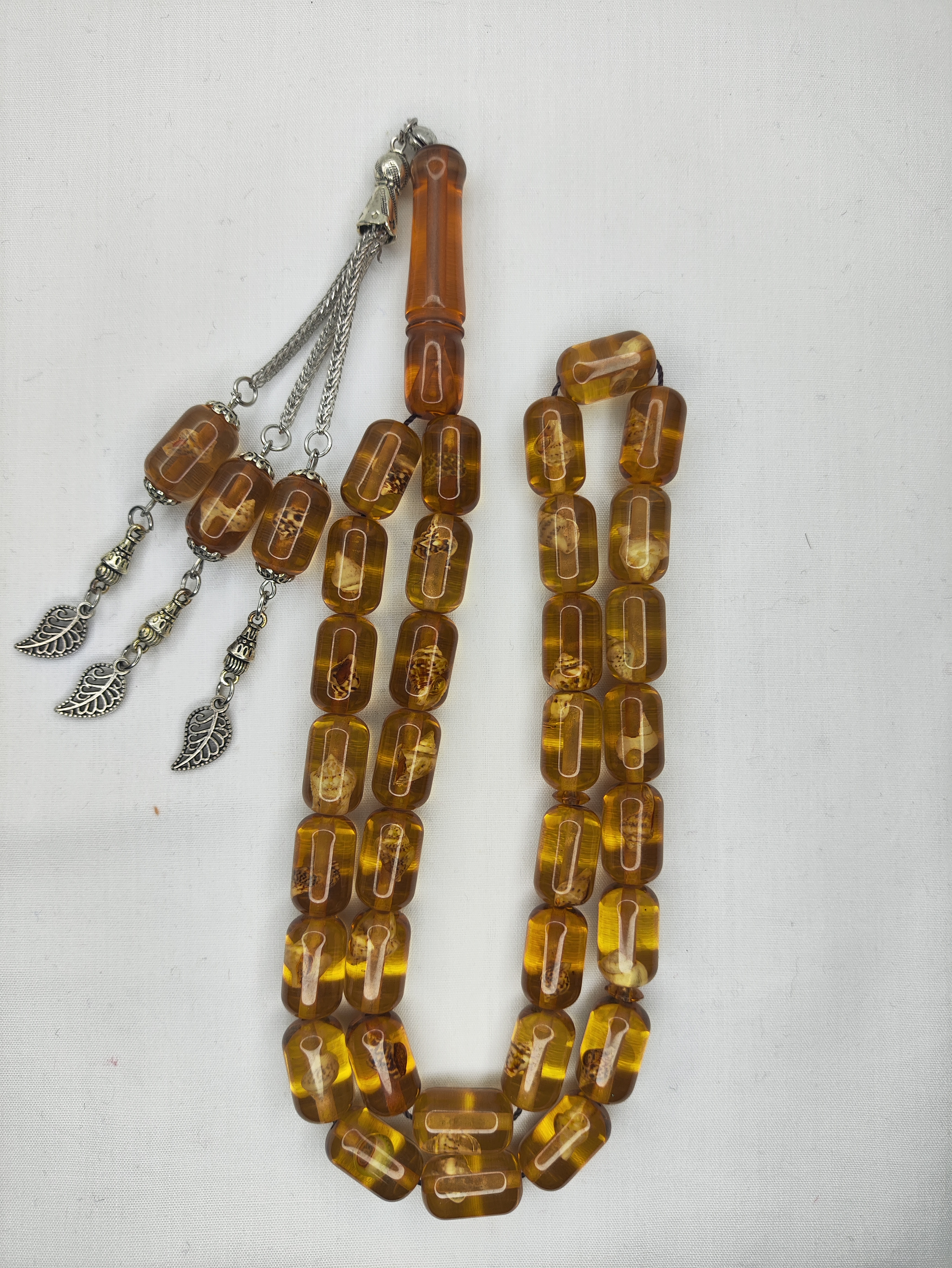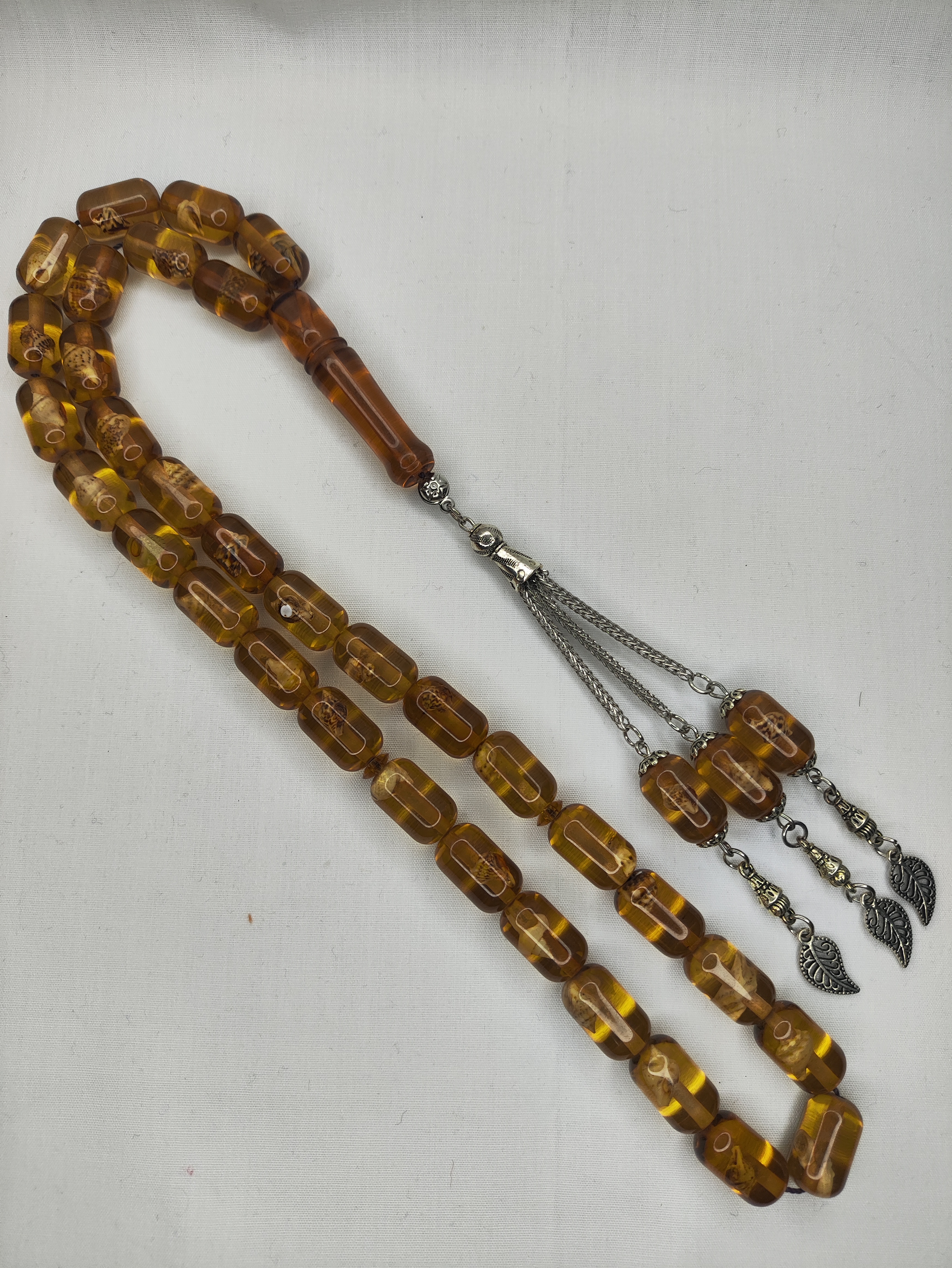 تسبیح کهربا حشره دار (صدف دار) 33عددی تراش کپسولی خوشدست و زیبا همراه سرتسبیح فلزی شکیل تقدیمتون میشه 🌹