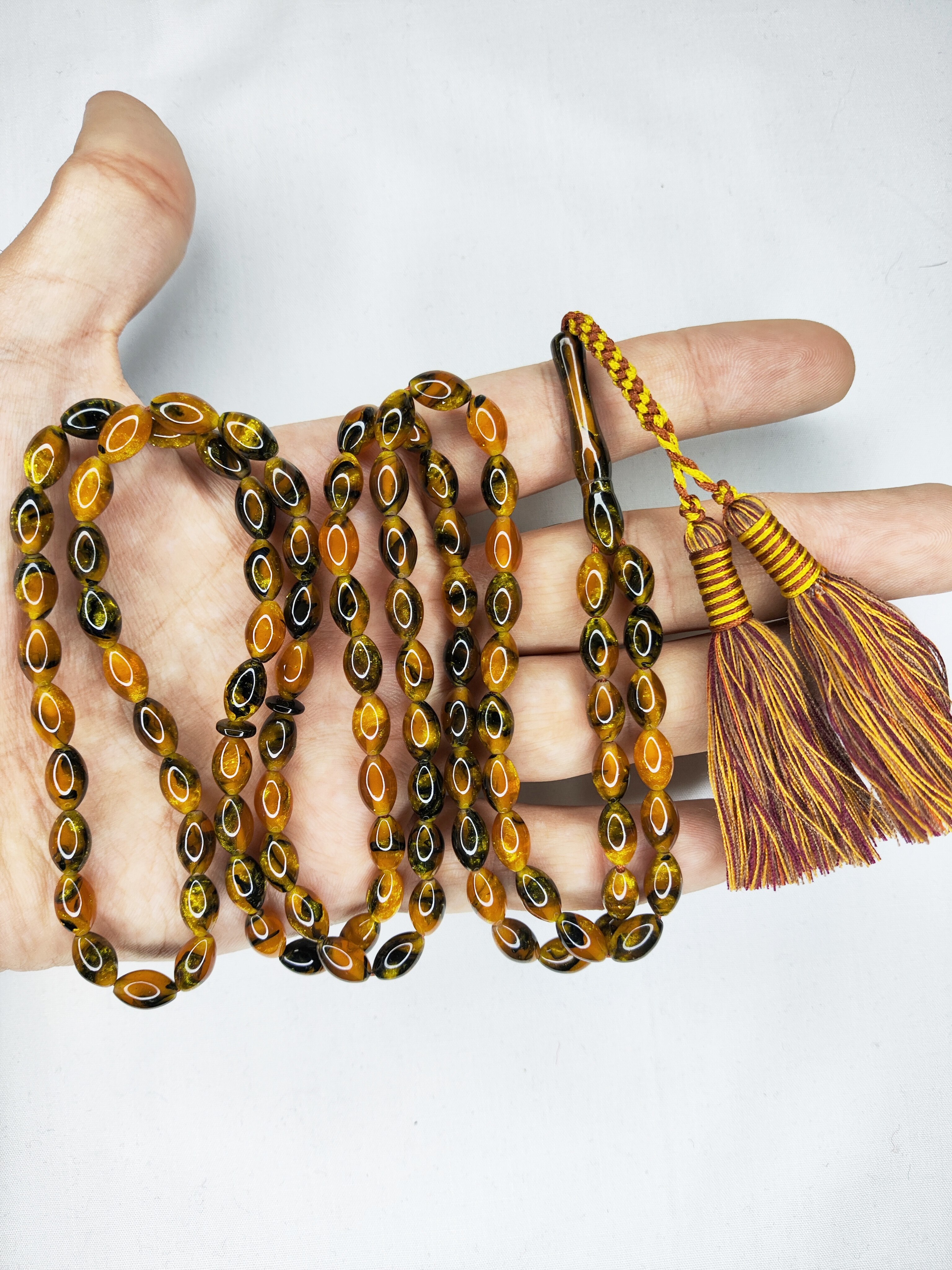 تسبیح کهربا زرافشان کهکشانی 101عددی تراش هلی خوشدست مناسب ذکر و دعا کردن همراه بافت و منگوله شکیل تقدیمتون میشه 🌹