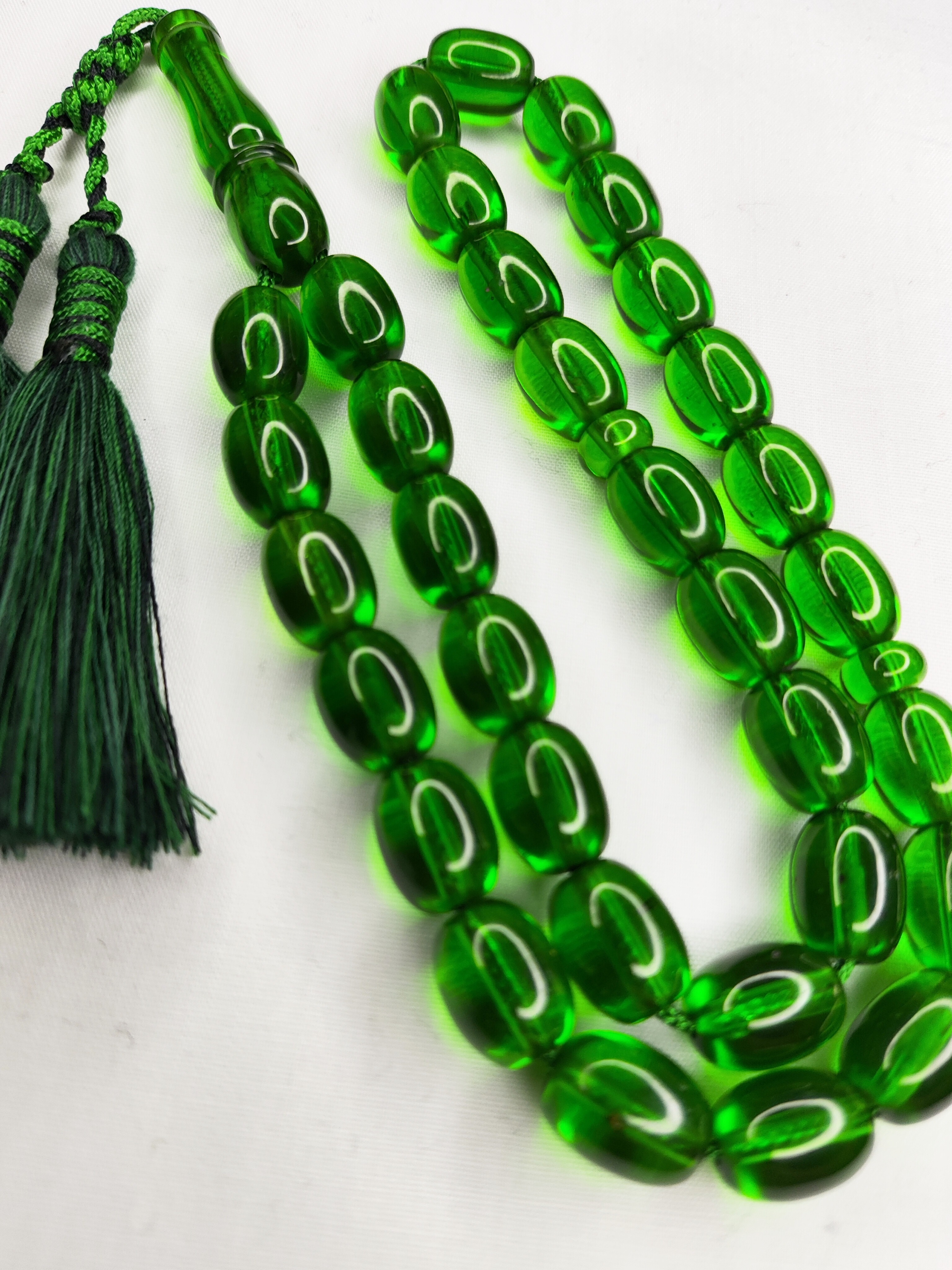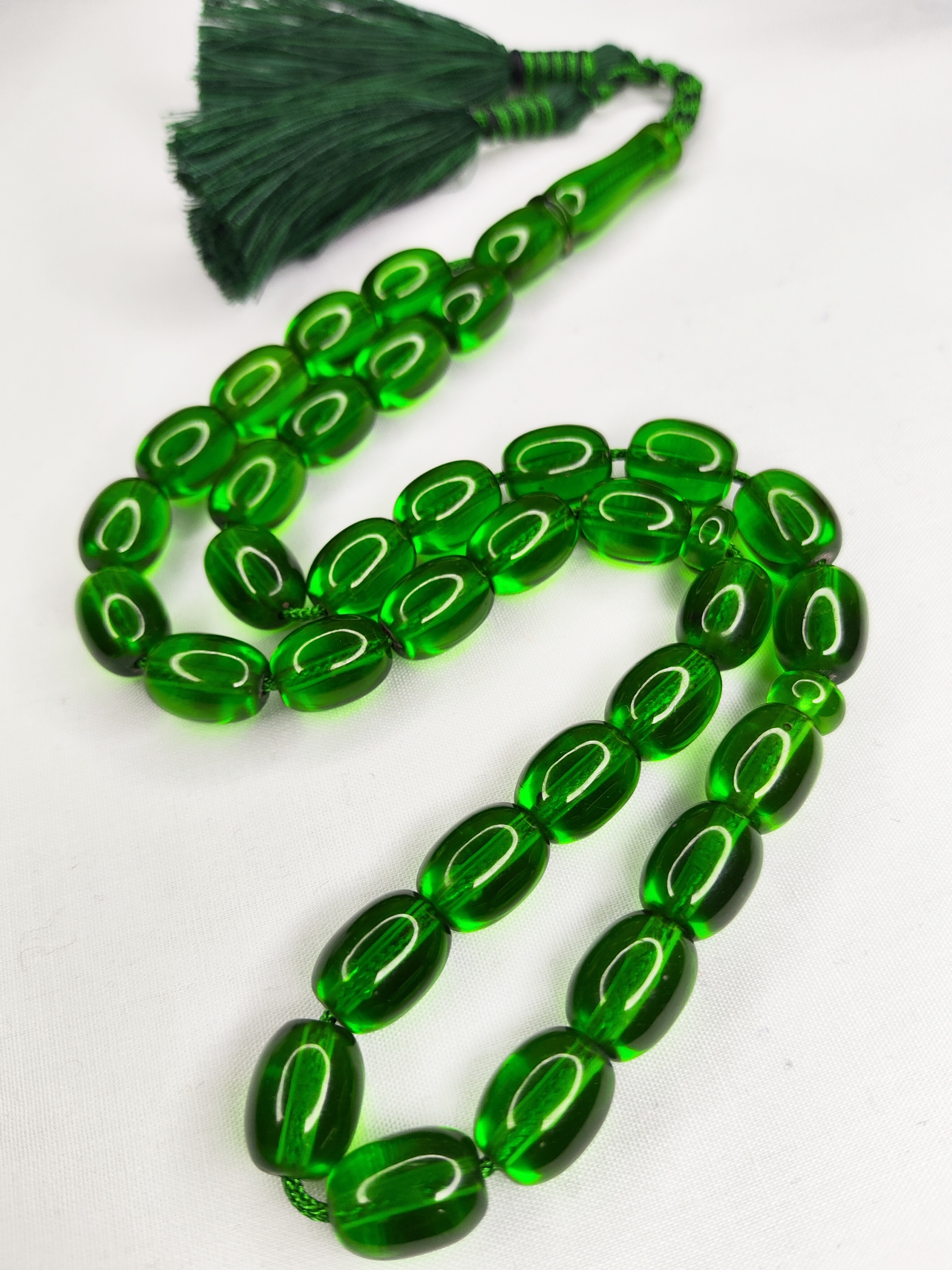 تسبیح سندلوس 33عددی رنگ سبز روشن تراش هلی خوشدست و دقیق
