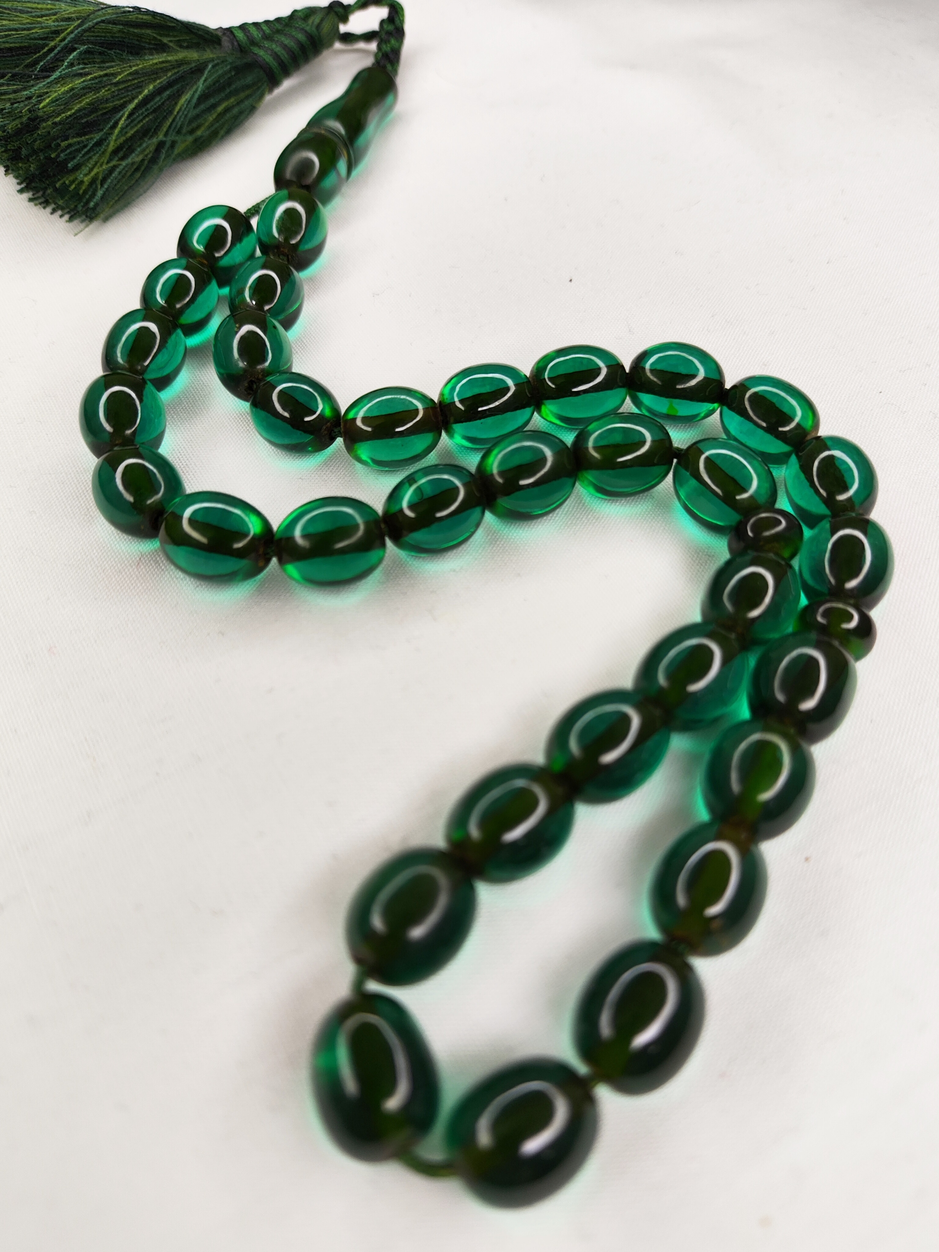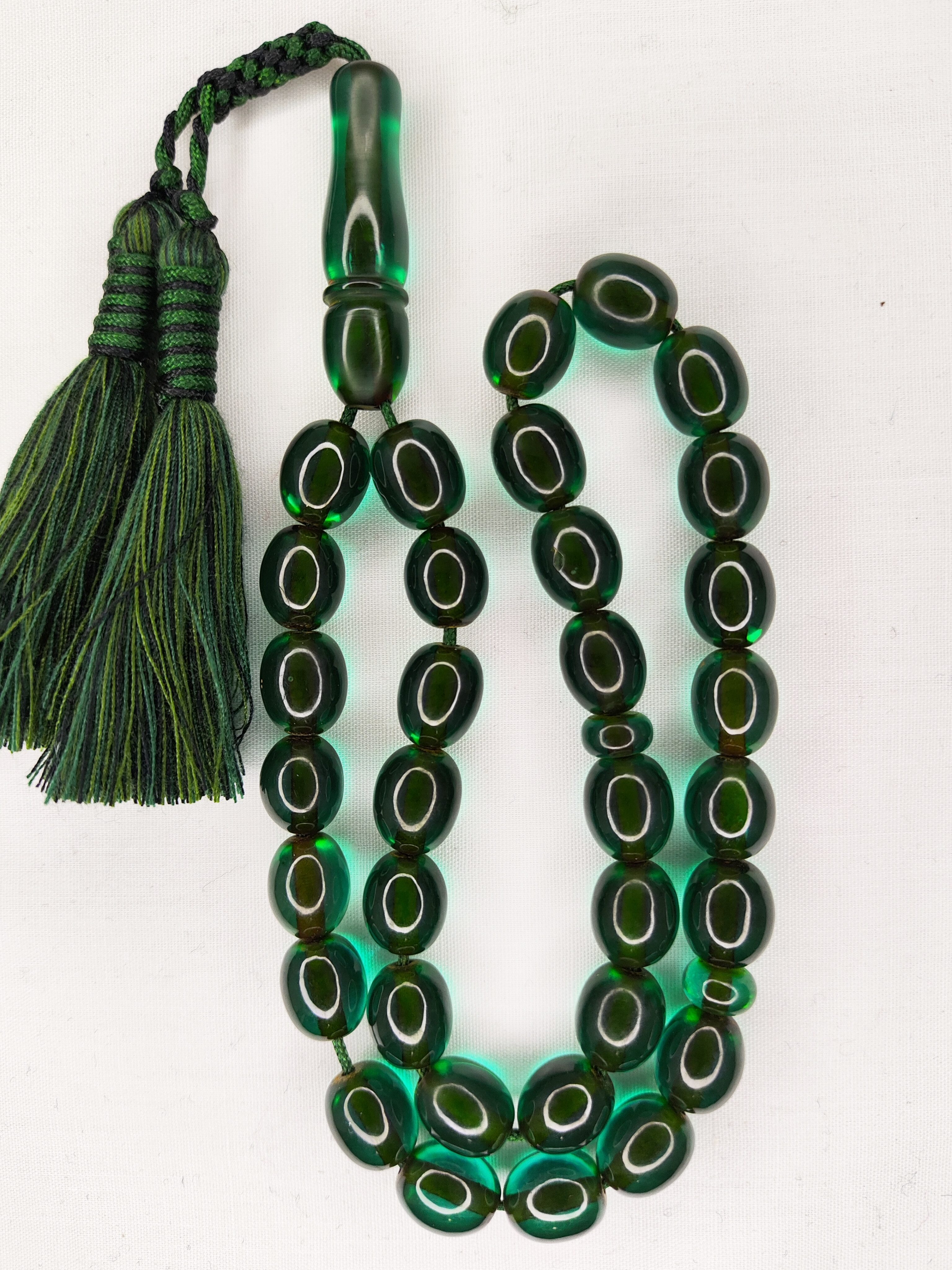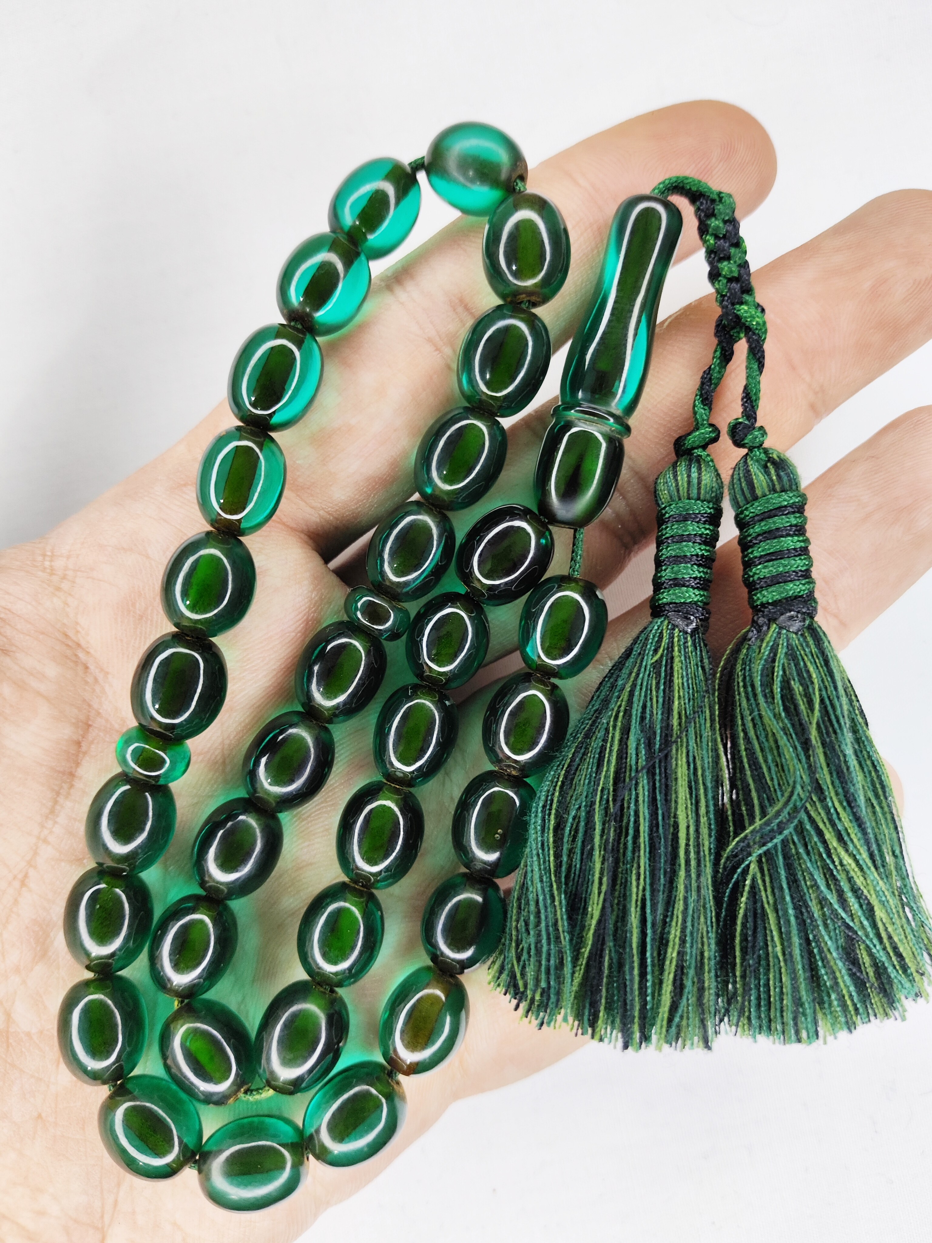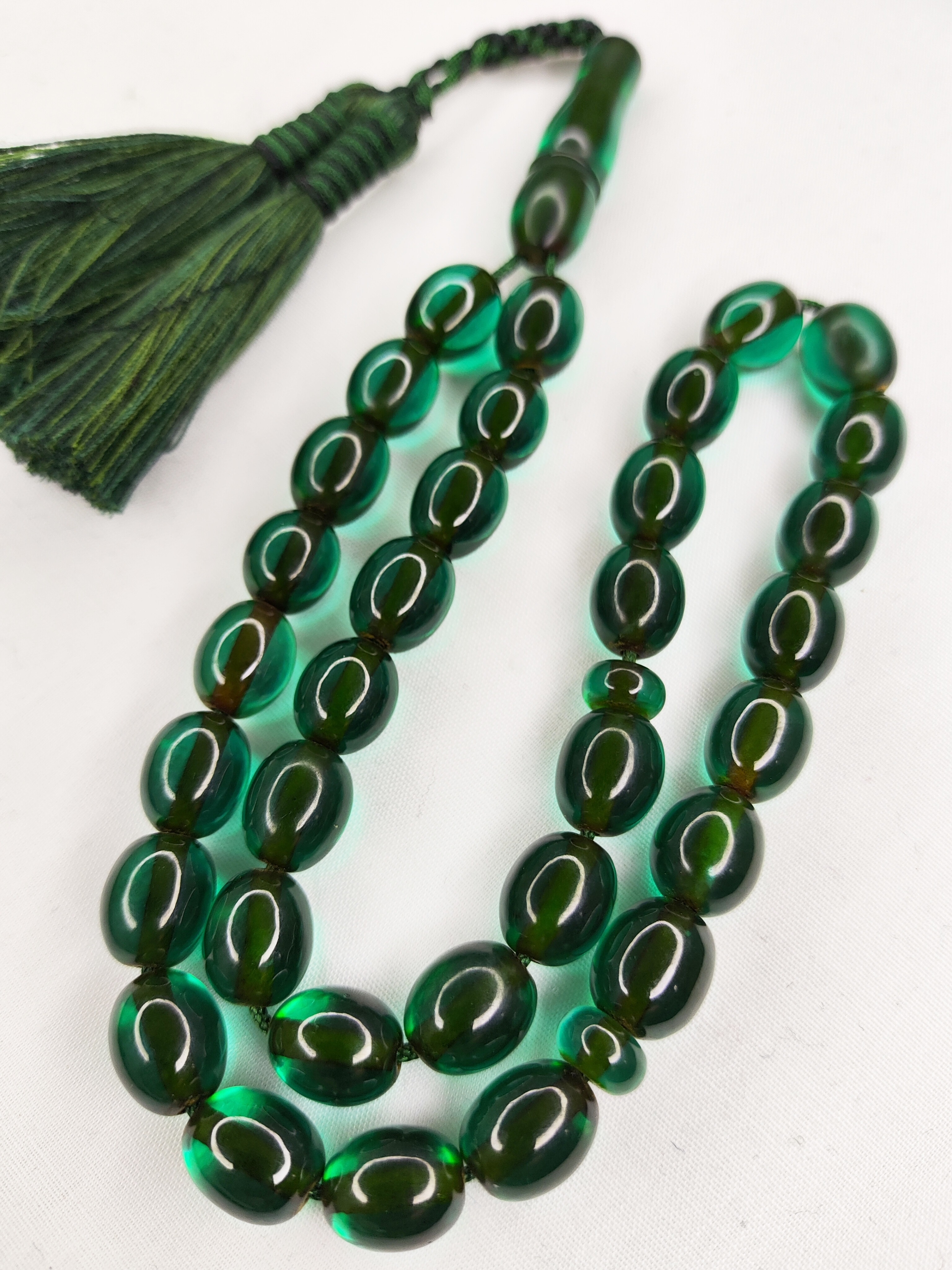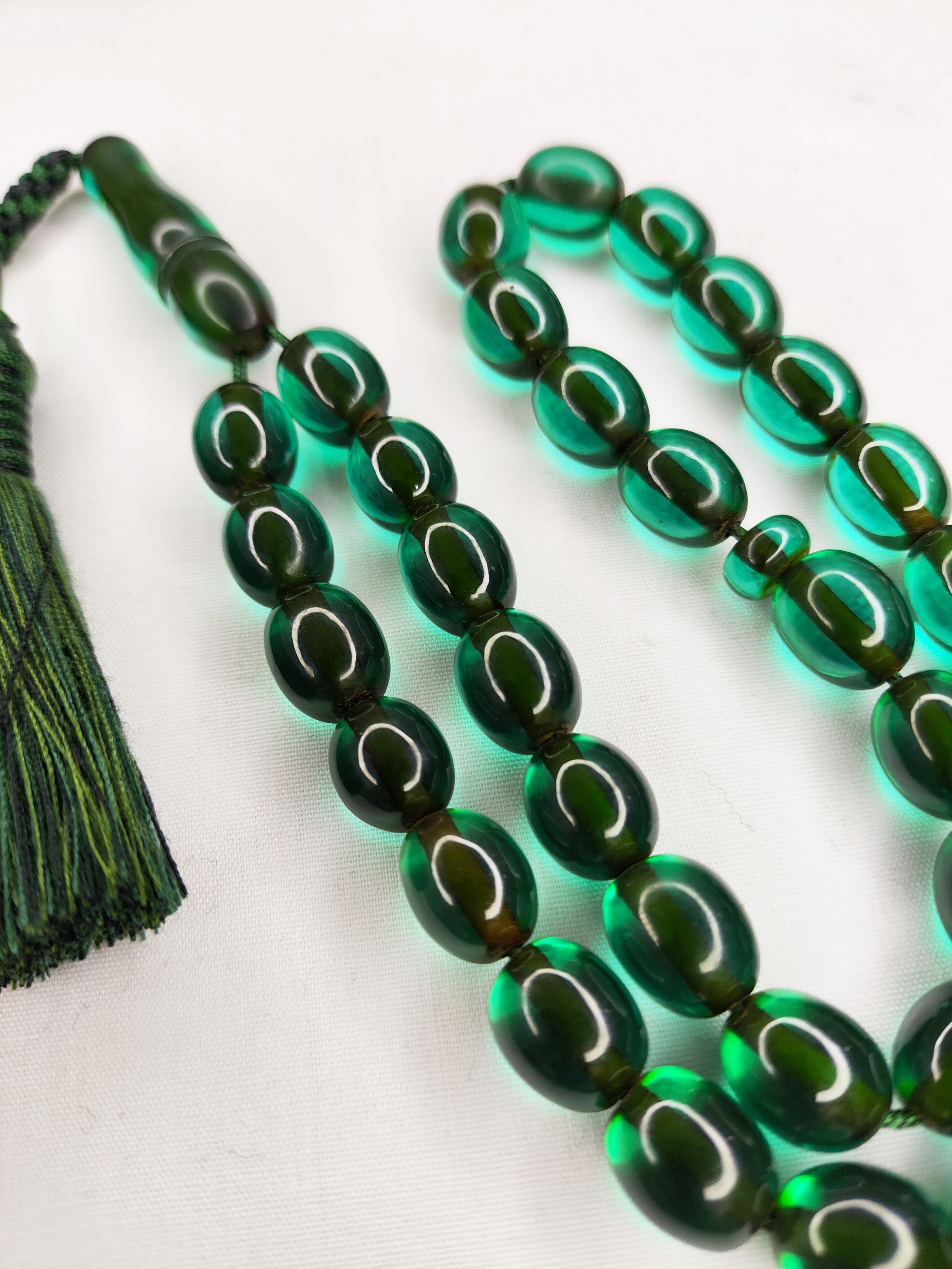 تسبیح سندلوس 33عددی تراش هلی خوشدست و زیبا رنگ سبزآبی خاص و شکیل