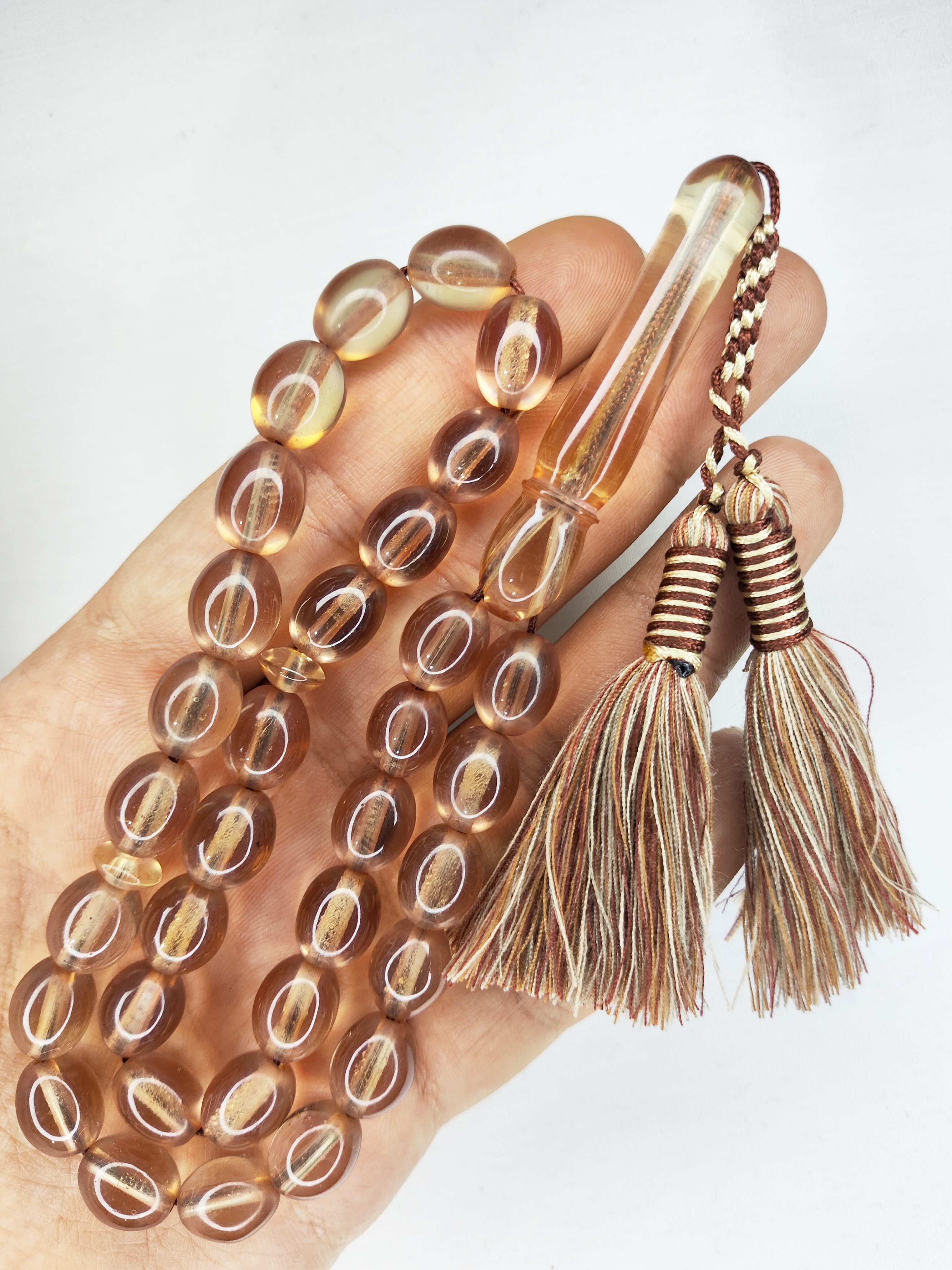 تسبیح سندلوس 33عددی تراش هلی رنگ بنزینی زیبا