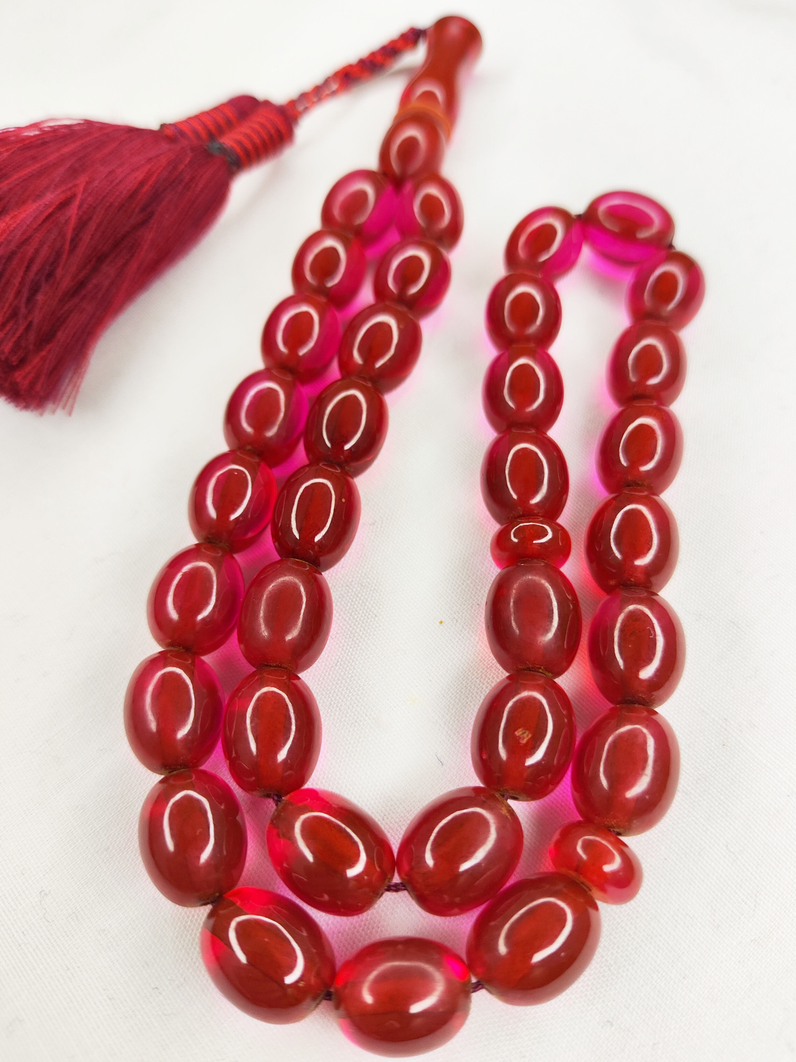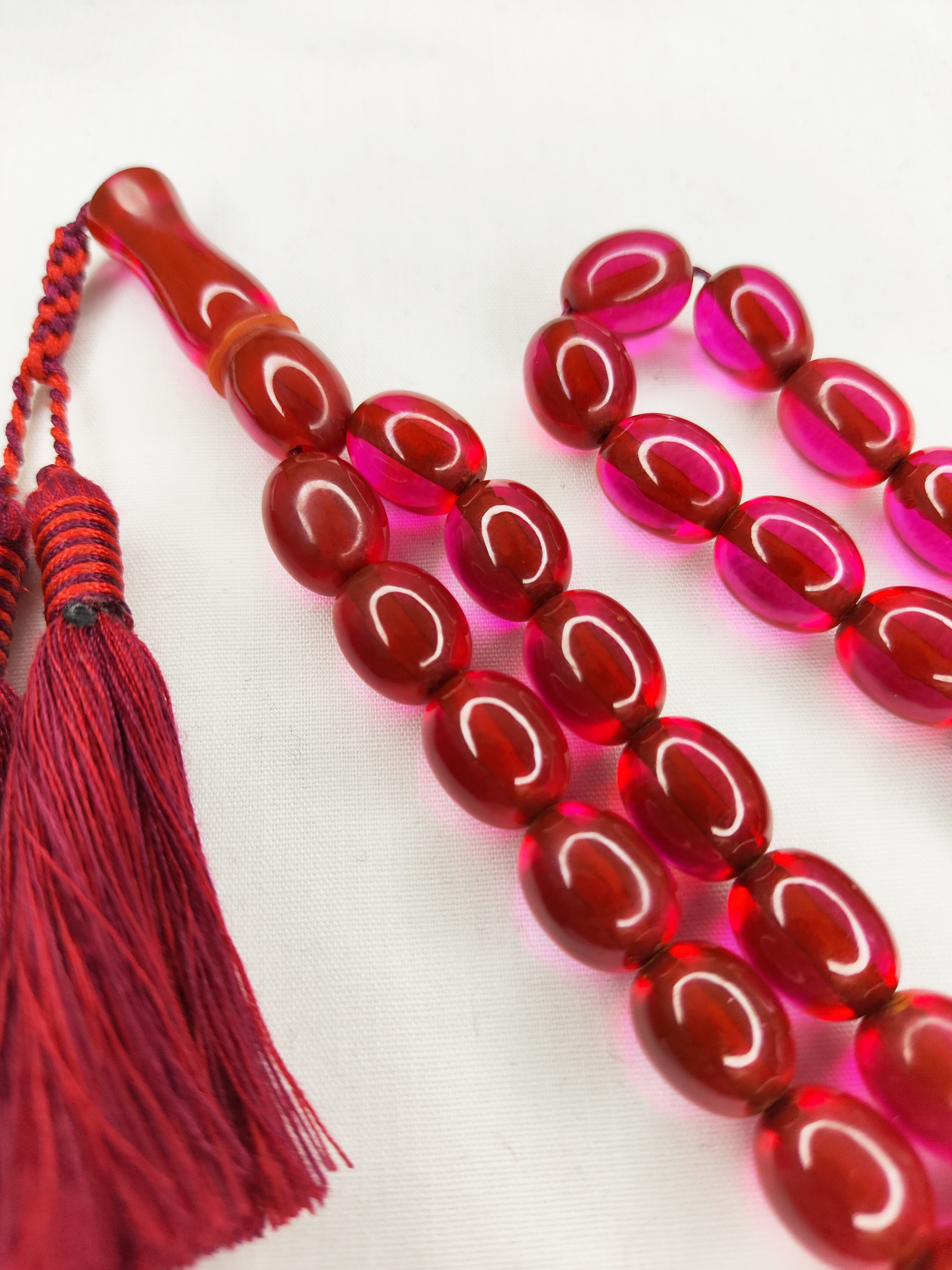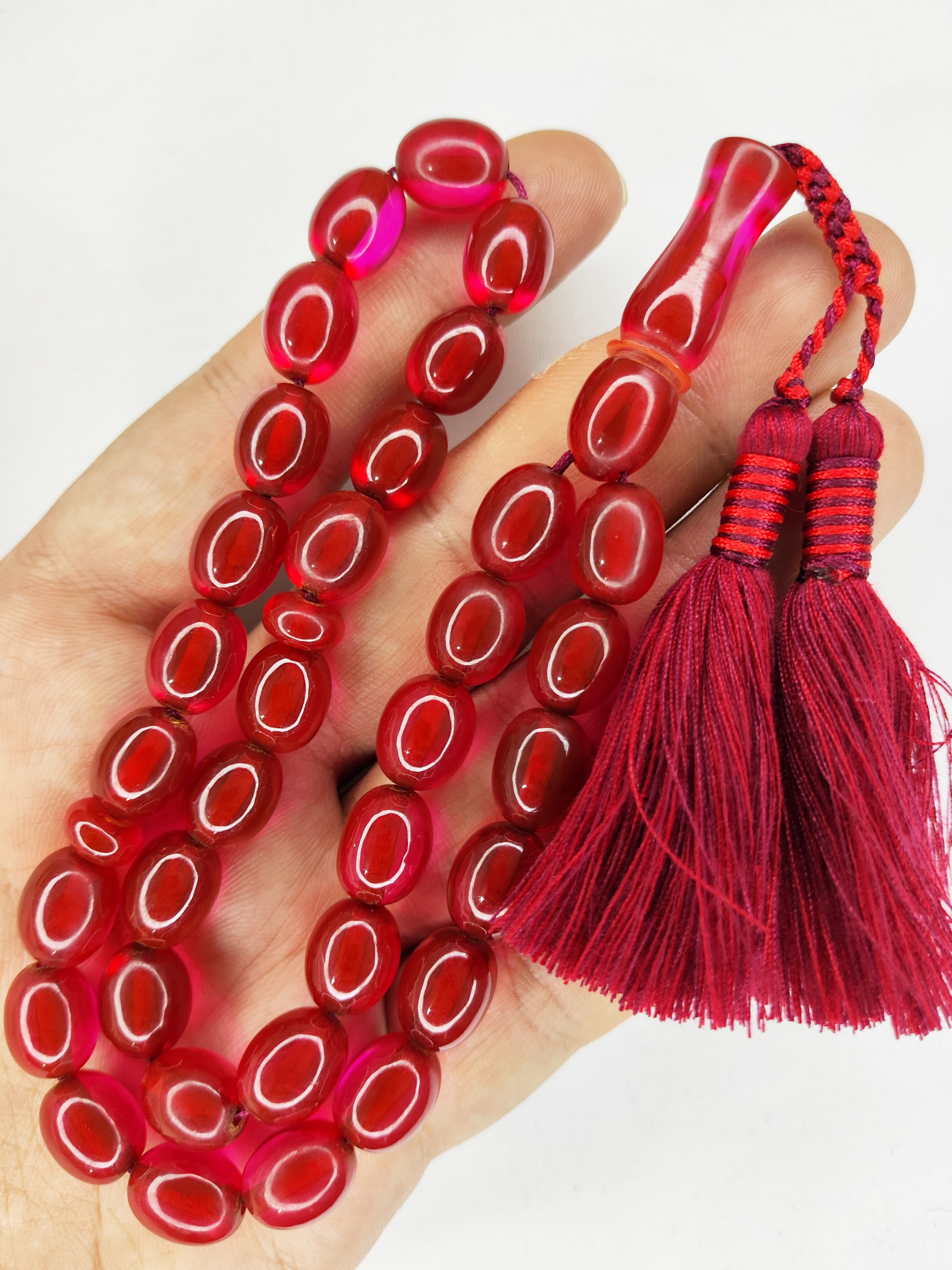 تسبیح سندلوس دوپوست 33عددی تراش هلی خوشدست رنگ خاص و شکیل سرخابی