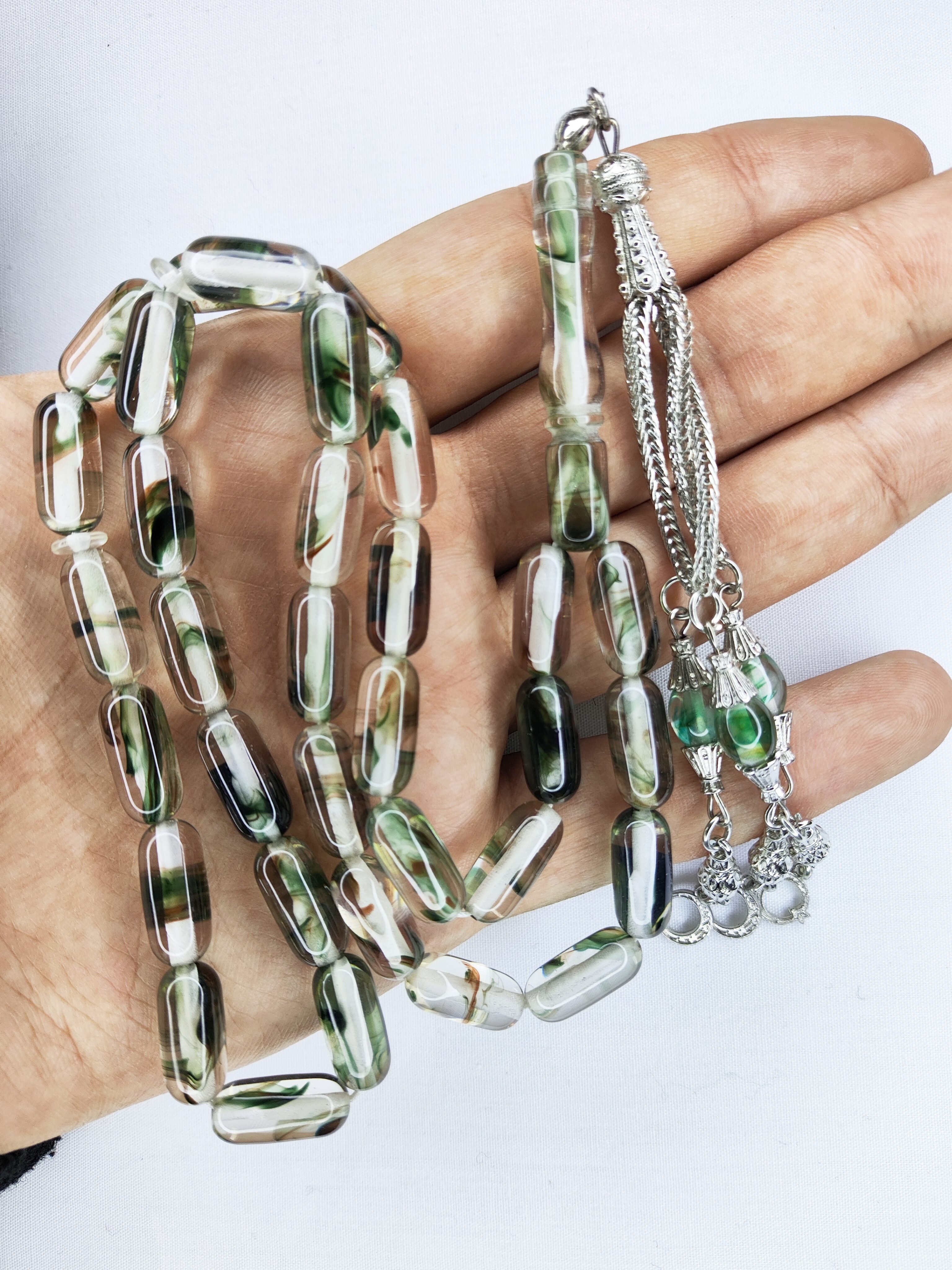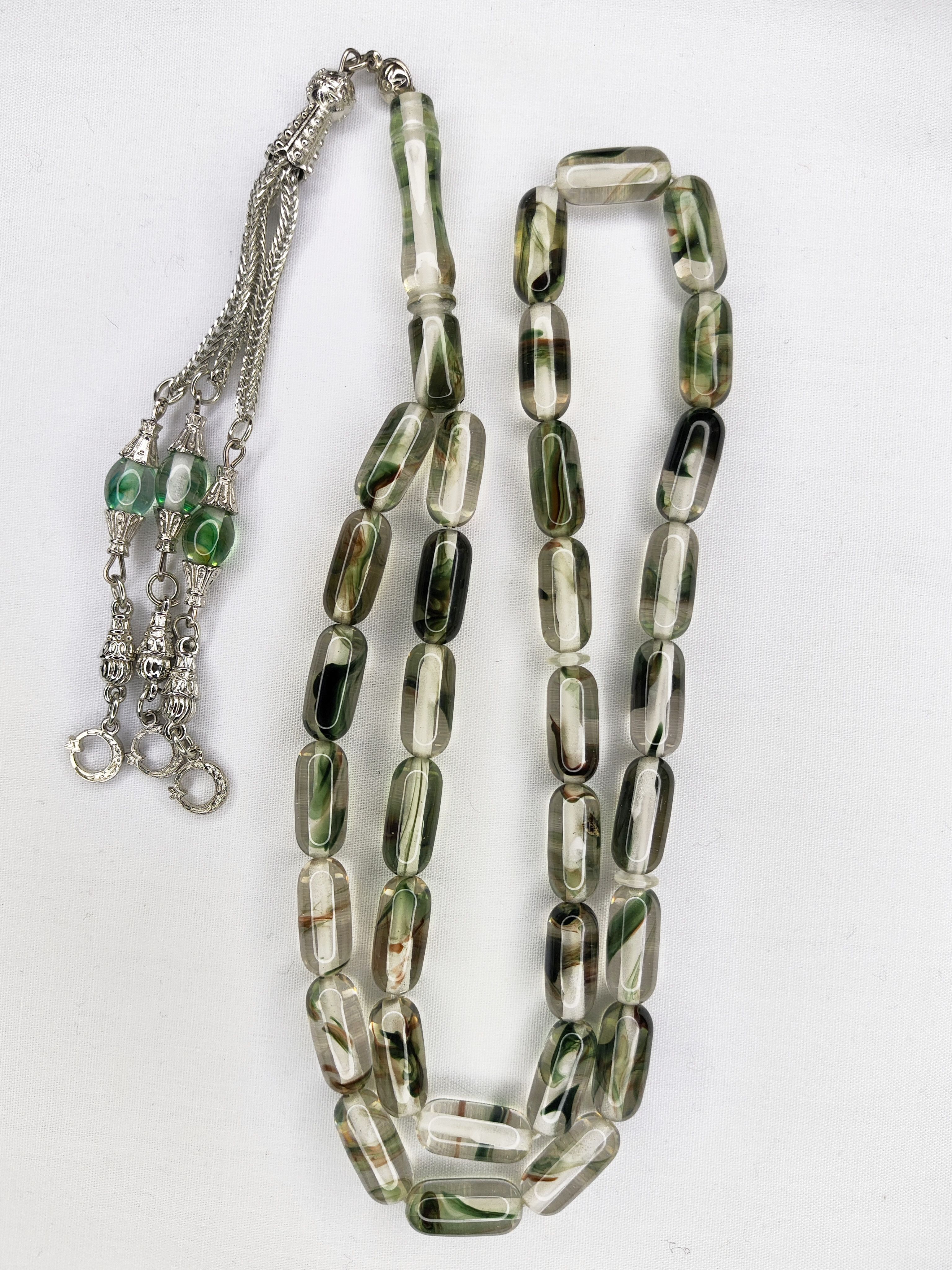 تسبیح کهربا ابرو بادی 33عددی تراش کپسولی خوشدست همراه سر تسبیح استیل شکیل