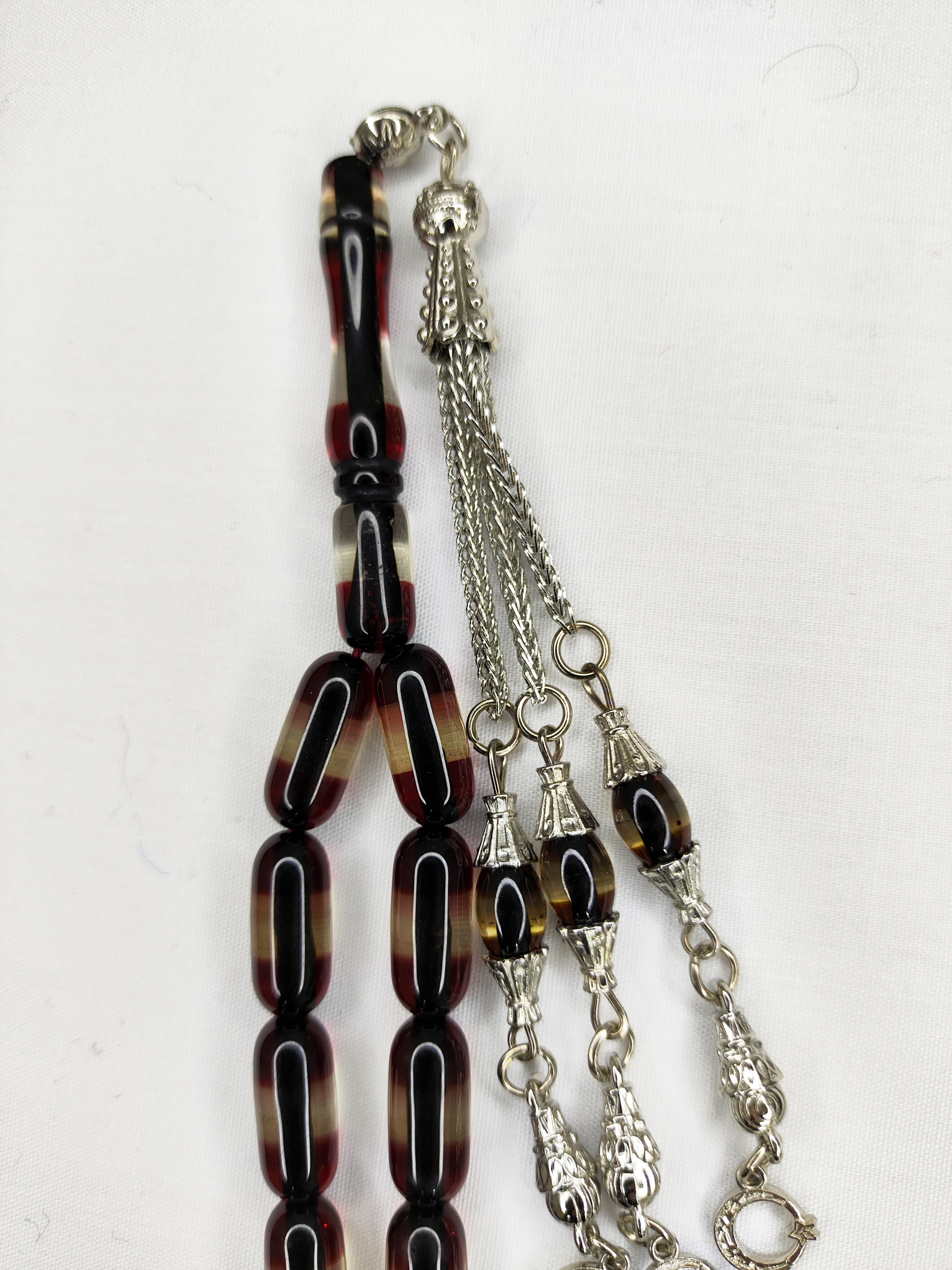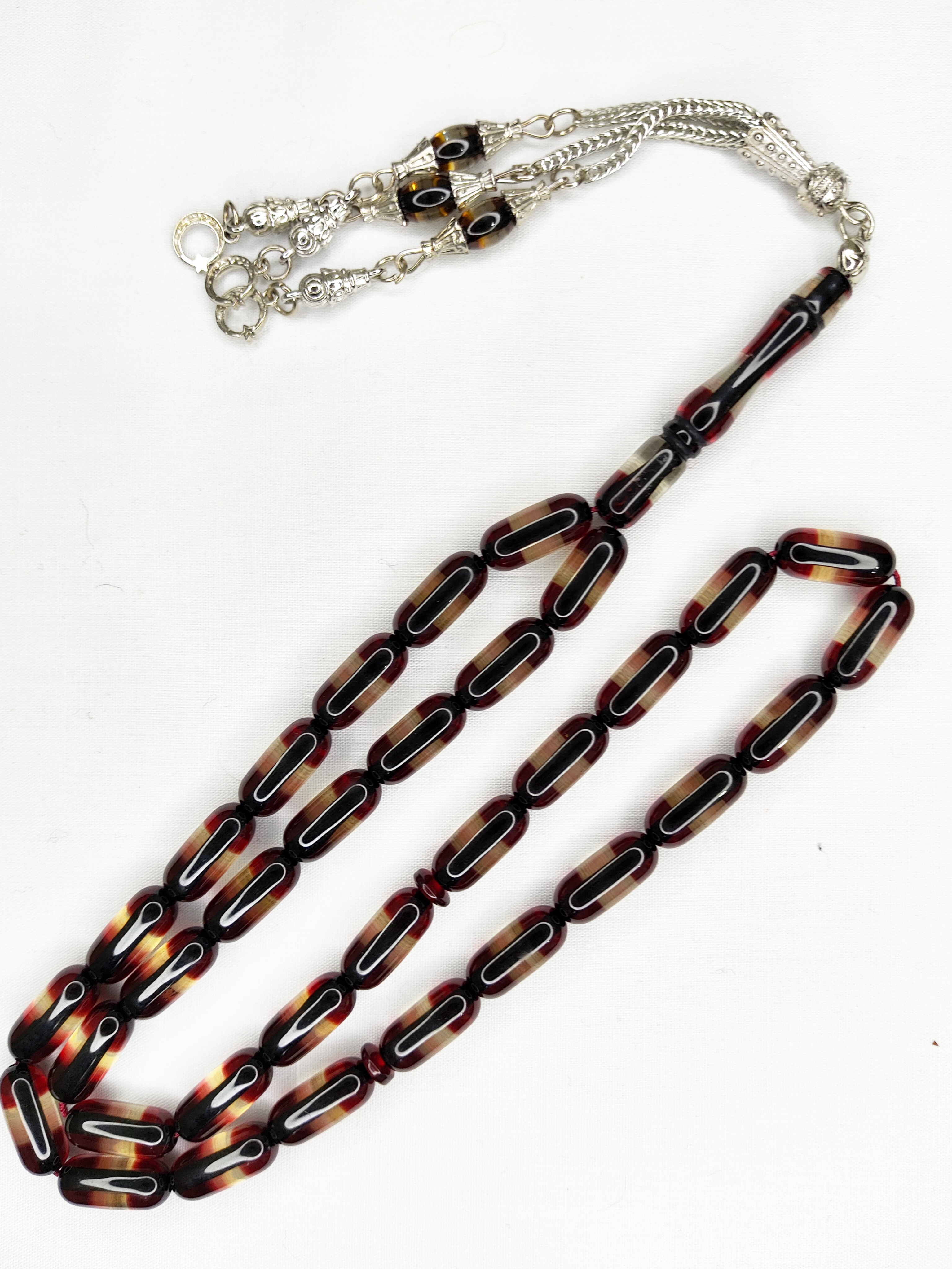 تسبیح کهربا 33عددی تراش کپسولی خوشدست و زیبا همراه سرتسبیح شکیل