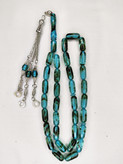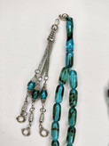 تسبیح کهربا رگه دار ابرو بادی 33عددی تراش کپسولی خوشدست رنگ فیروزهای ای زیبا و کلکسیونی