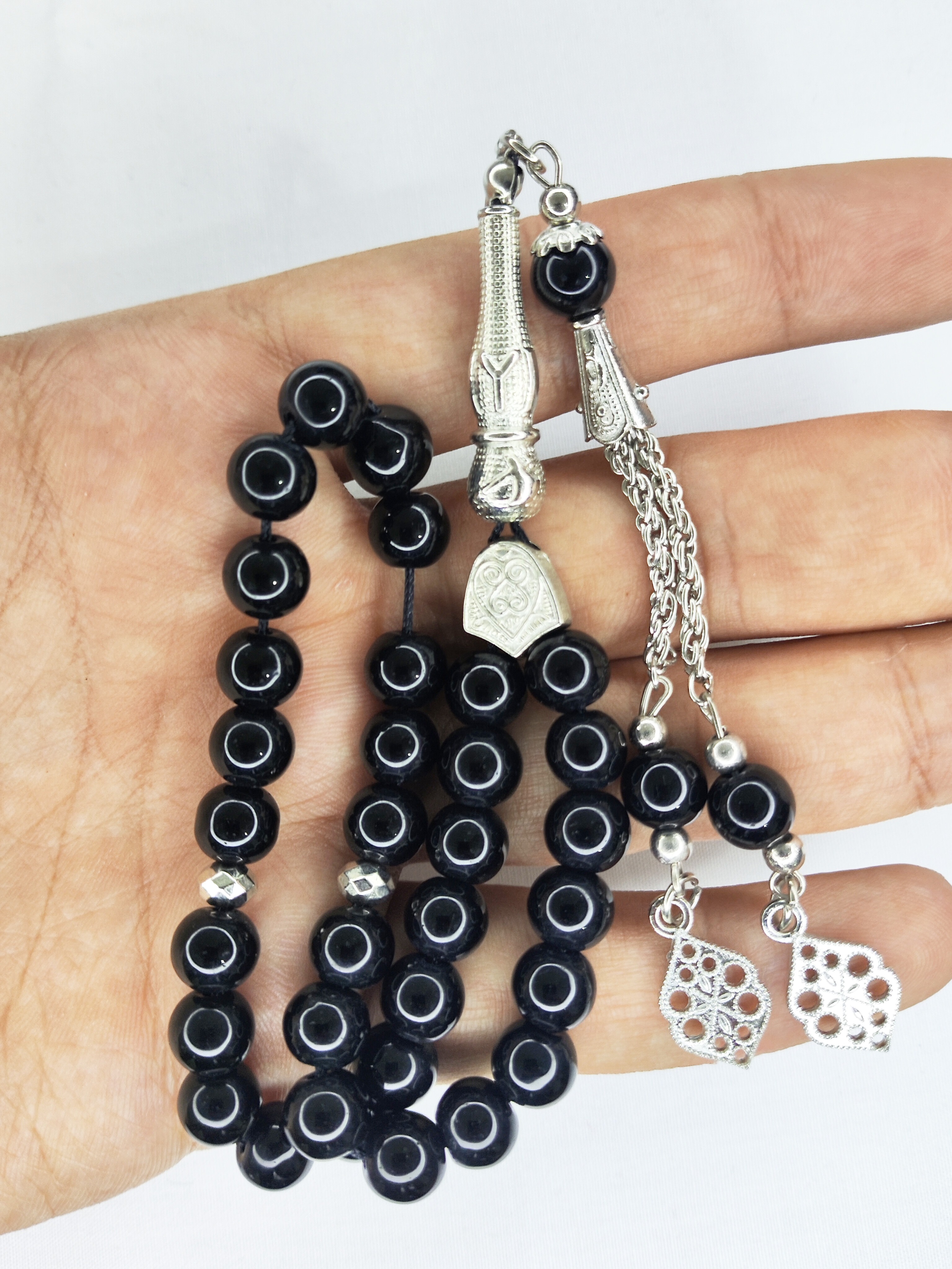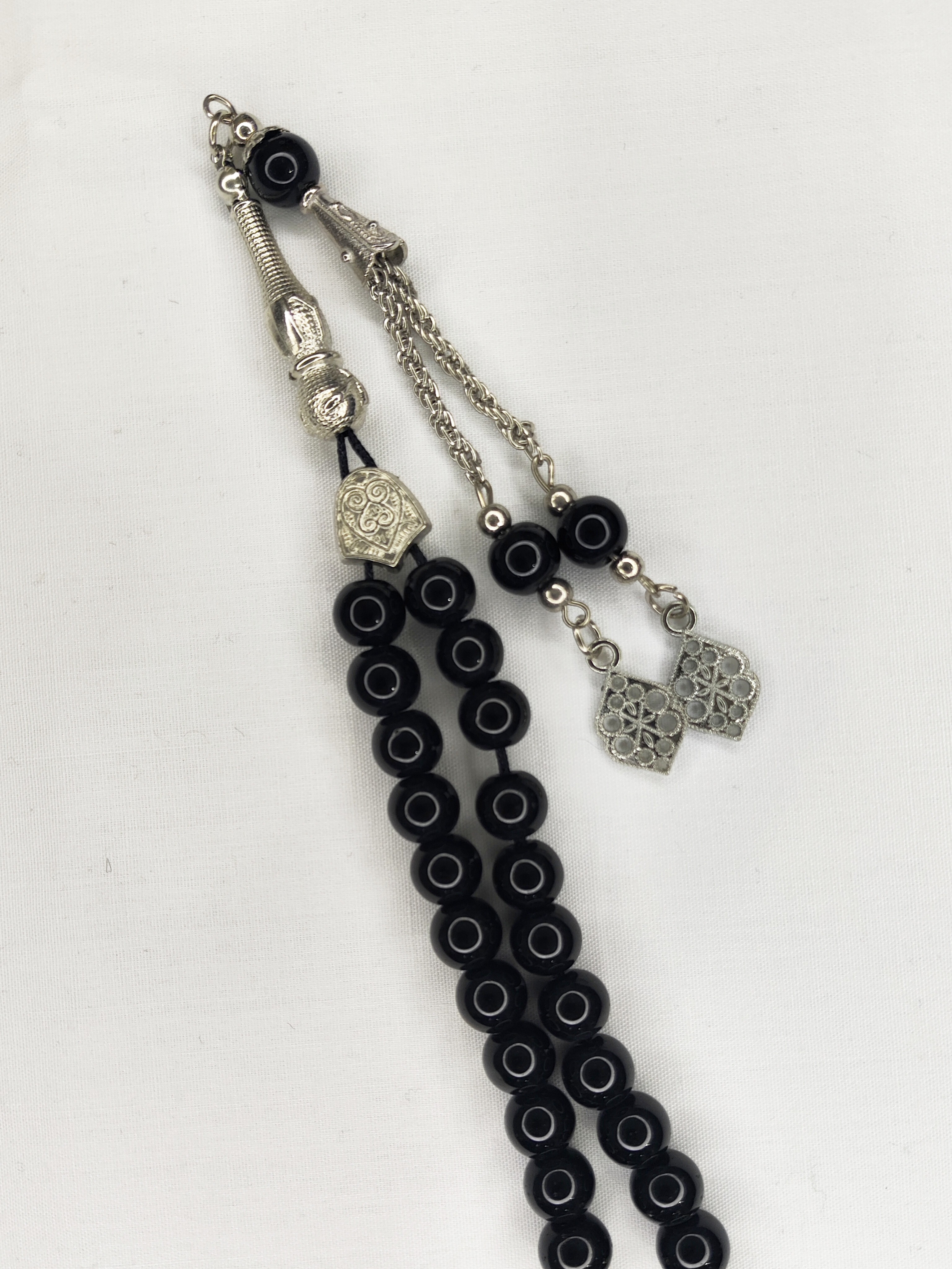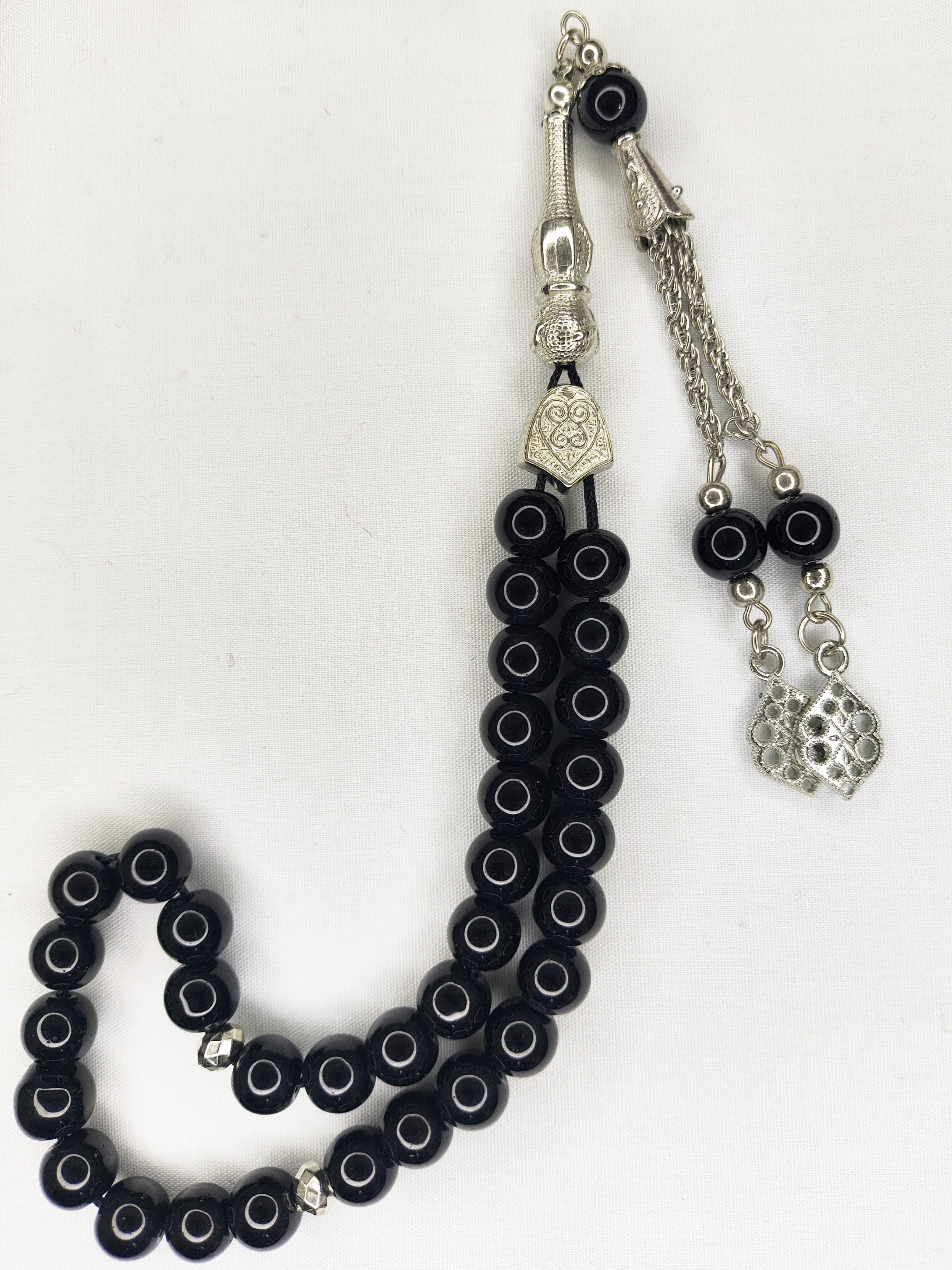 تسبیح شیشه‌ای 33عددی قیمت مناسب رنگ سیاه تراش گرد زیبا و فاخر