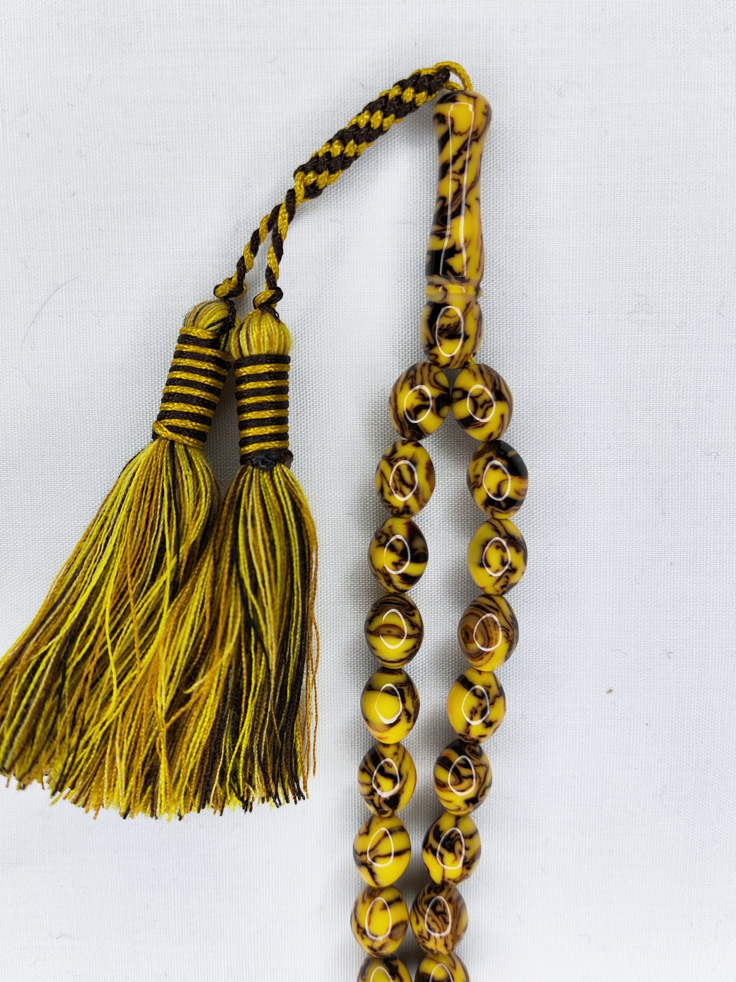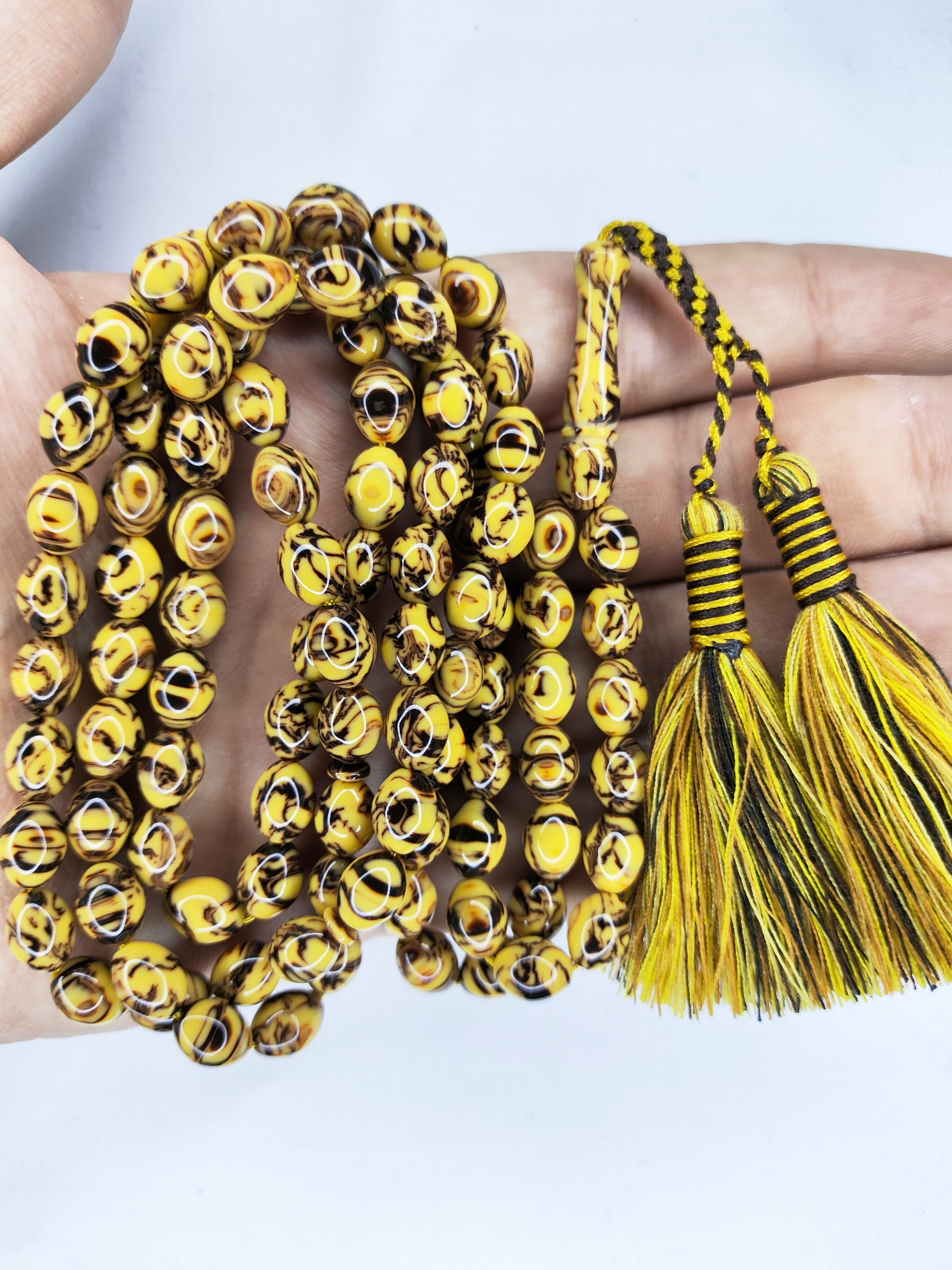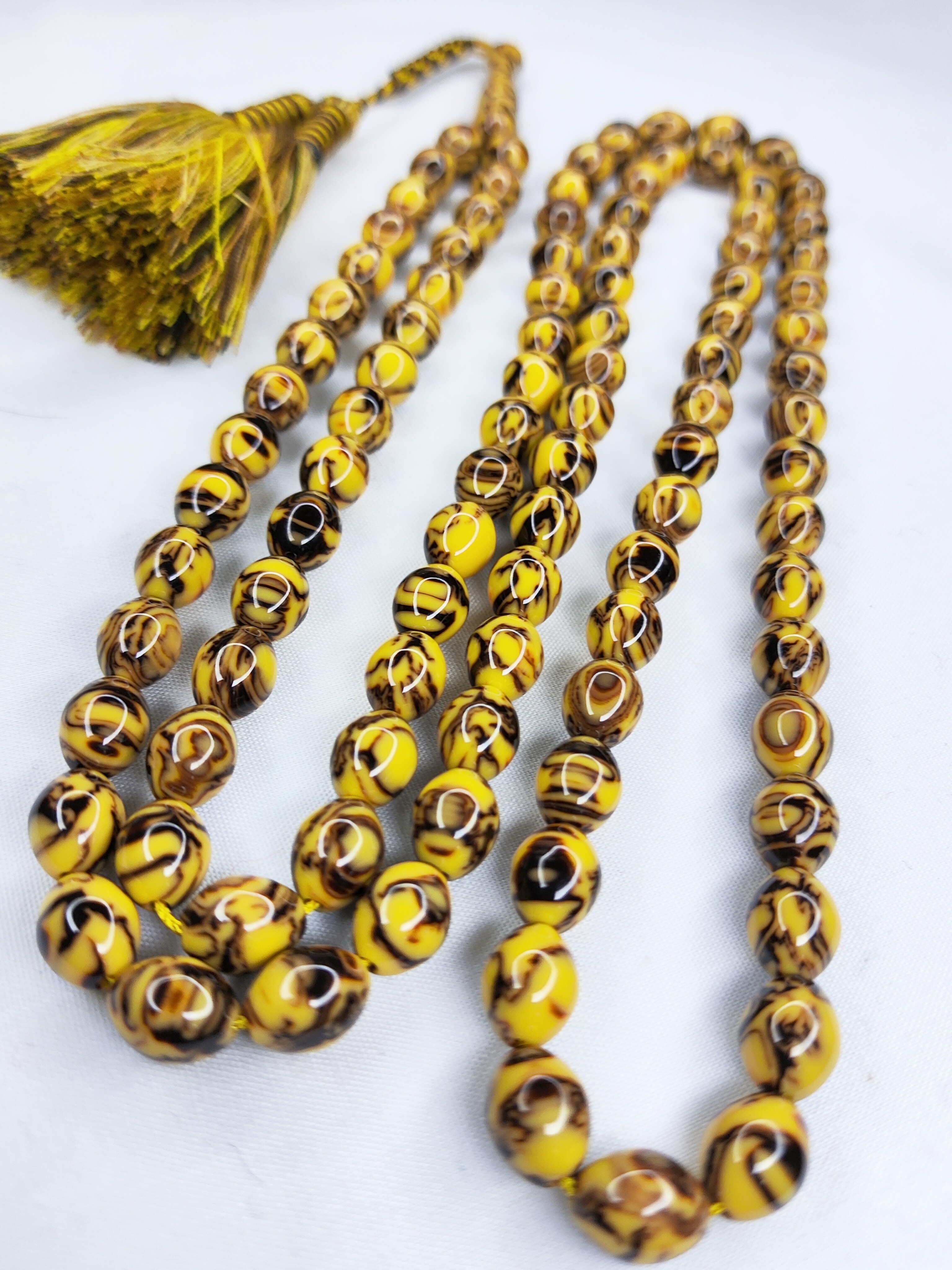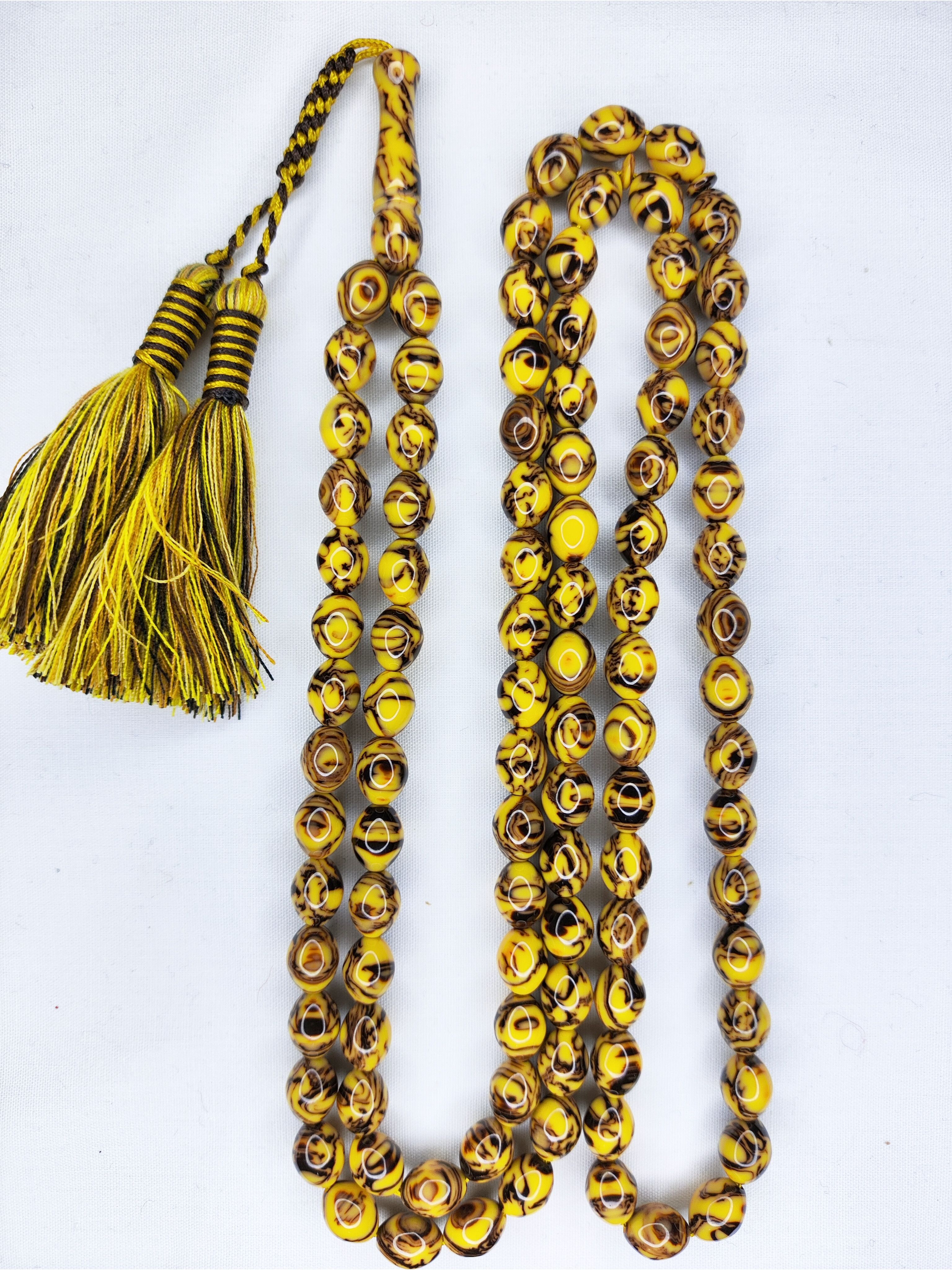 تسبیح کهربا رگه دار 101عددی رنگ گردویی زیبا و خوشدست با بافت شکیل و حرفه ای